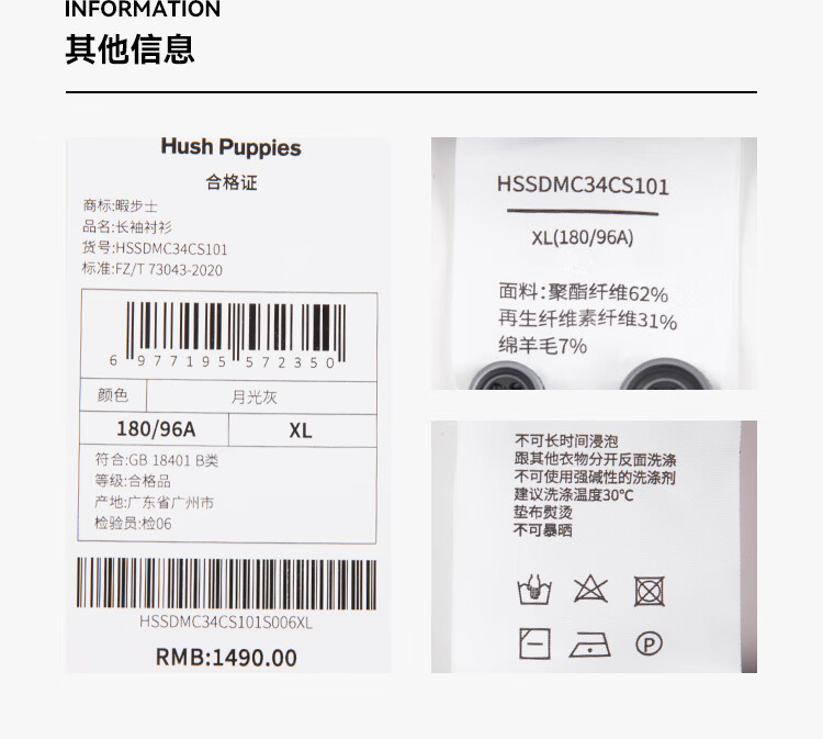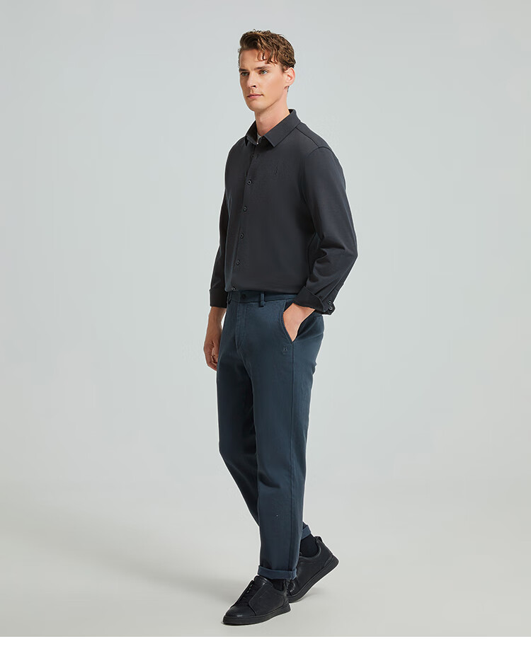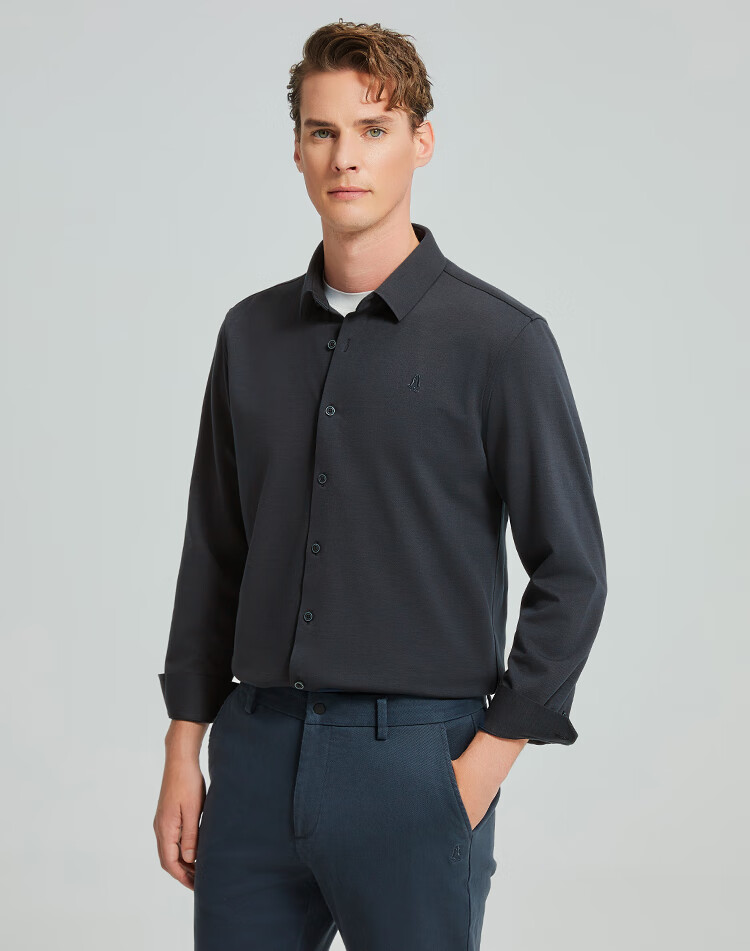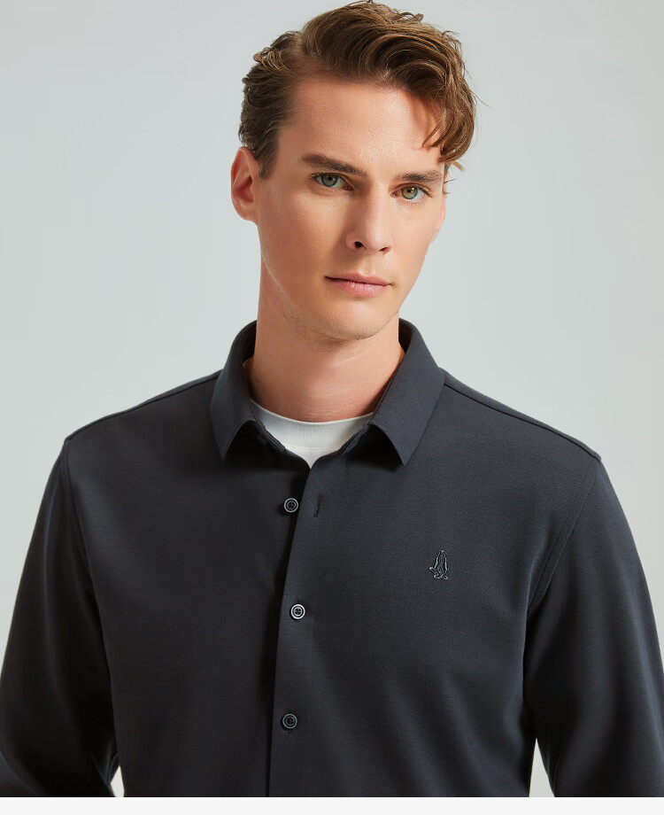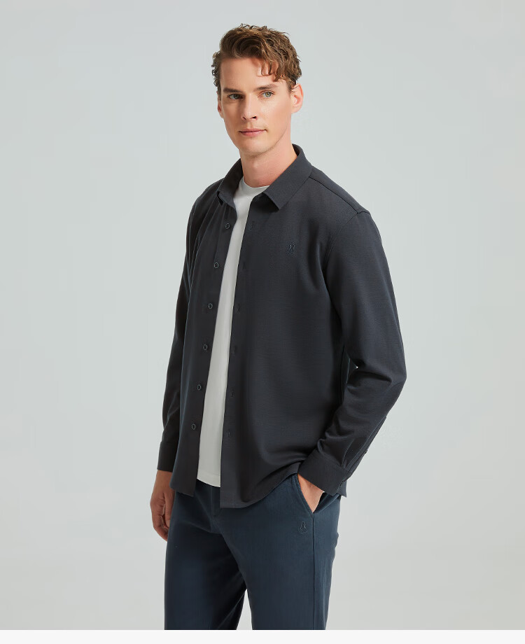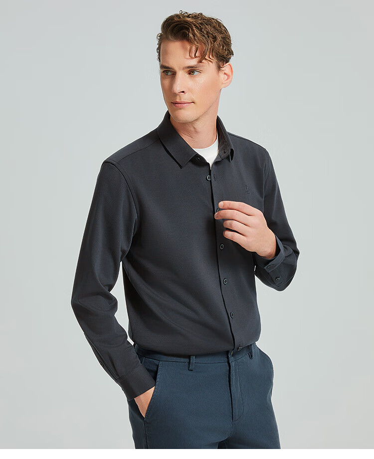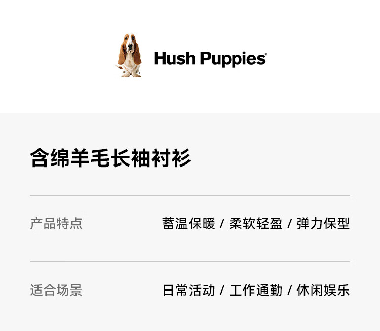暇步士(Hush Puppies)【弹力保型】男装冬季蓄温保暖长袖衬衫 月光灰 L