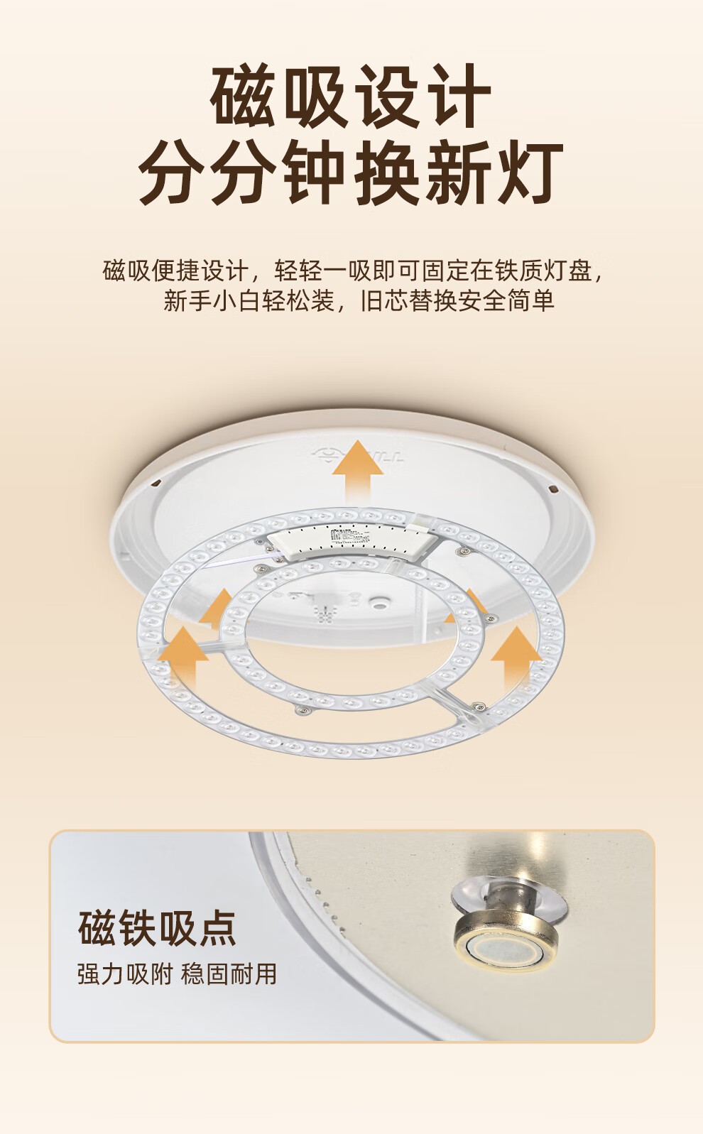 雷士(NVC)led吸顶灯芯改造灯板磁吸灯泡灯条贴片替换灯盘光源灯珠灯管 【进口普瑞全光谱】Ra97-48瓦白光/20-26㎡