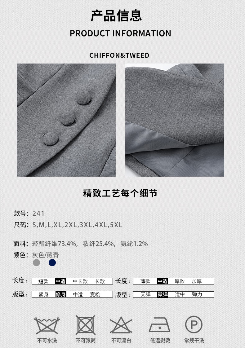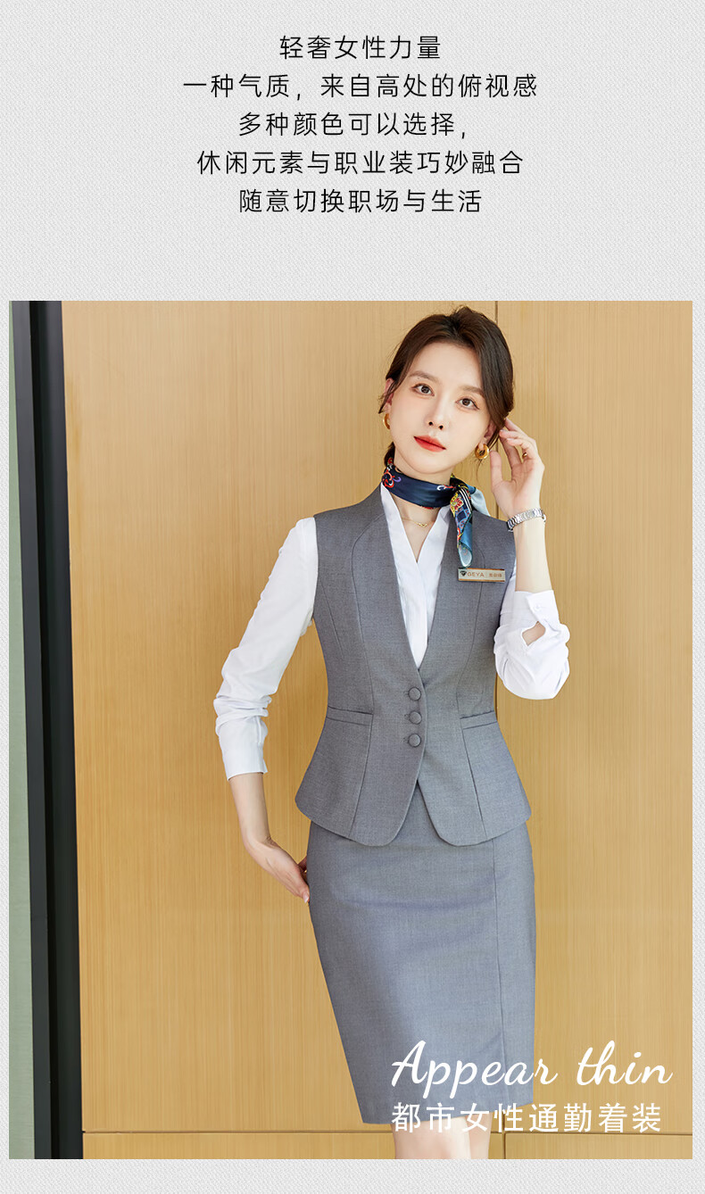山头林村珠宝酒店前台接待经理工作服马甲女士西装套装职业正装气质春秋季 藏青色西装+裤子+裙子+白色衬衫 6XL
