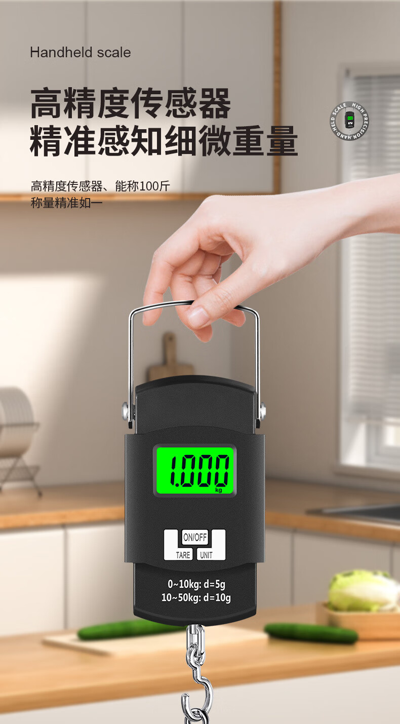 100斤高精度手提电子秤小型快递称便携式家用钩商用吊勾弹簧行李 手提电子秤-50kg电池款 电池款