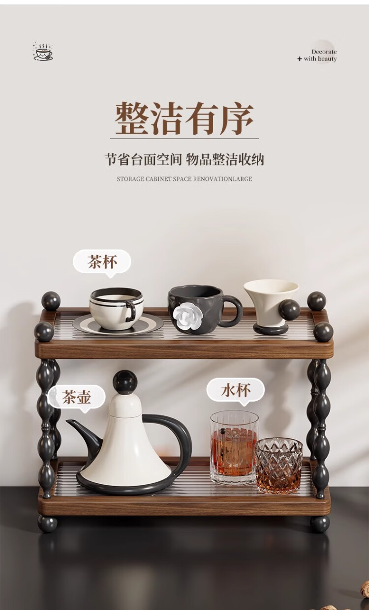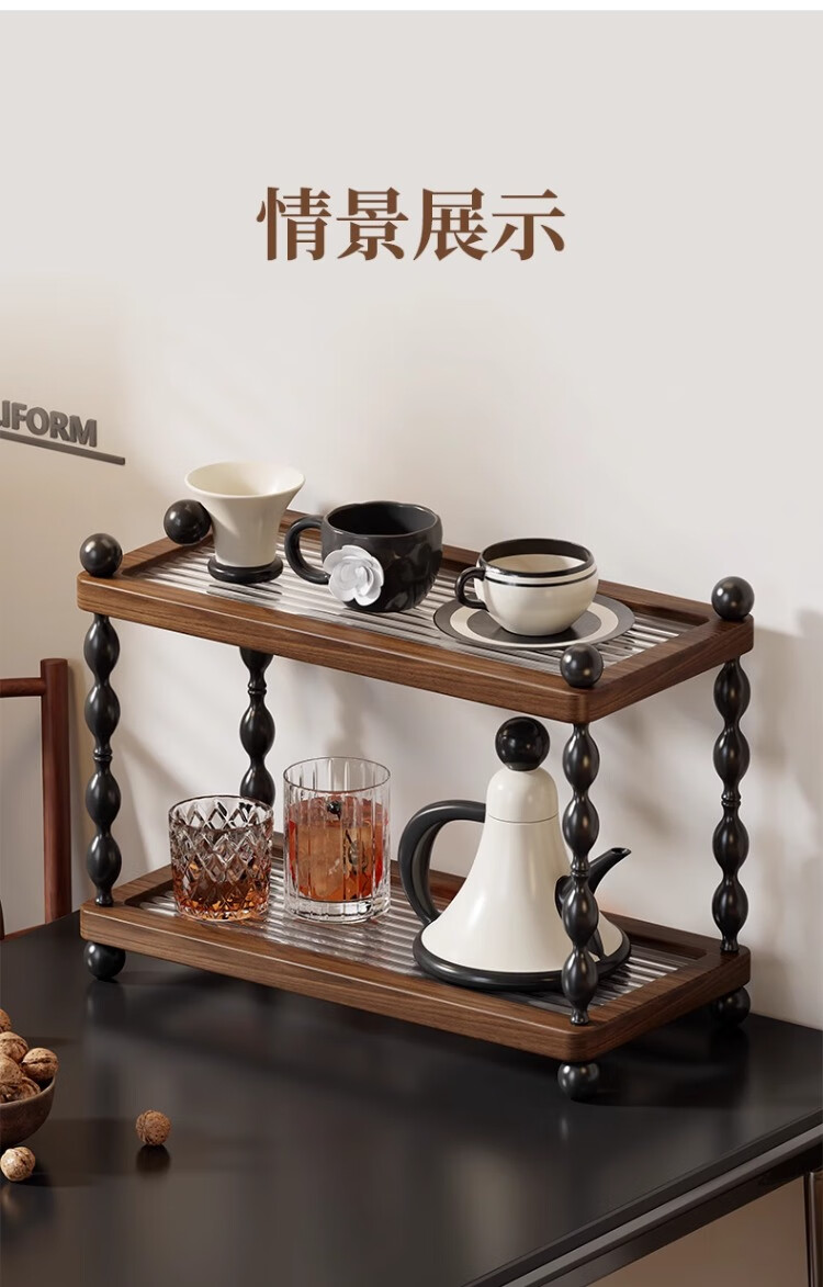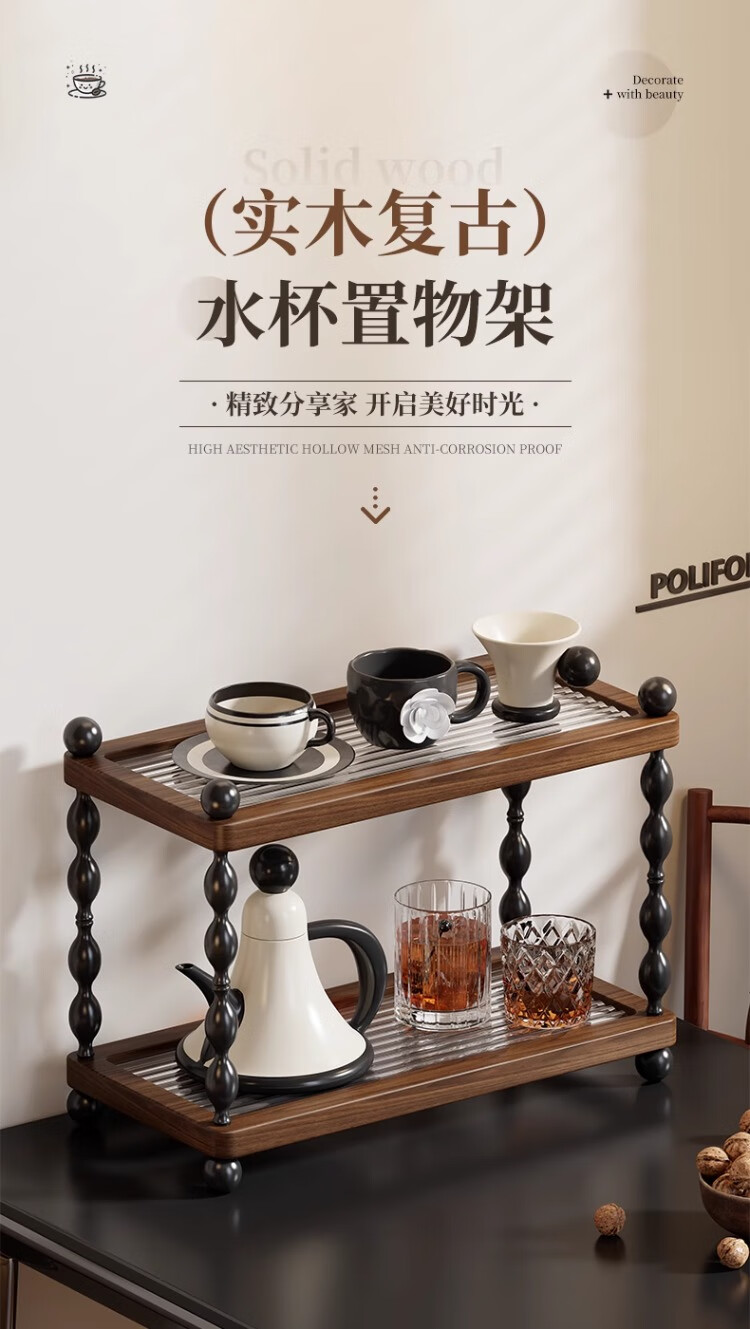 尔思家杯子收纳架厨房柜子分层置物架茶杯架咖啡杯整理架家用杯架沥水架 胡桃色大号【进口实木】