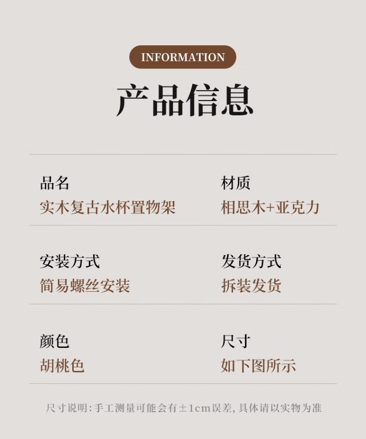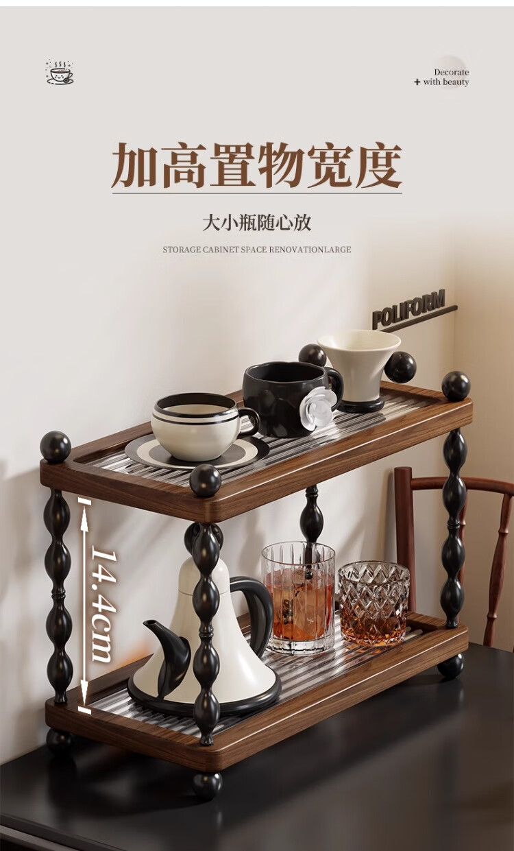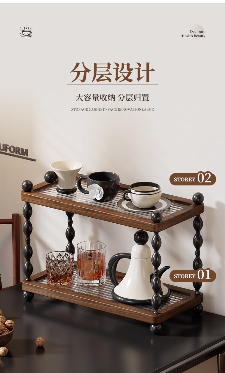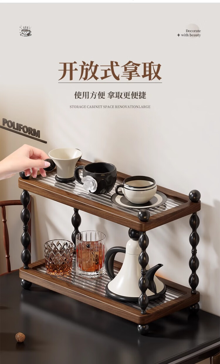尔思家杯子收纳架厨房柜子分层置物架茶杯架咖啡杯整理架家用杯架沥水架 胡桃色大号【进口实木】