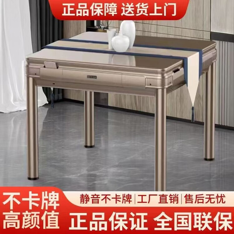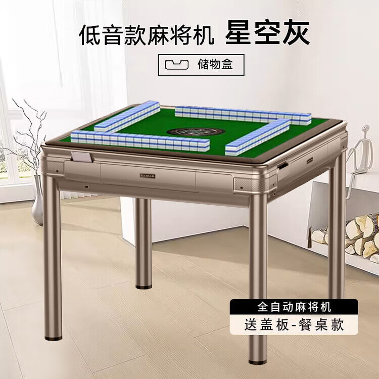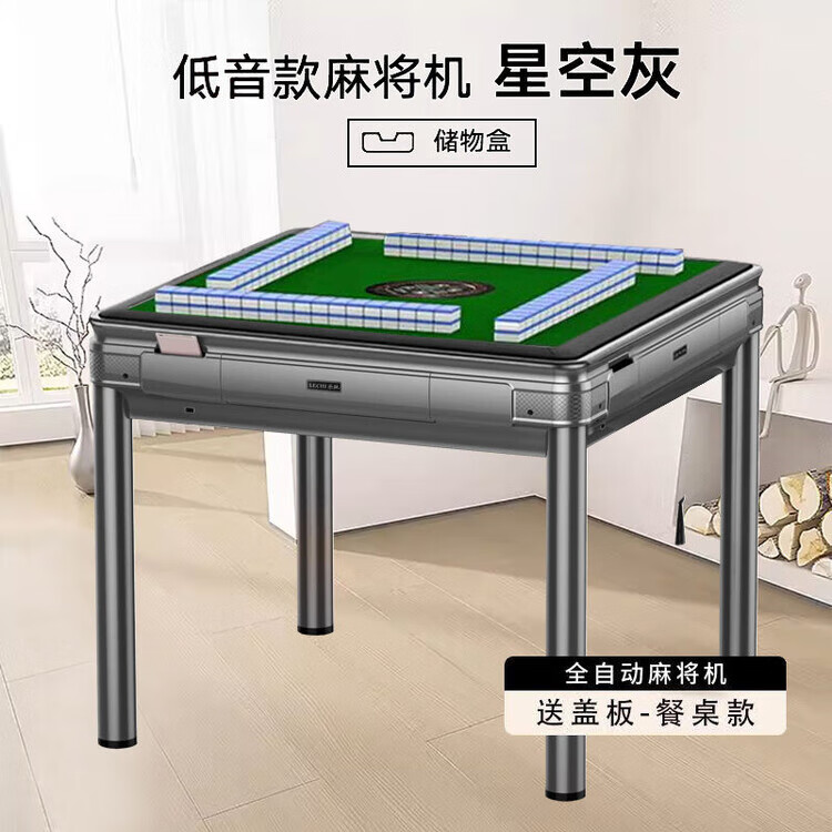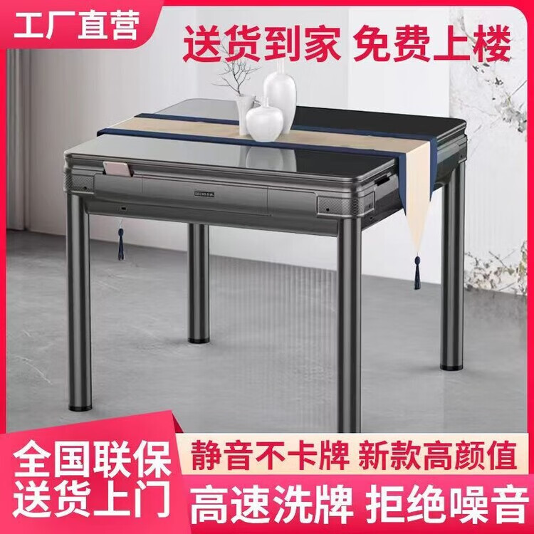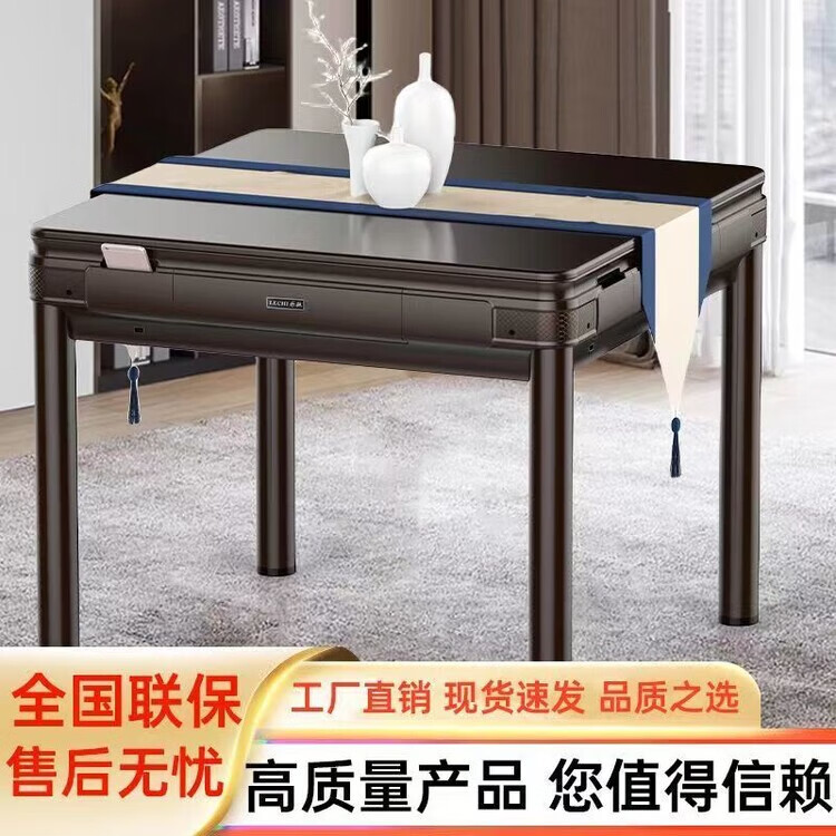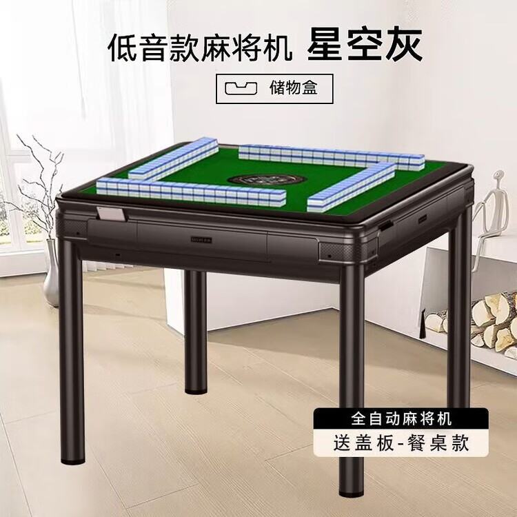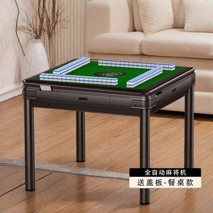 倘然之家2025新款麻将机全自动家用高档麻将馆原装机麻将桌餐桌一体两用机 旗舰机磨砂黑无盖板2副麻将牌 44号-136张蓝绿麻将牌