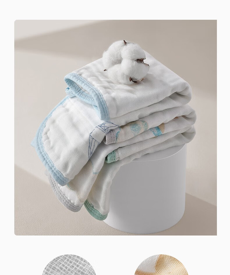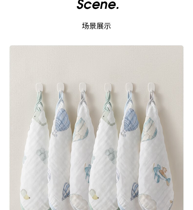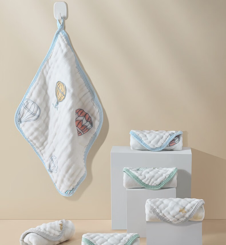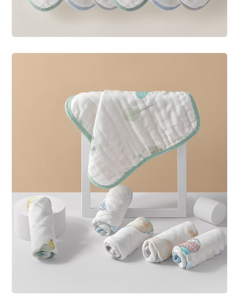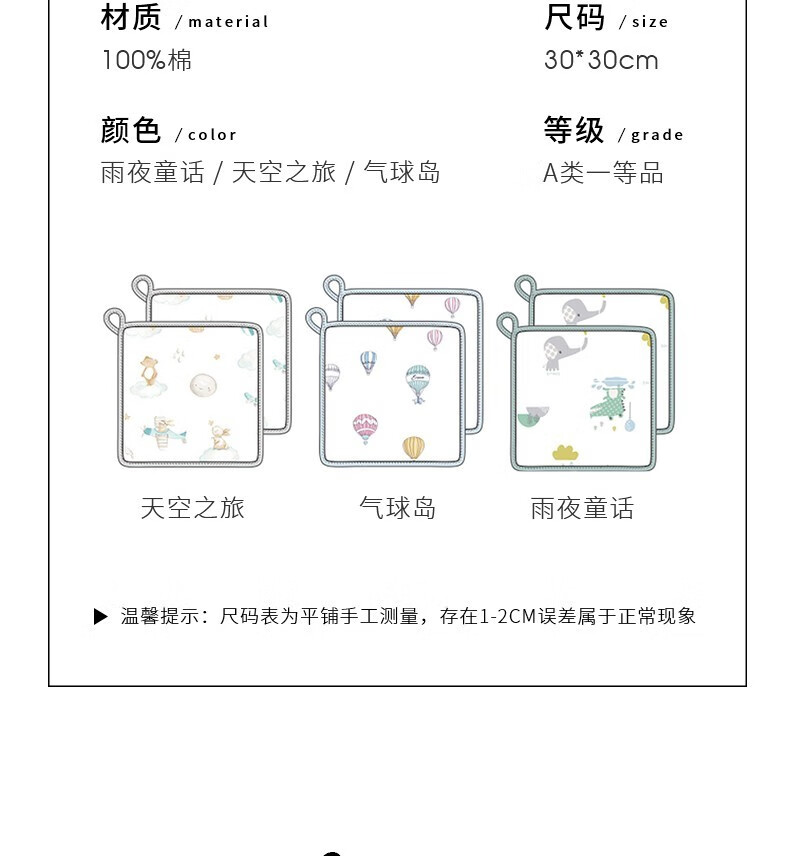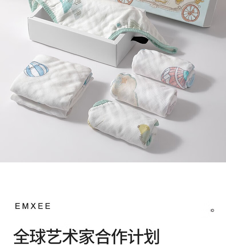 嫚熙(EMXEE)婴儿口水巾纱布新生儿宝宝手帕洗脸洗澡毛巾小方巾6条 气球岛*2+天空之旅*2+雨夜童话*2