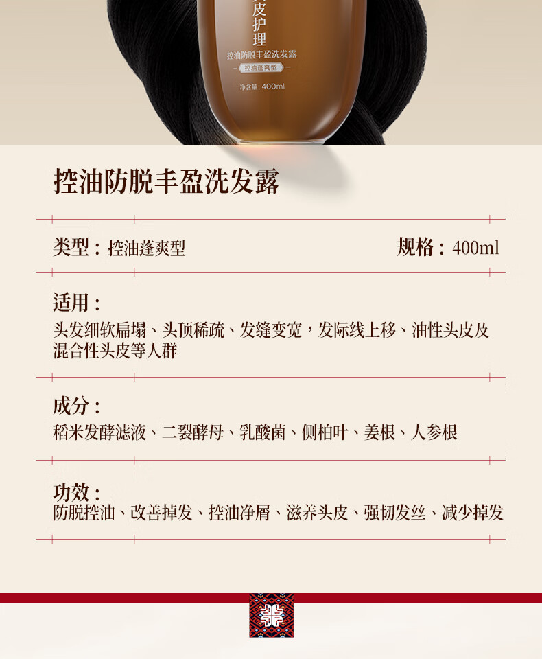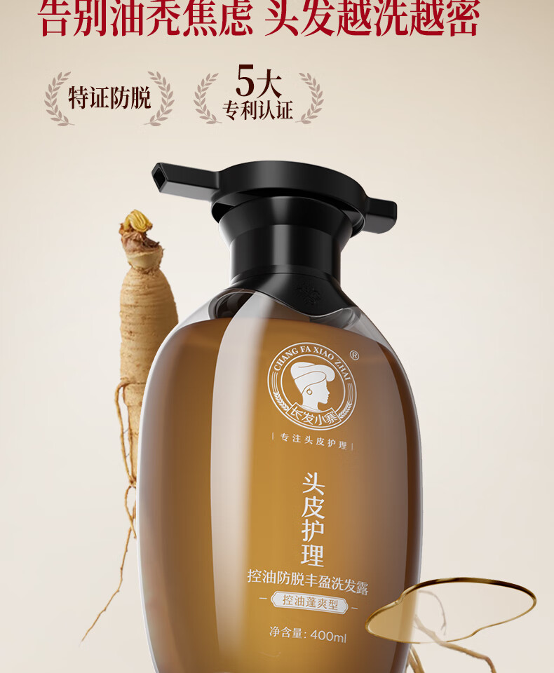 长发小寨【新品】控油防脱丰盈洗发水(控油蓬爽型)400g【拍2更优惠】
