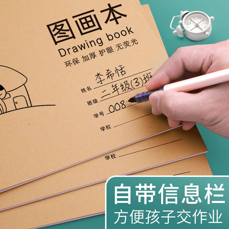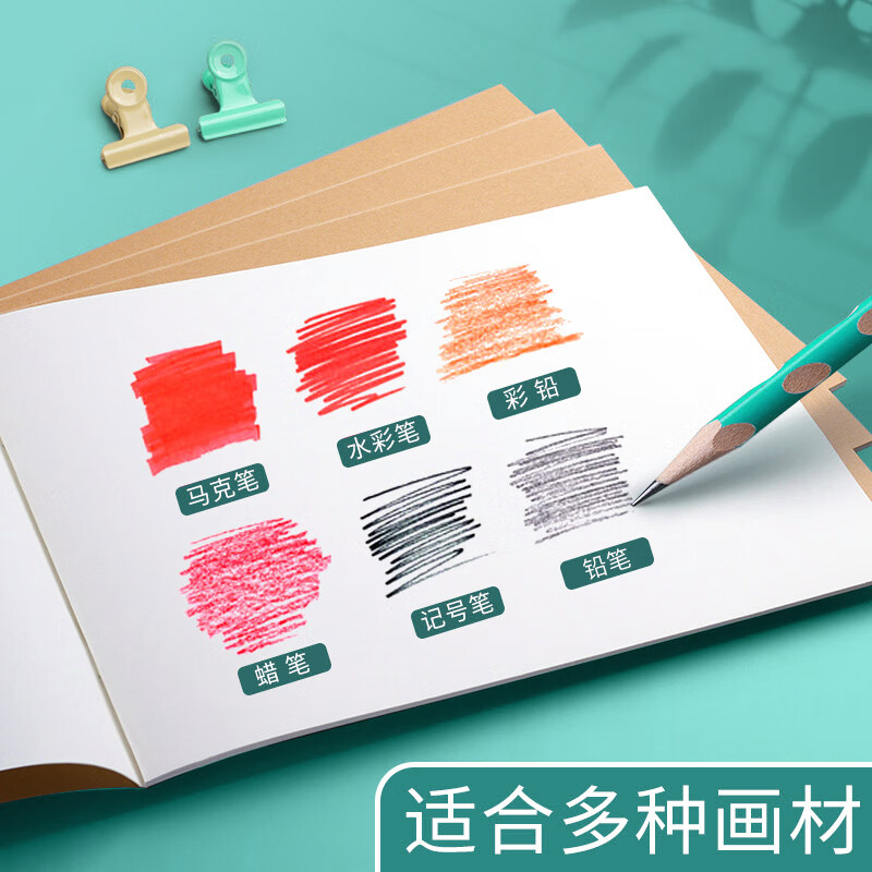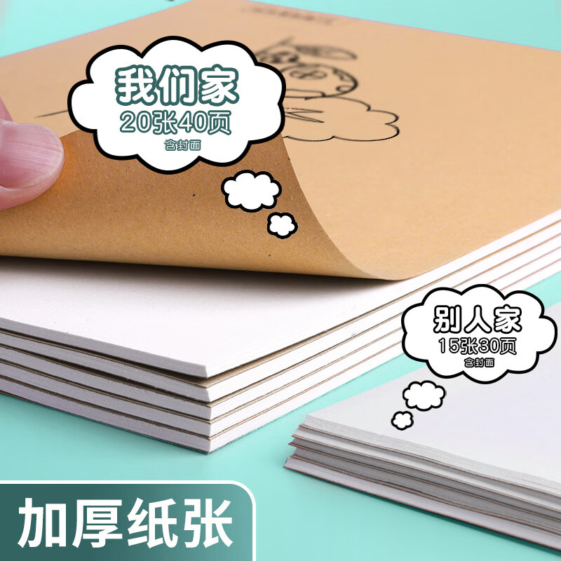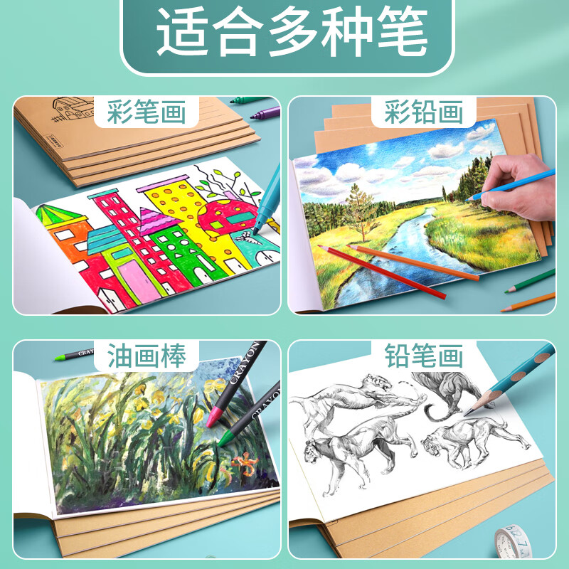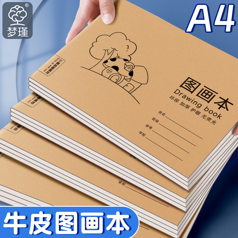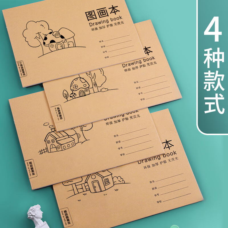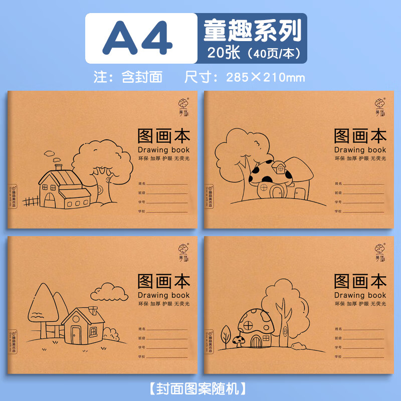 简约牛皮纸a4儿童图画本幼儿园一年级专用空白美术绘画本彩铅蜡笔专用绘画纸加厚白纸涂鸦纸素描本 A4【童趣系列】4本装 无规格