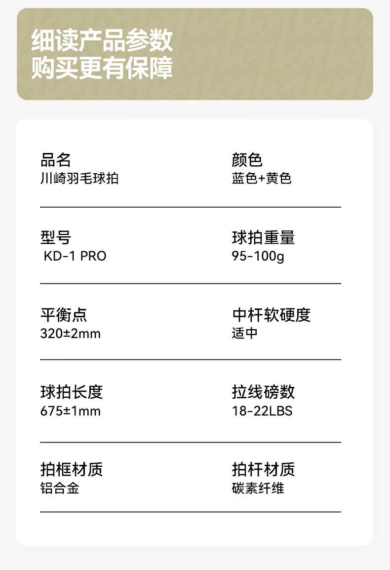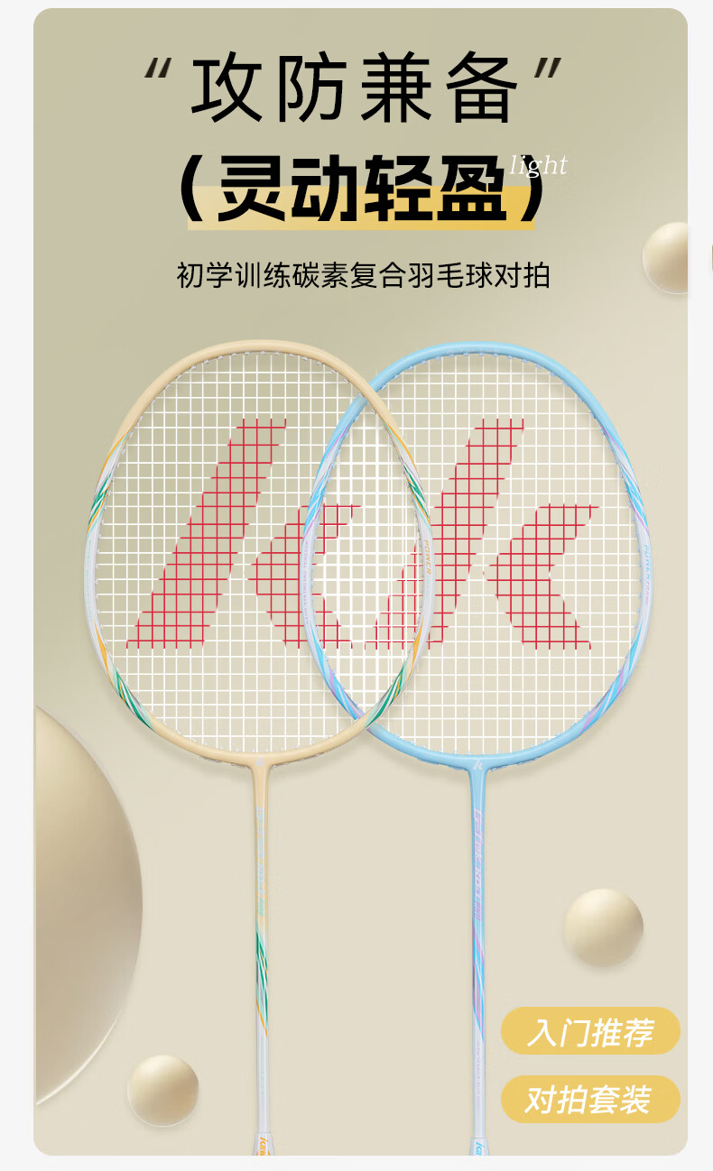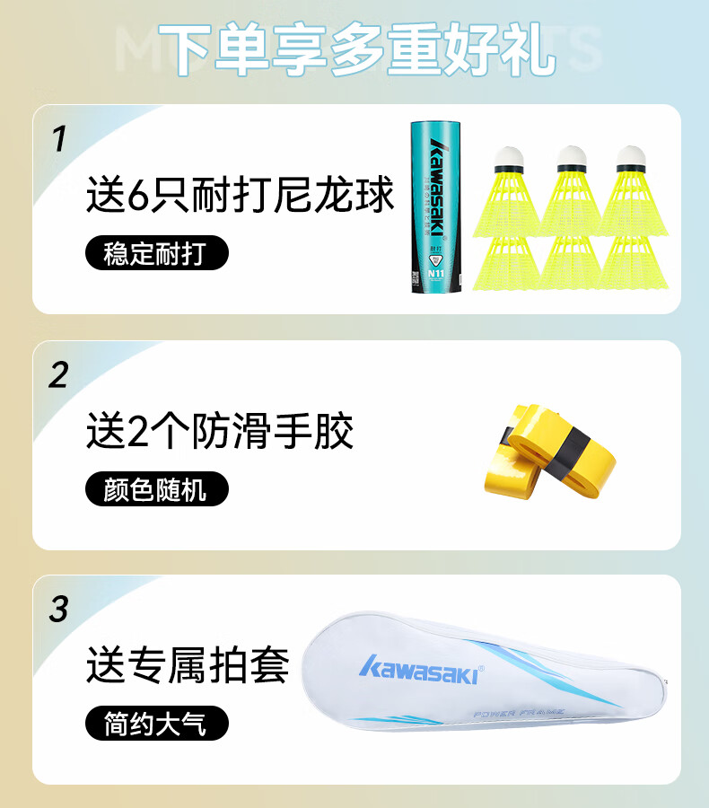 川崎(KAWASAKI)羽毛球拍超轻碳素中杆对拍KD-1pro蓝黄(已穿线+6球+手胶+拍包)