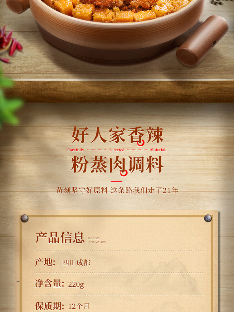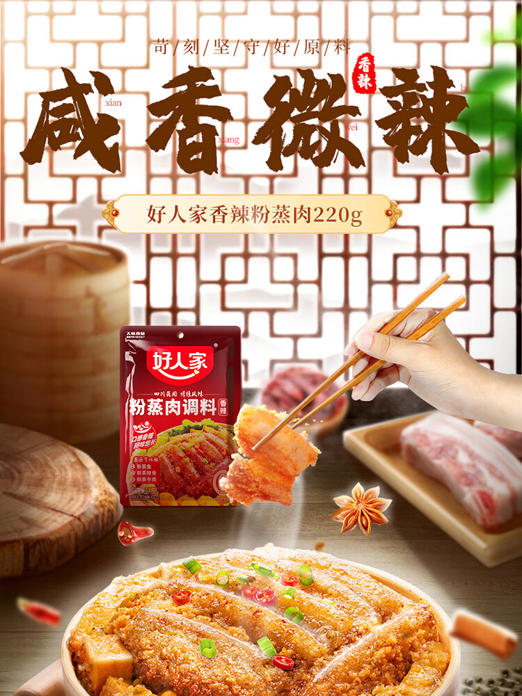 好人家香辣味粉蒸肉调料220g 【0添加防腐剂】蒸肉鱼排骨家庭调料