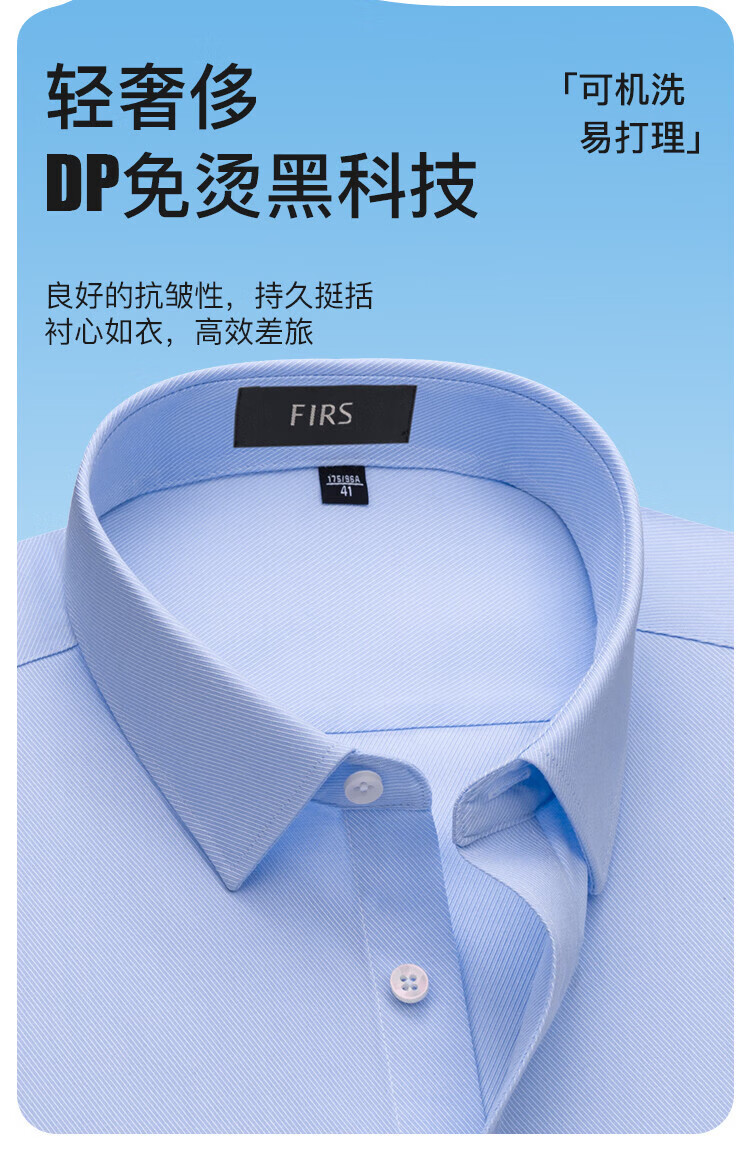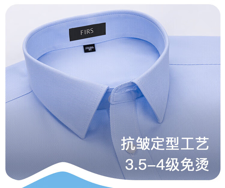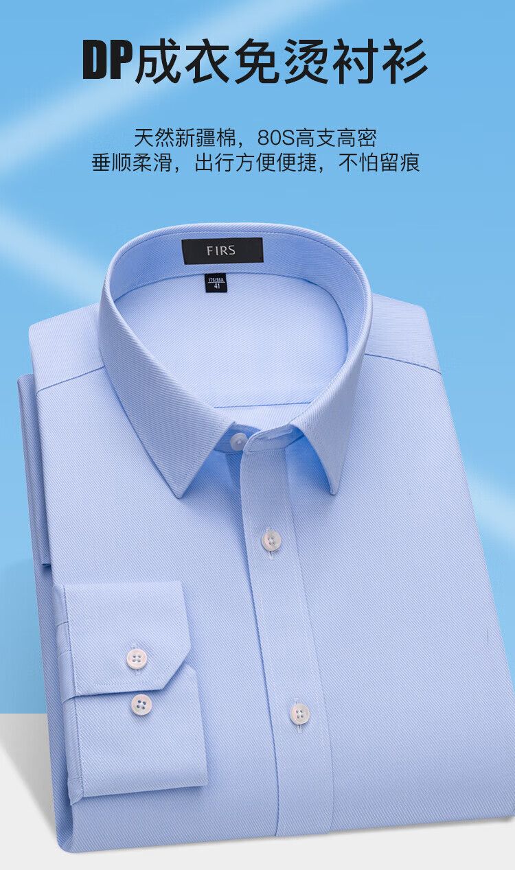 杉杉(FIRS)【80支免烫】衬衫长袖男装商务休闲纯棉衬衣亲肤柔软挺括翻领上衣 浅蓝 39 (170) 170/88A