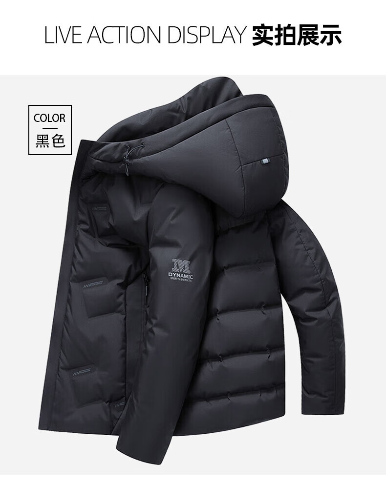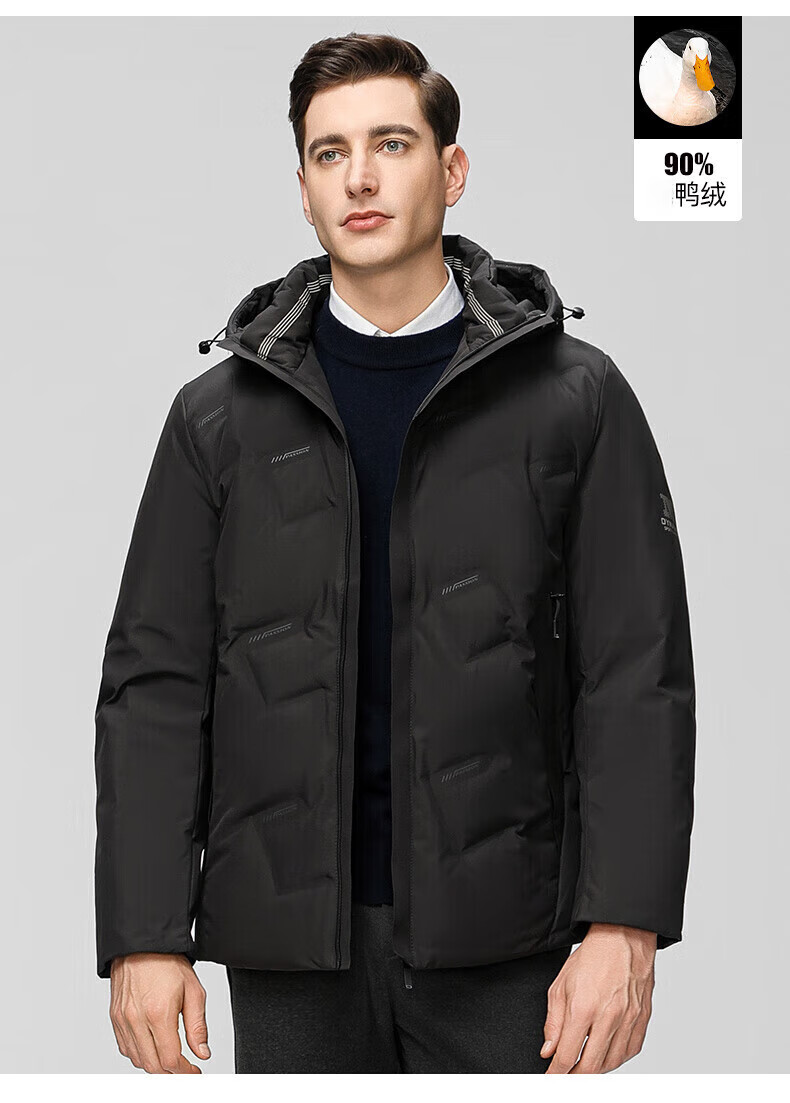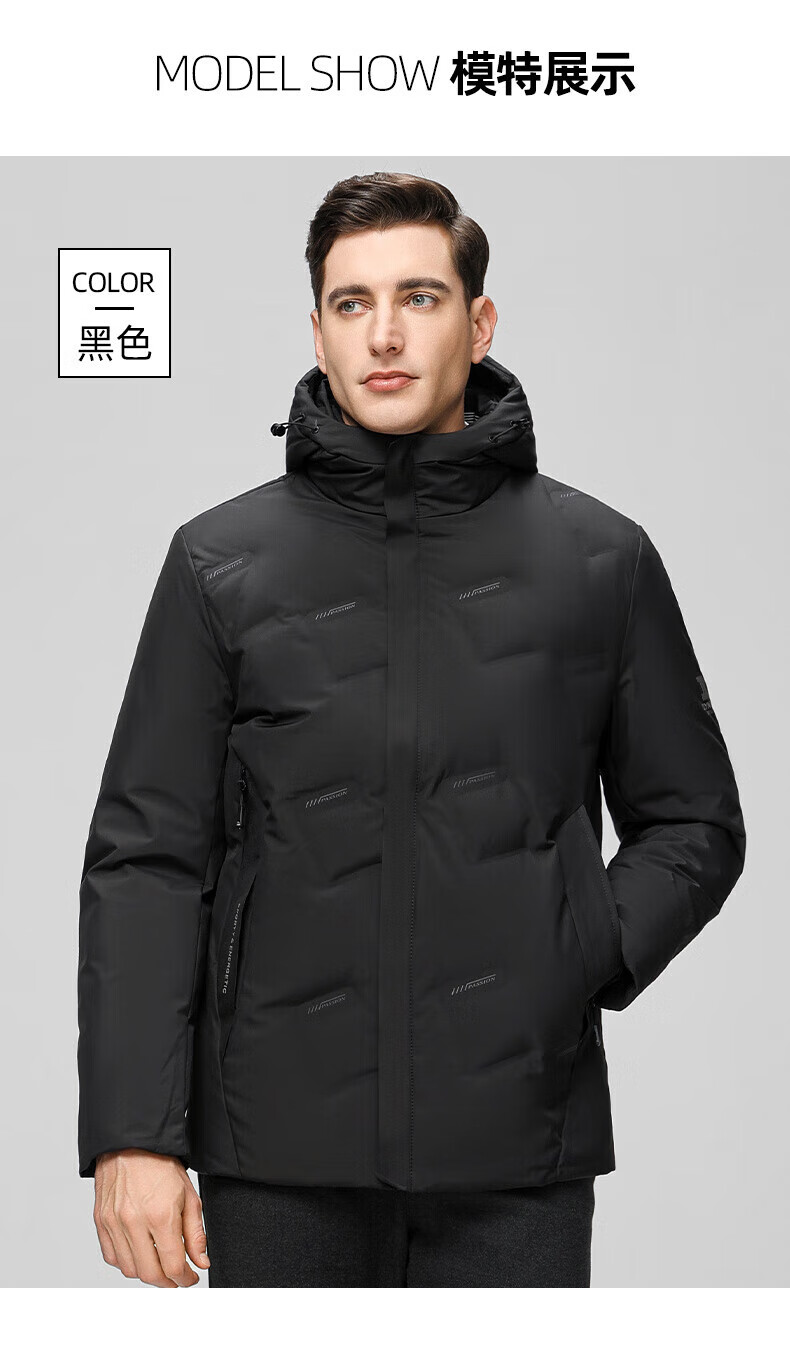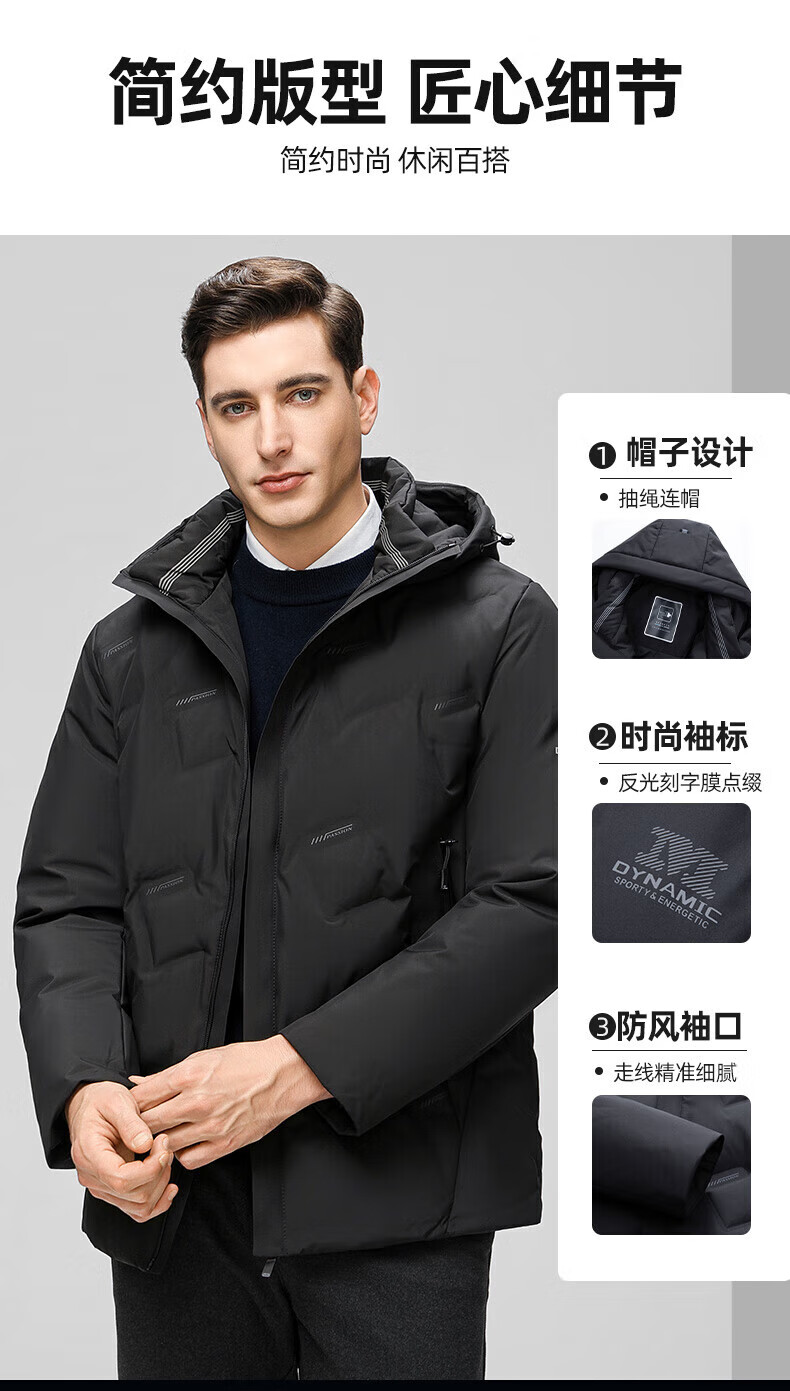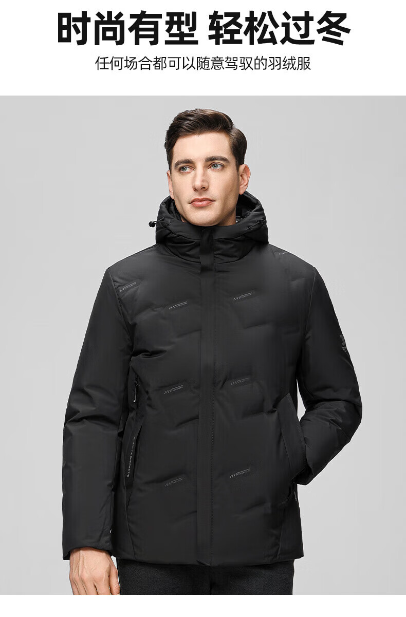 海澜之家(HLA)羽绒服男25新款运动SPORTSDAY抗静电外套男冬季 黑色3C L 175/92A 推荐140-160斤