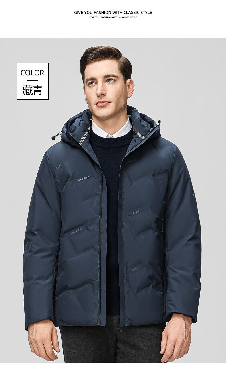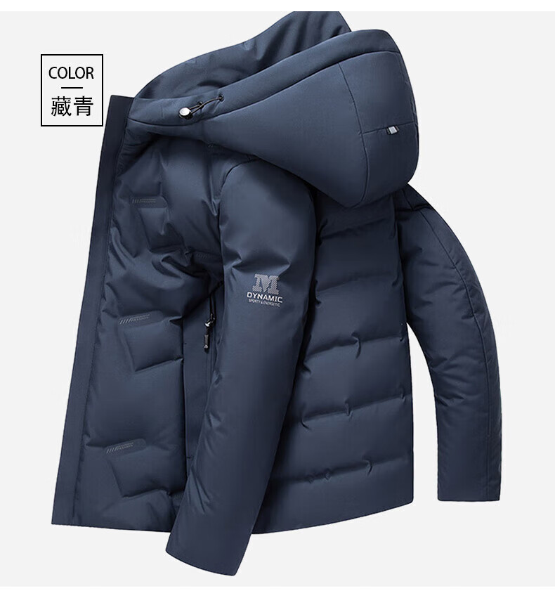 鸭鸭(YAYA)羽绒服男连帽立领短款厚款保暖中青年冬季新款休闲户外工装外套 藏青 XL 180 (建议125-140斤)