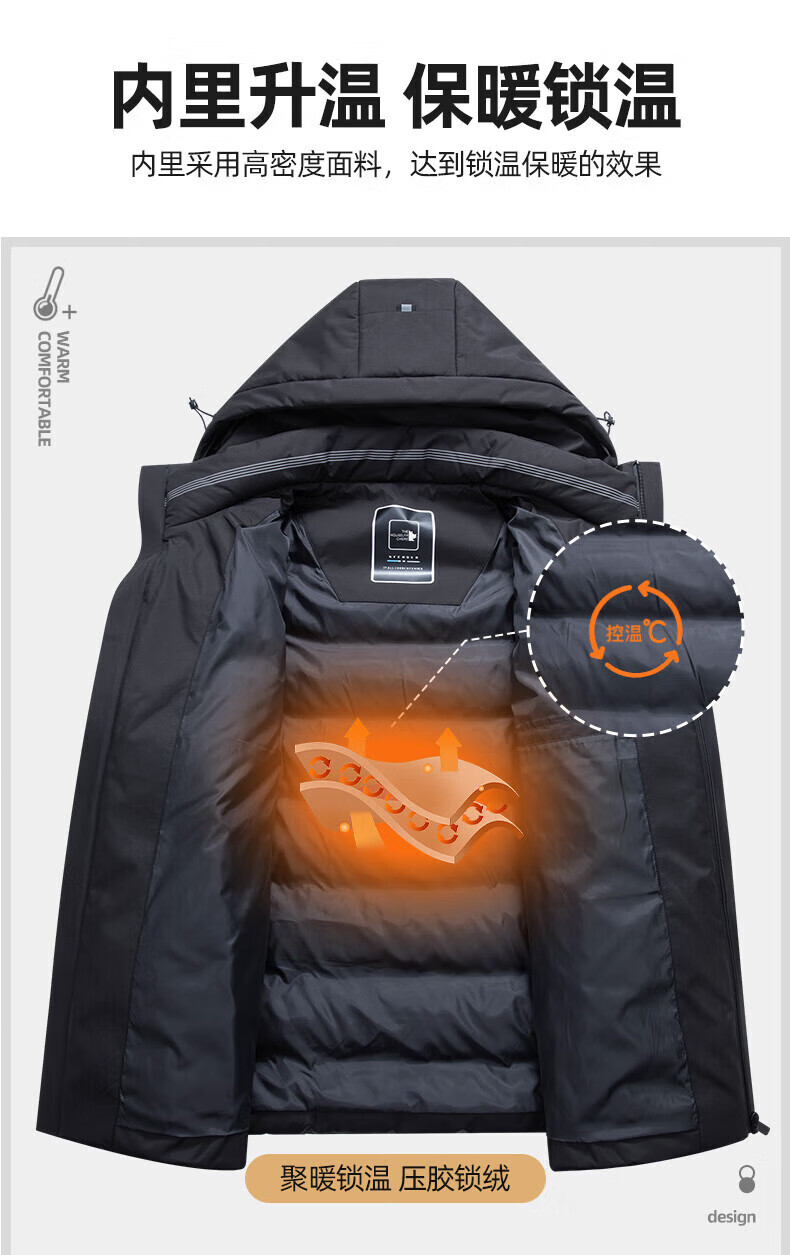 海澜之家(HLA)羽绒服男款轻商务经典系列石墨烯外套男冬季 黑色5H L 175/92A 推荐140-160斤