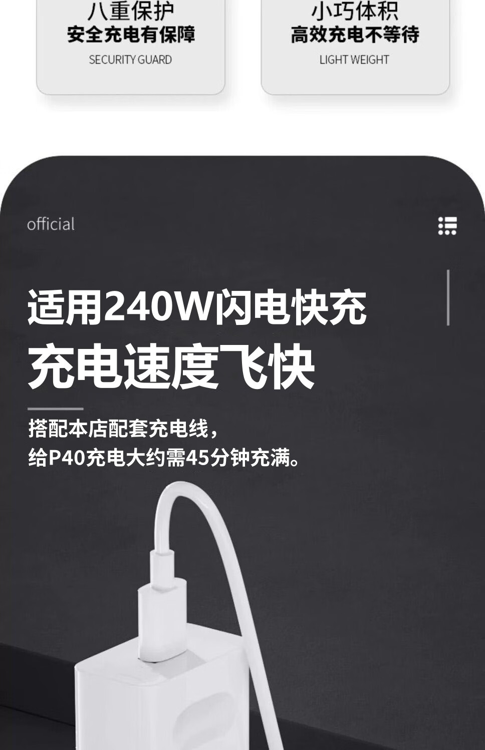 圣希顿适用华为充电器240W超级手机快充头套装type-c数据线mate40/50/60pro nova11/10p40适用荣耀充电器 240W极速闪充线2.0米+超级快充头|安全认证