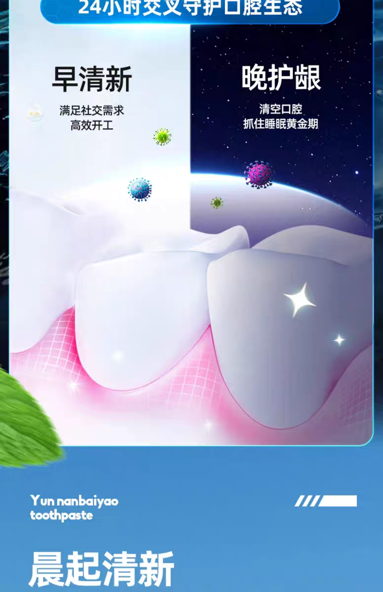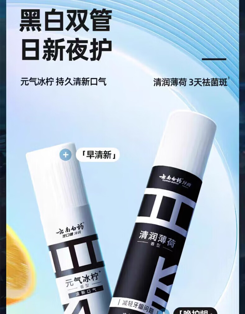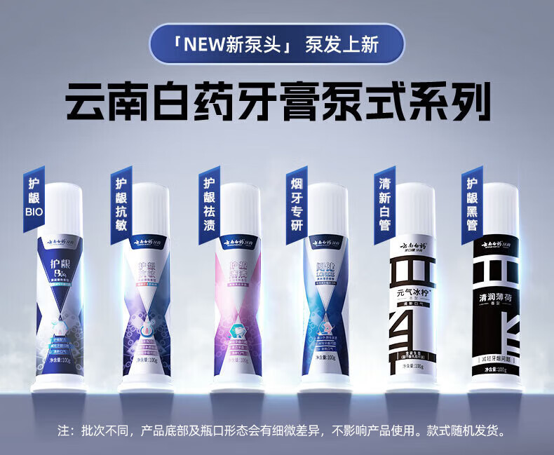 云南白药【赵丽颖推荐】直立按压泵式牙膏日用清新夜用护龈益生菌清新口气 牙膏 405g*1套 +牙刷1支