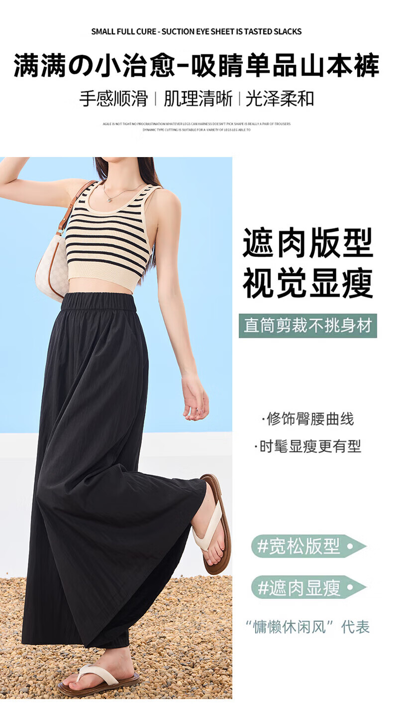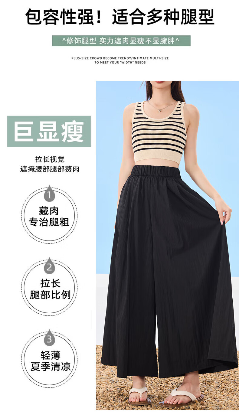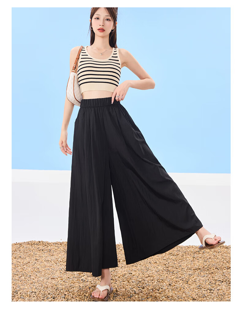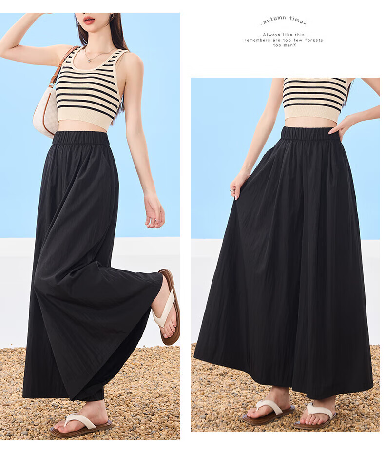 浪莎山本裙裤女夏季2025新款高腰显瘦小个子A字半身裙冰丝薄款阔腿裤 黑色 L 【推荐126-140斤】
