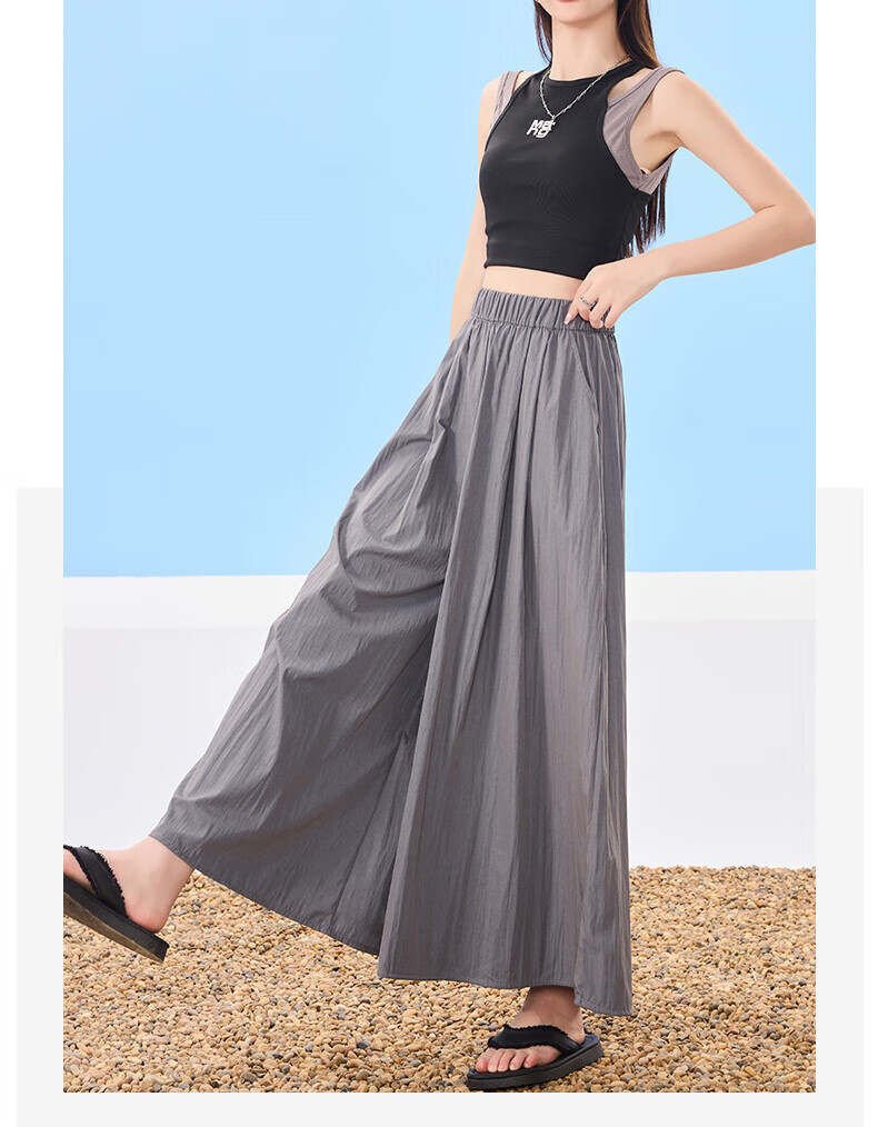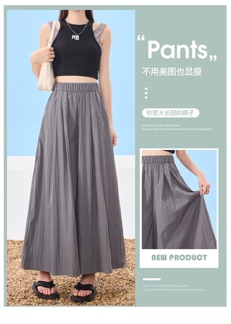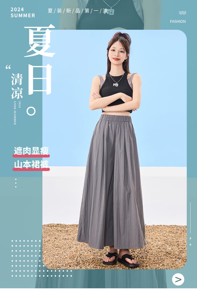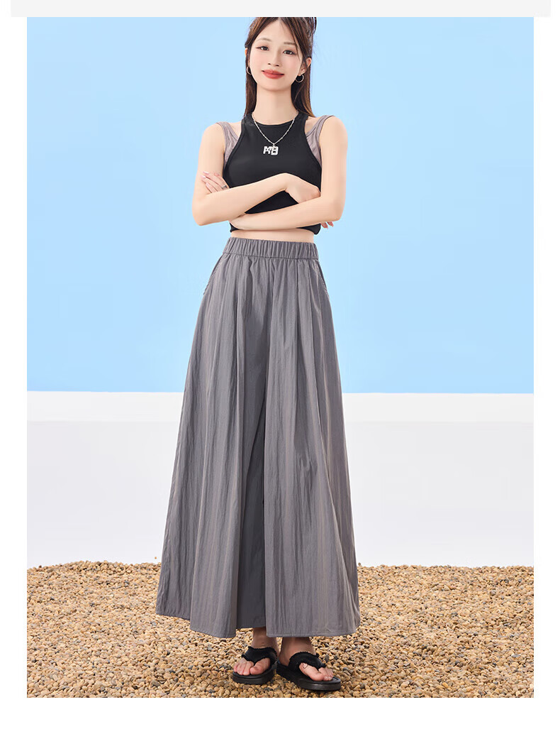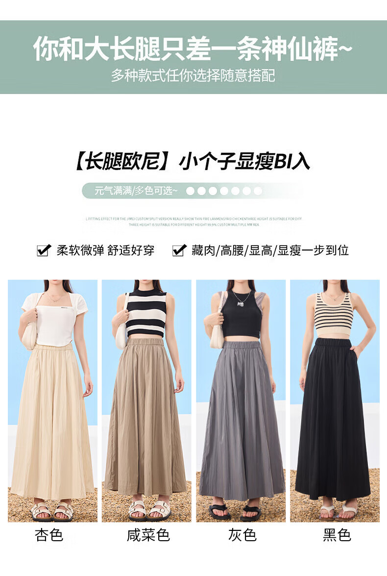 浪莎山本裙裤女夏季2025新款高腰显瘦小个子A字半身裙冰丝薄款阔腿裤 黑色 L 【推荐126-140斤】