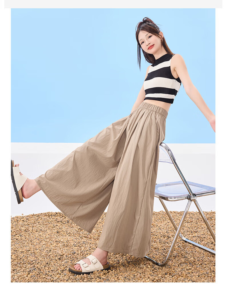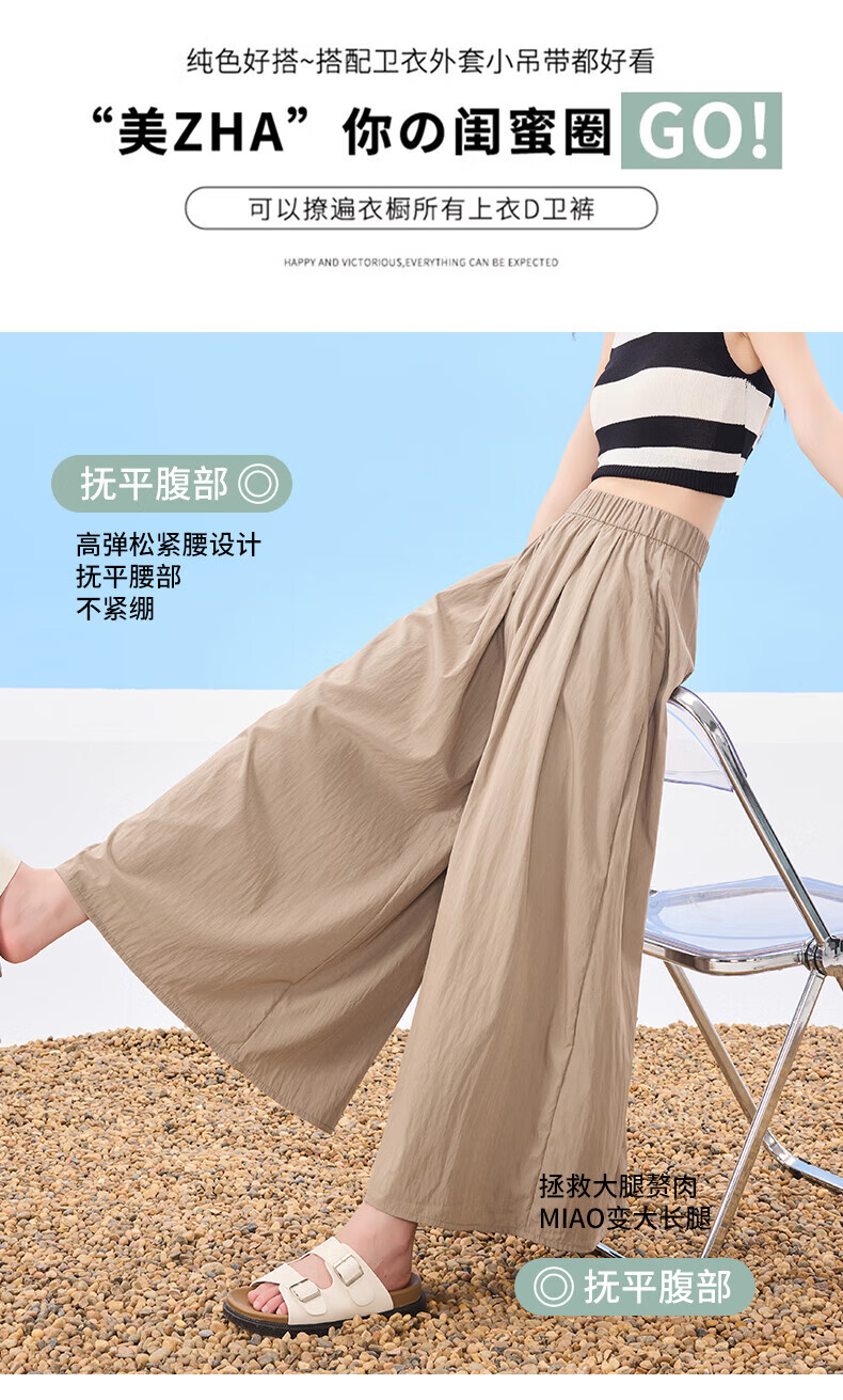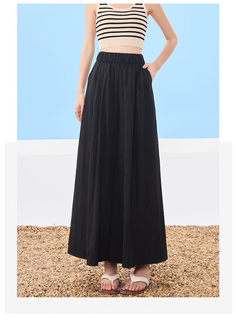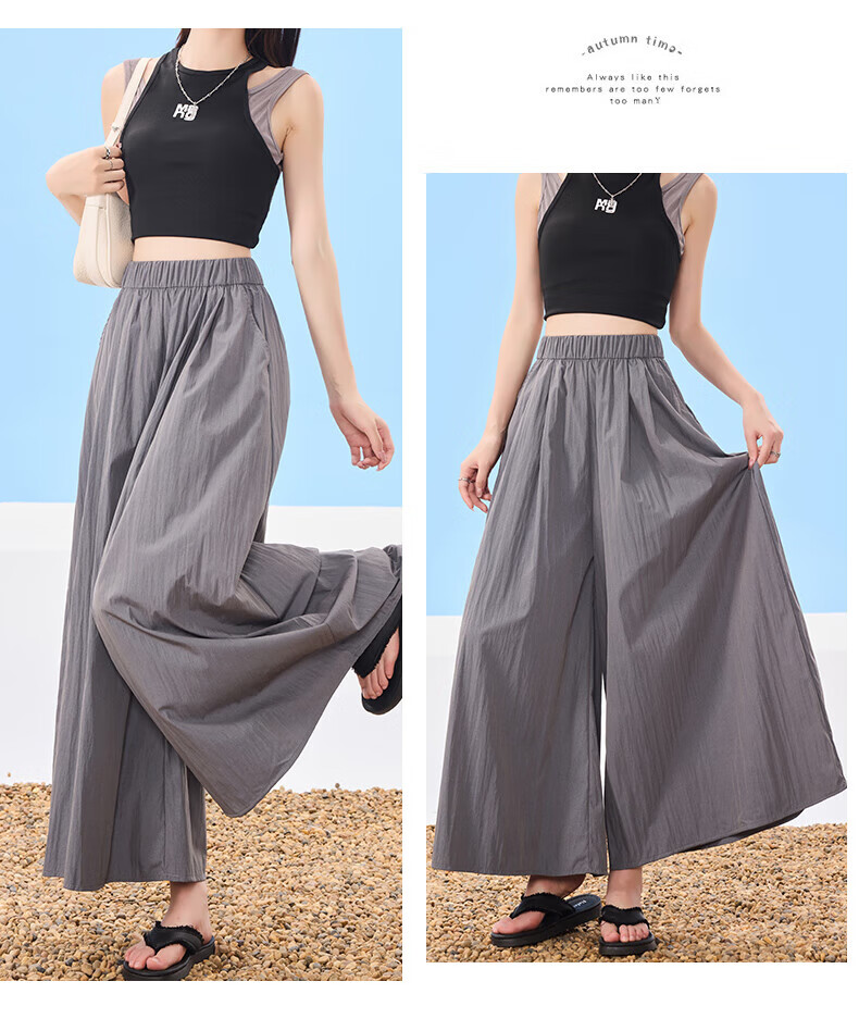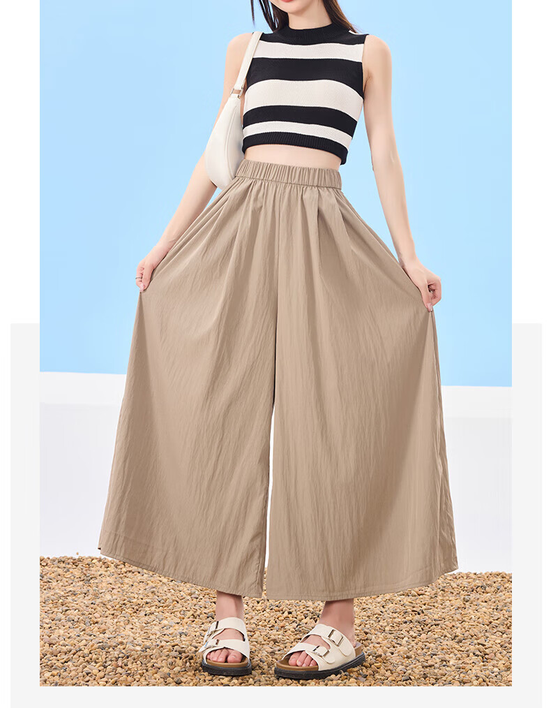 浪莎山本裙裤女夏季2025新款高腰显瘦小个子A字半身裙冰丝薄款阔腿裤 黑色 L 【推荐126-140斤】