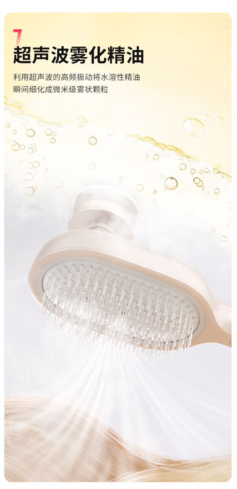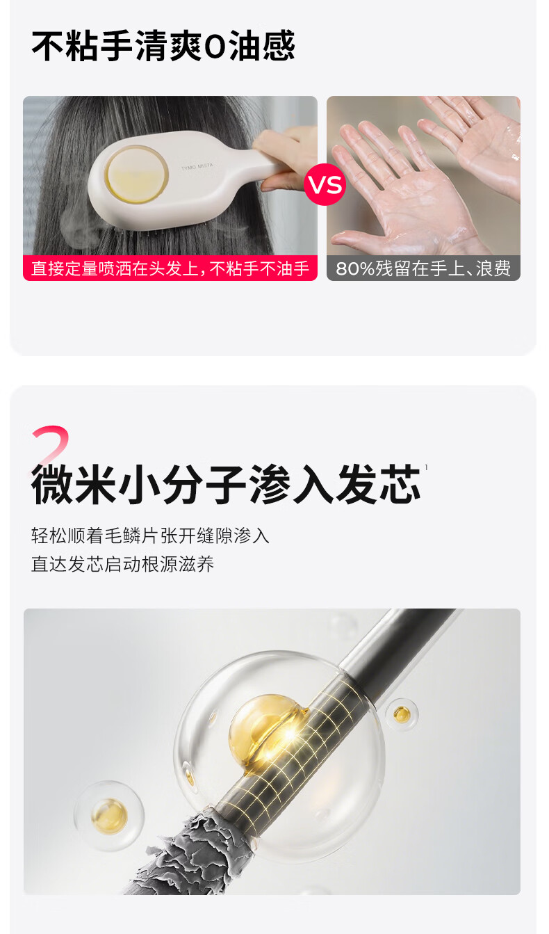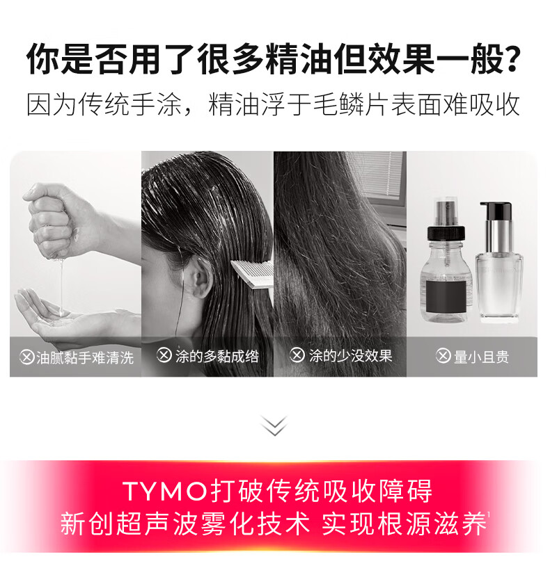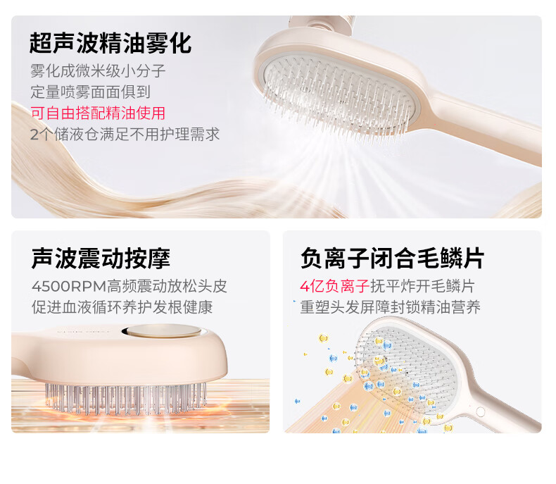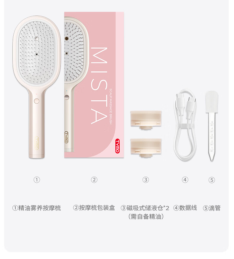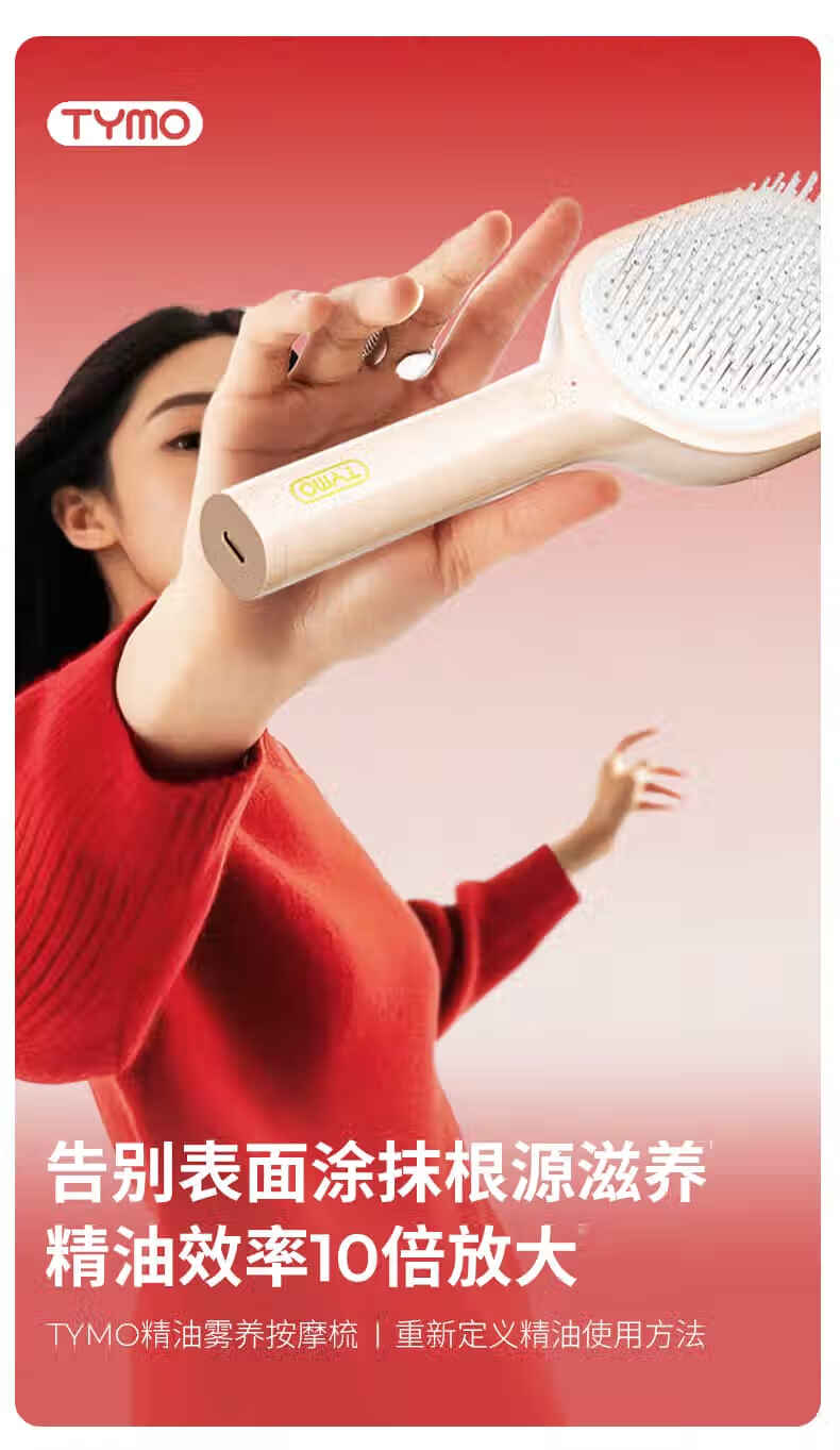 TYMO按摩梳精油雾养头皮按摩4亿负离子精油护发养发养护头皮健康精油雾化按摩梳 粉红色