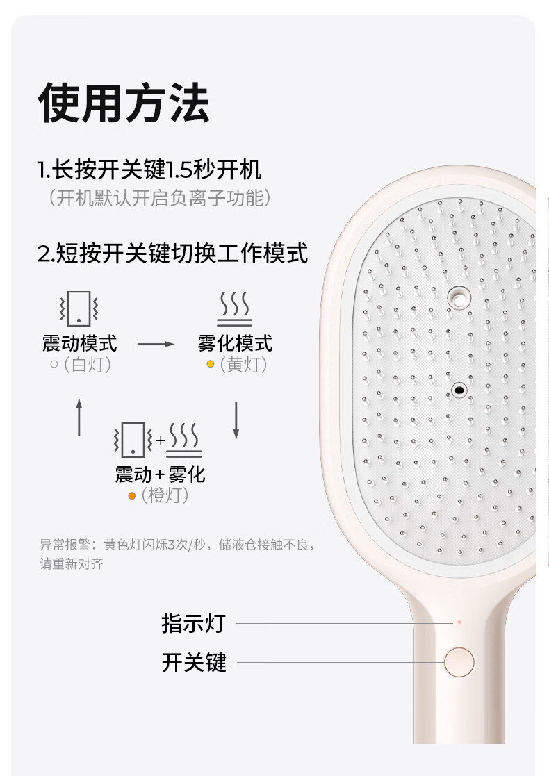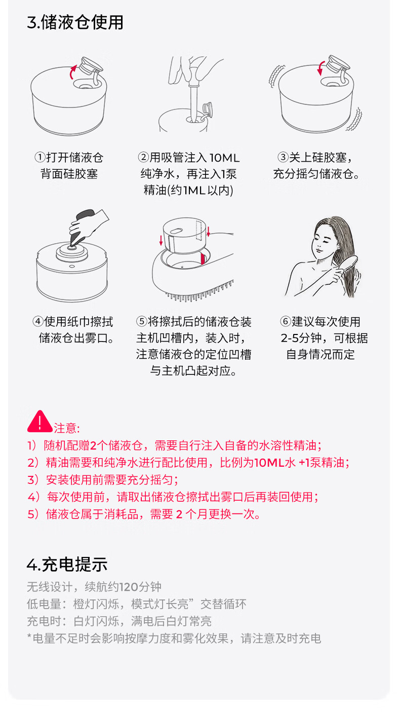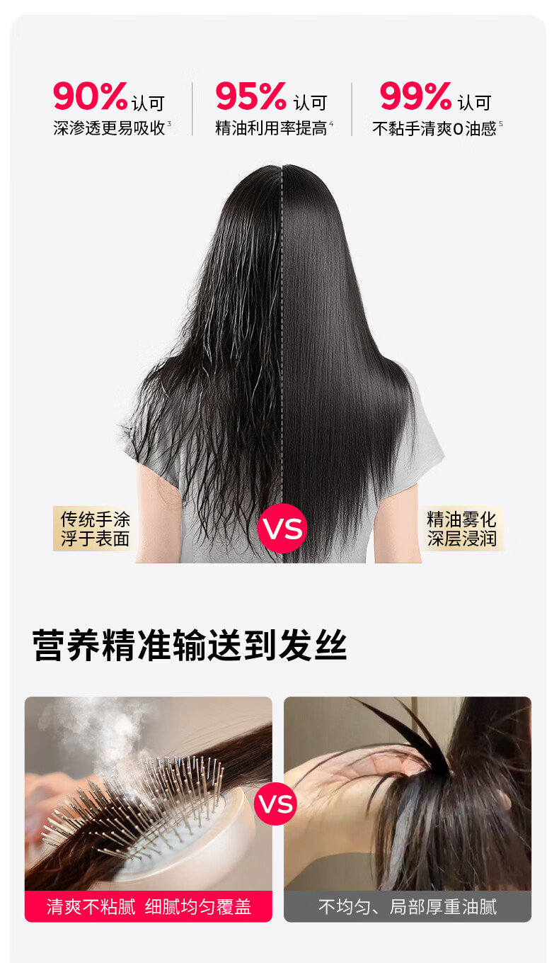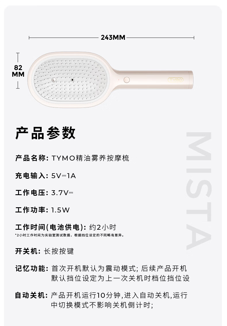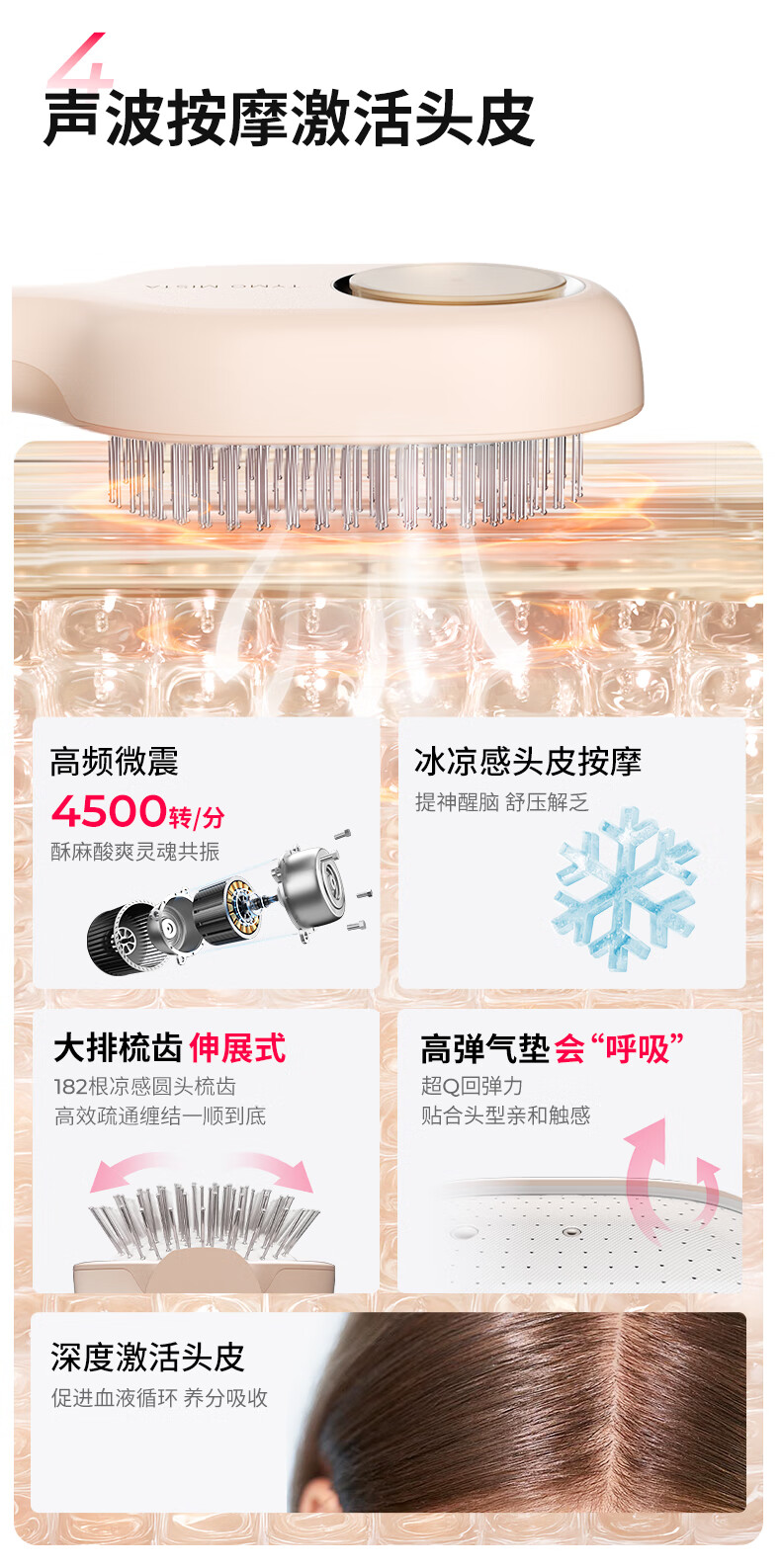 TYMO按摩梳精油雾养头皮按摩4亿负离子精油护发养发养护头皮健康精油雾化按摩梳 粉红色