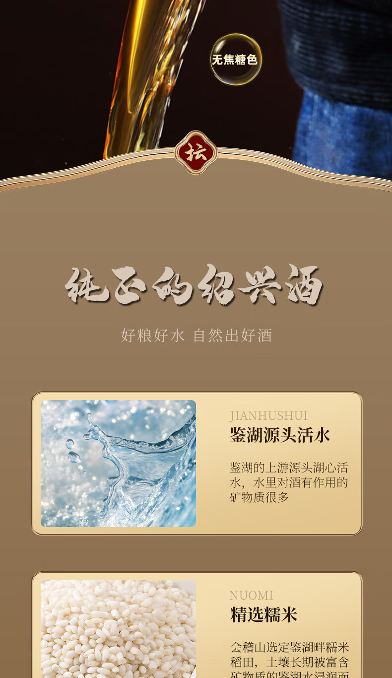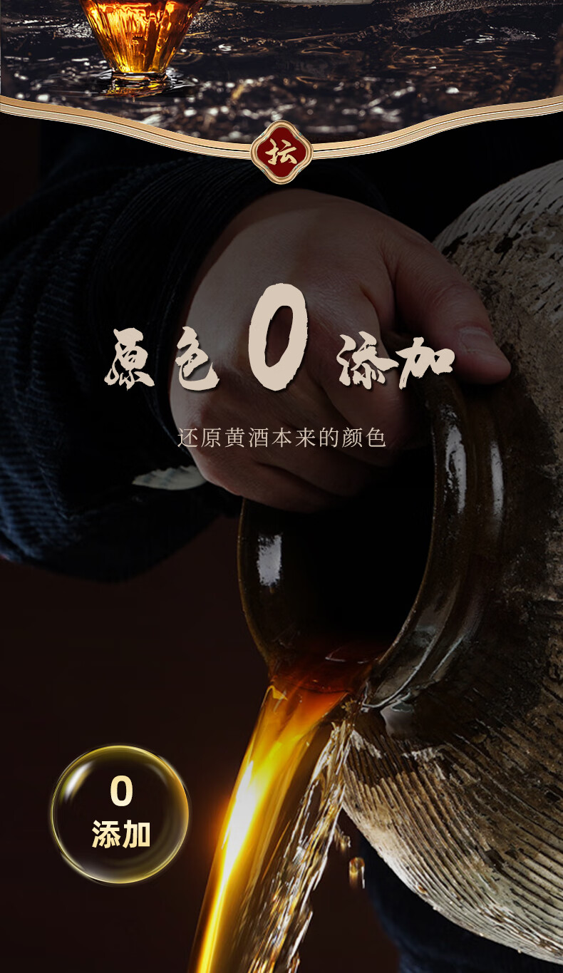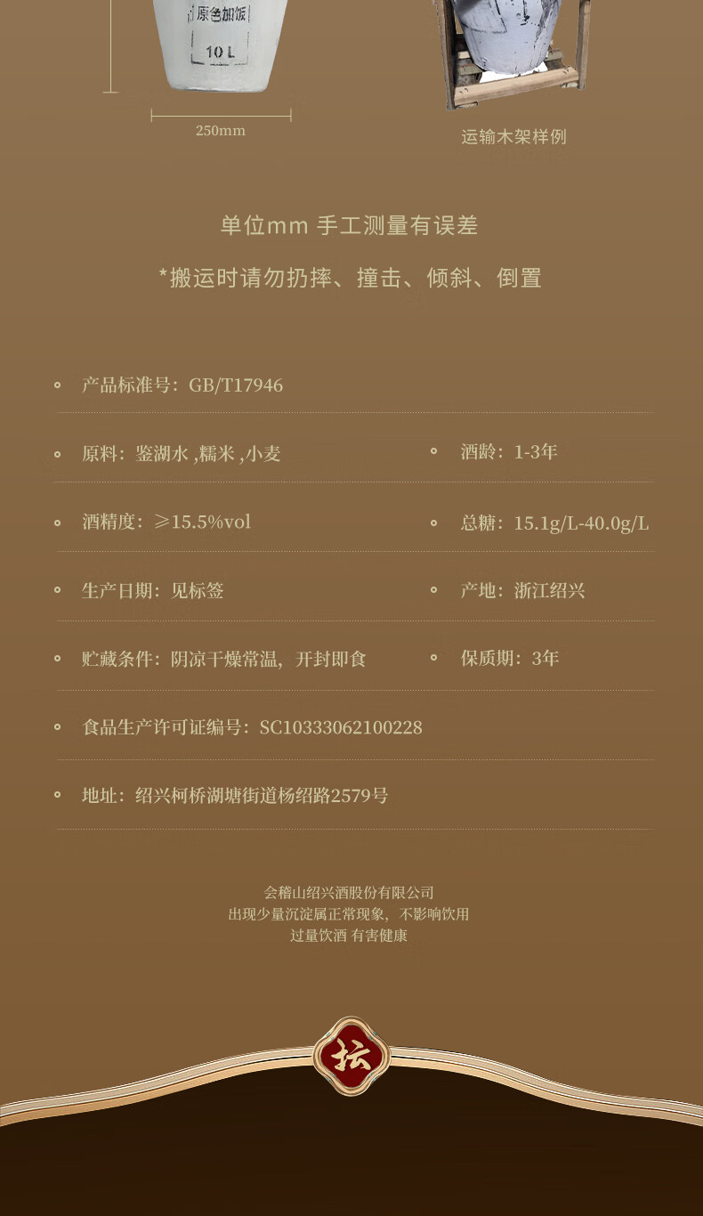 会稽山黄酒 坛装绍兴无焦糖色花雕酒 原色加饭酒15.5度10L(含酒吊) 10L 1坛