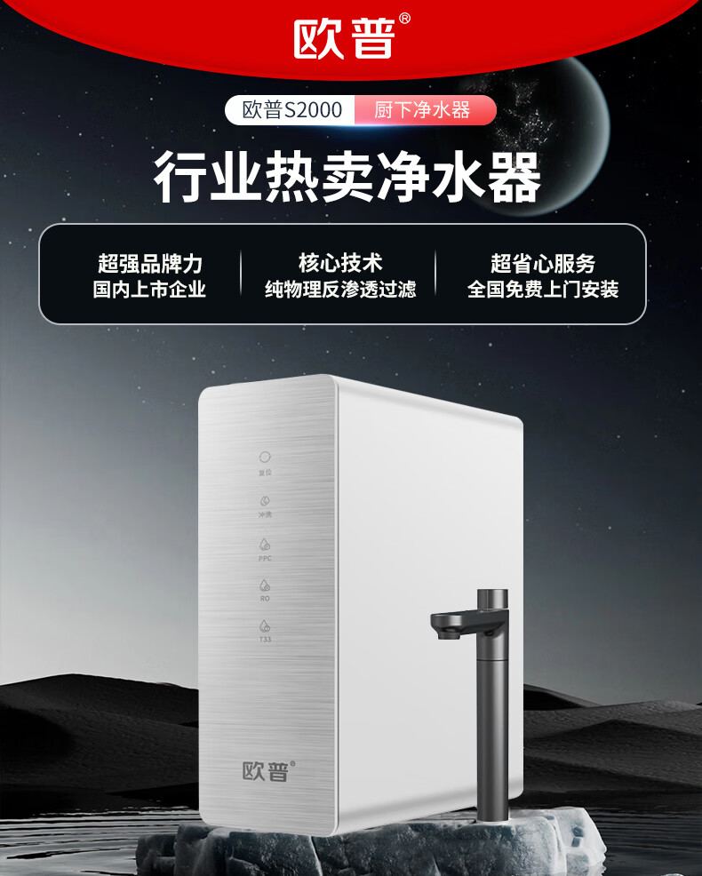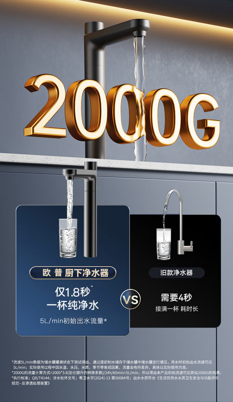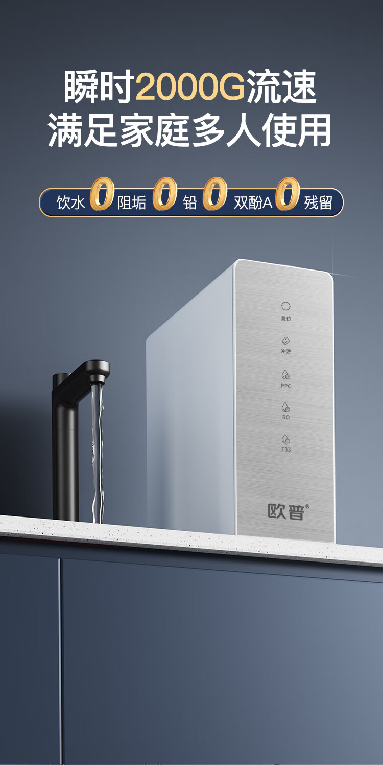 欧普照明净水器家用厨下式RO反渗透瞬时2000G出水0阻垢台下用净水机直饮一体机接自来水净饮机 【超大通量2000G】净水器