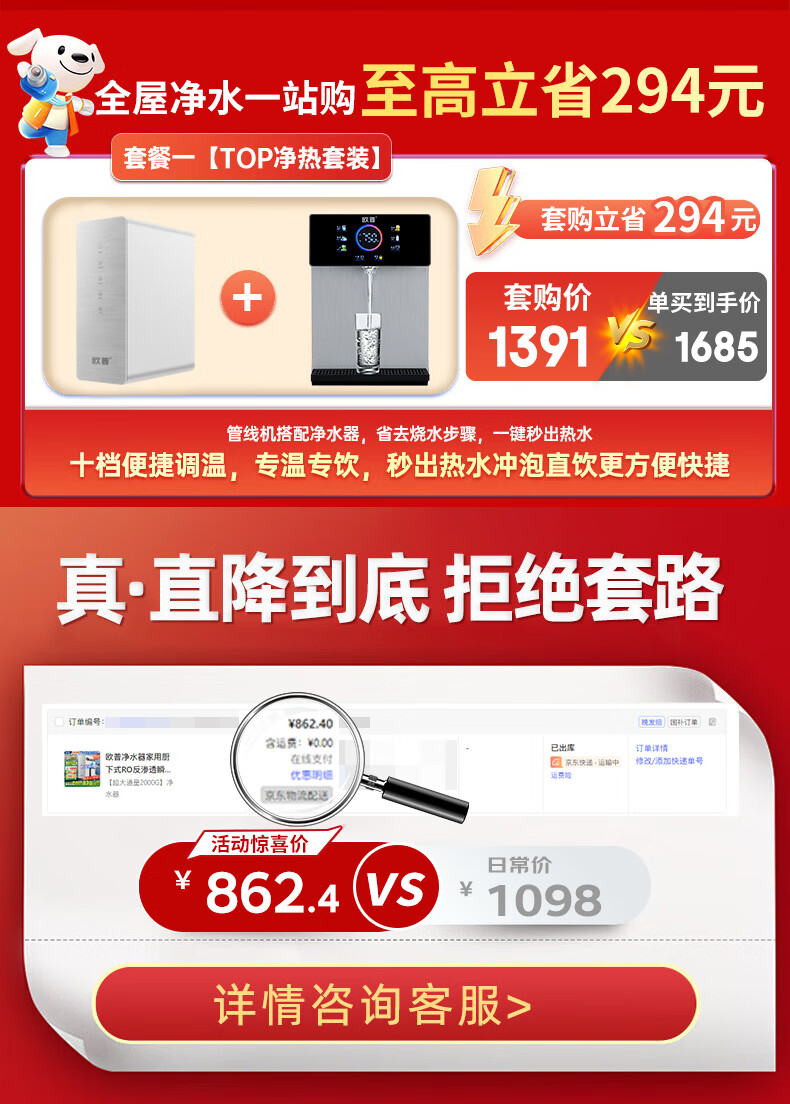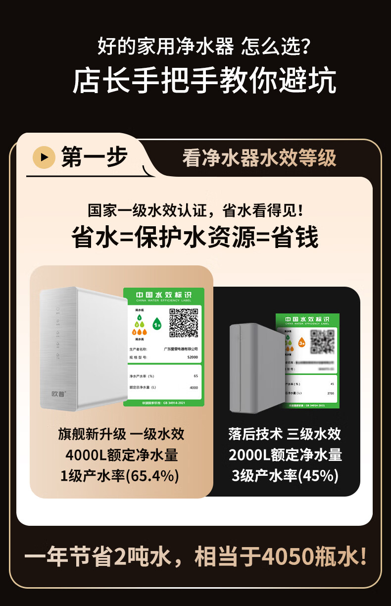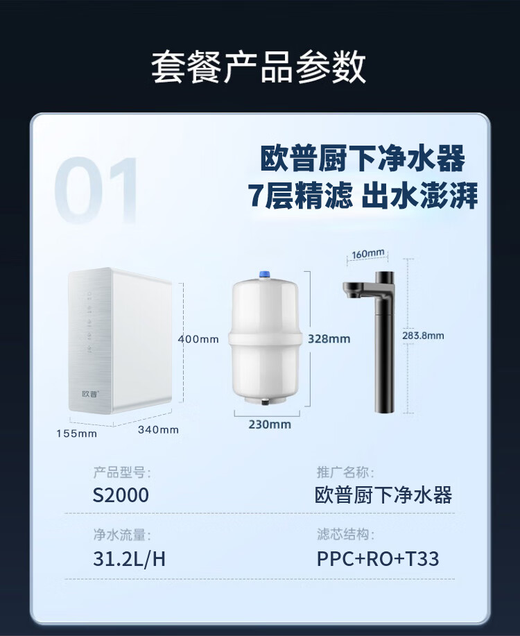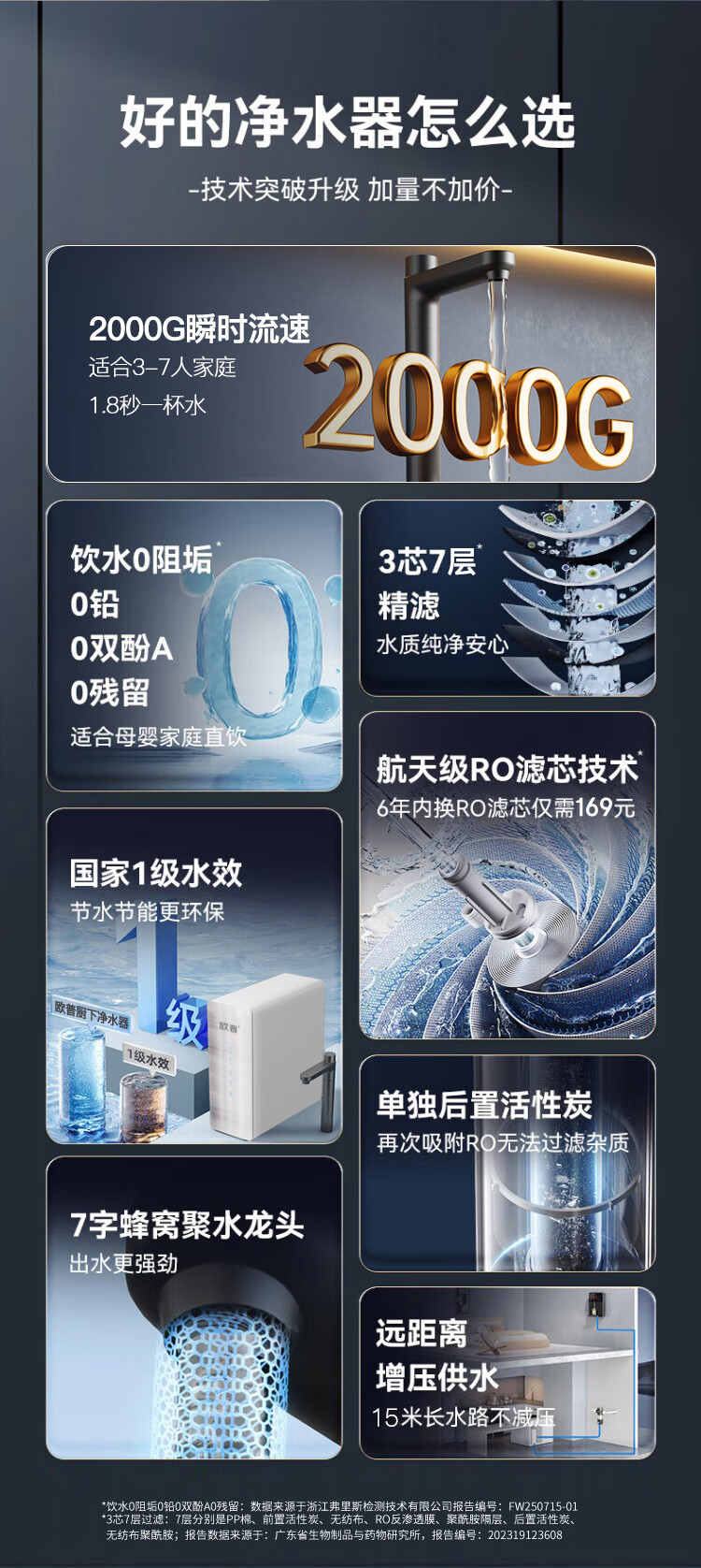 欧普照明净水器家用厨下式RO反渗透瞬时2000G出水0阻垢台下用净水机直饮一体机接自来水净饮机 【超大通量2000G】净水器