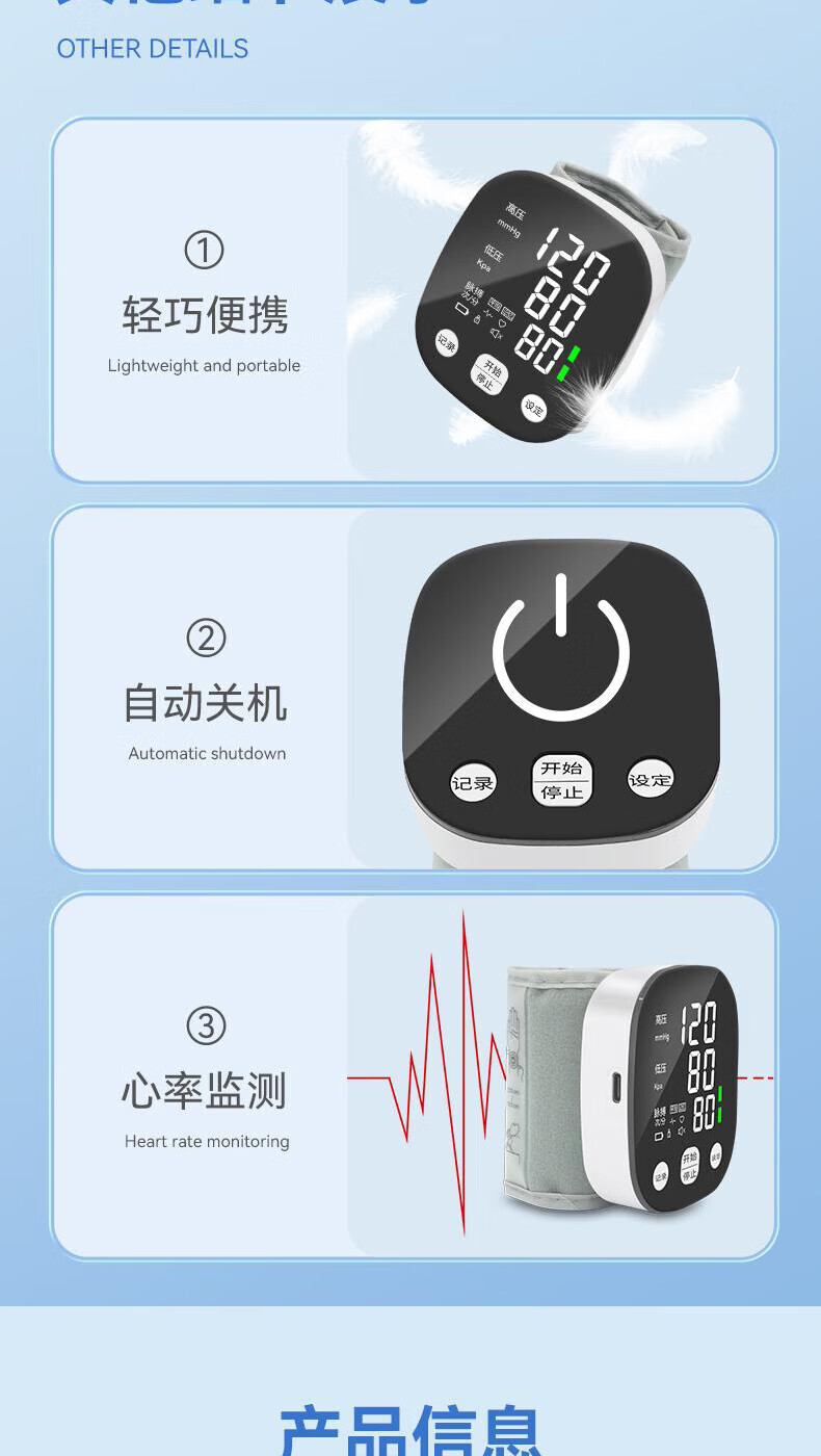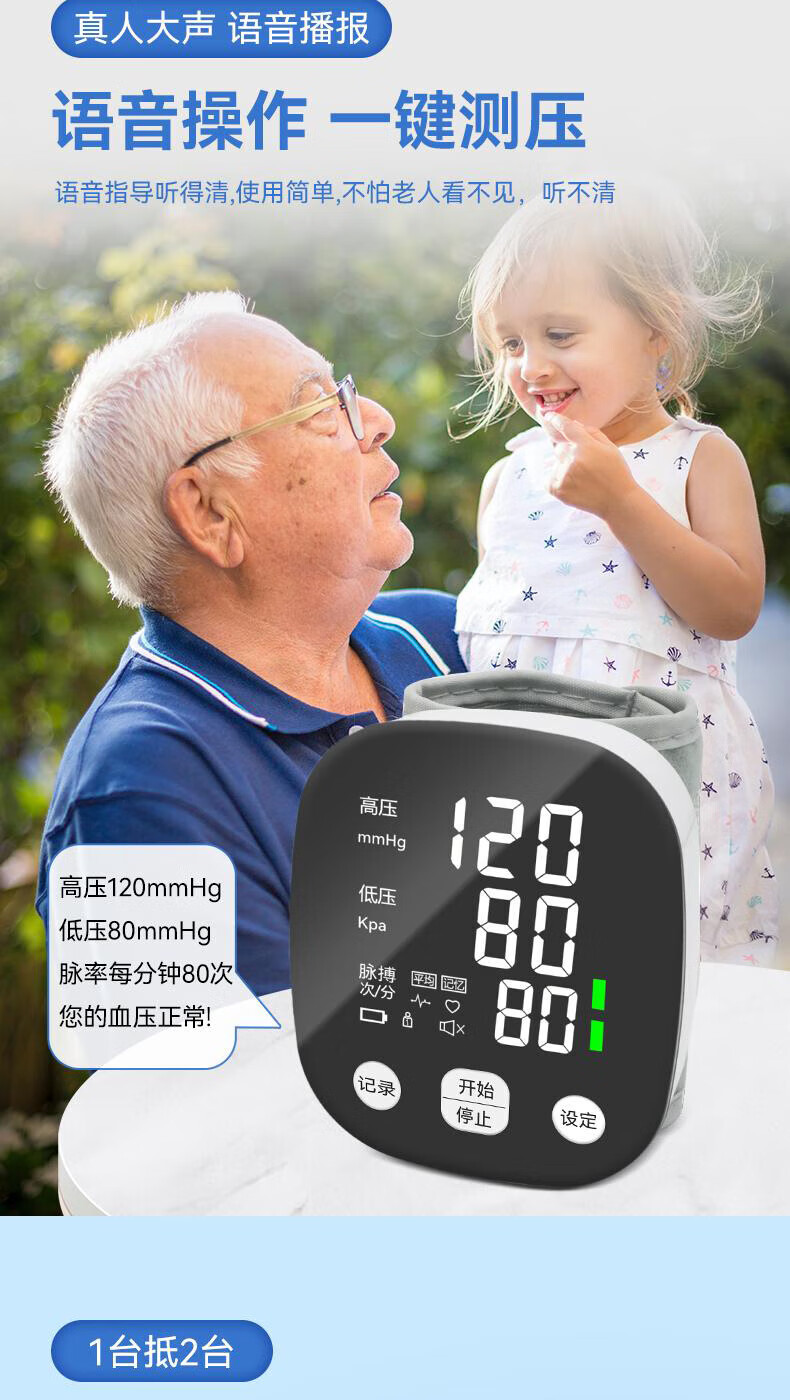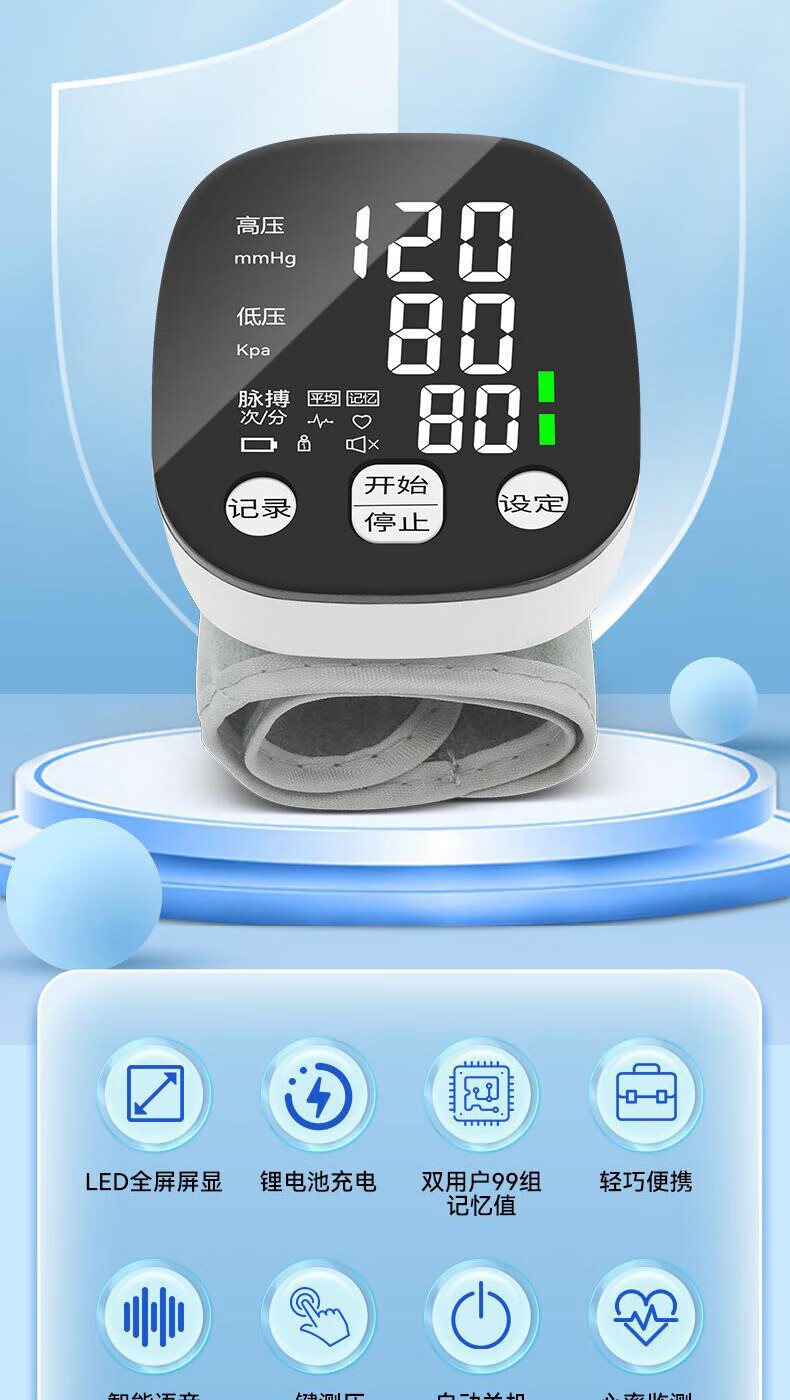 锋立手腕式电子血压计医用高精准家用血压测量仪便携量血压仪器 A01【医用超精准】免脱衣手腕式+语音播报+长续航
