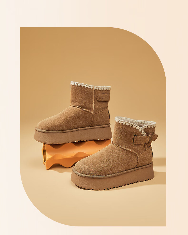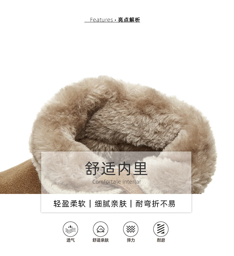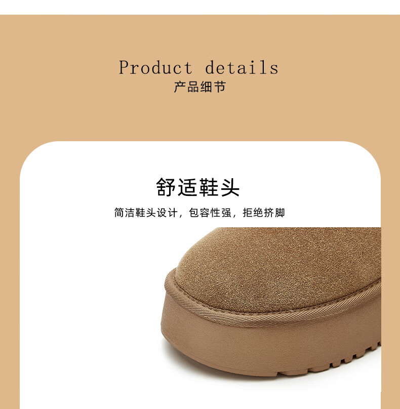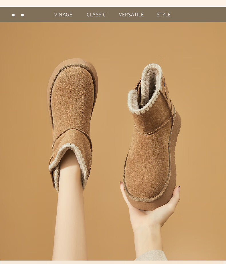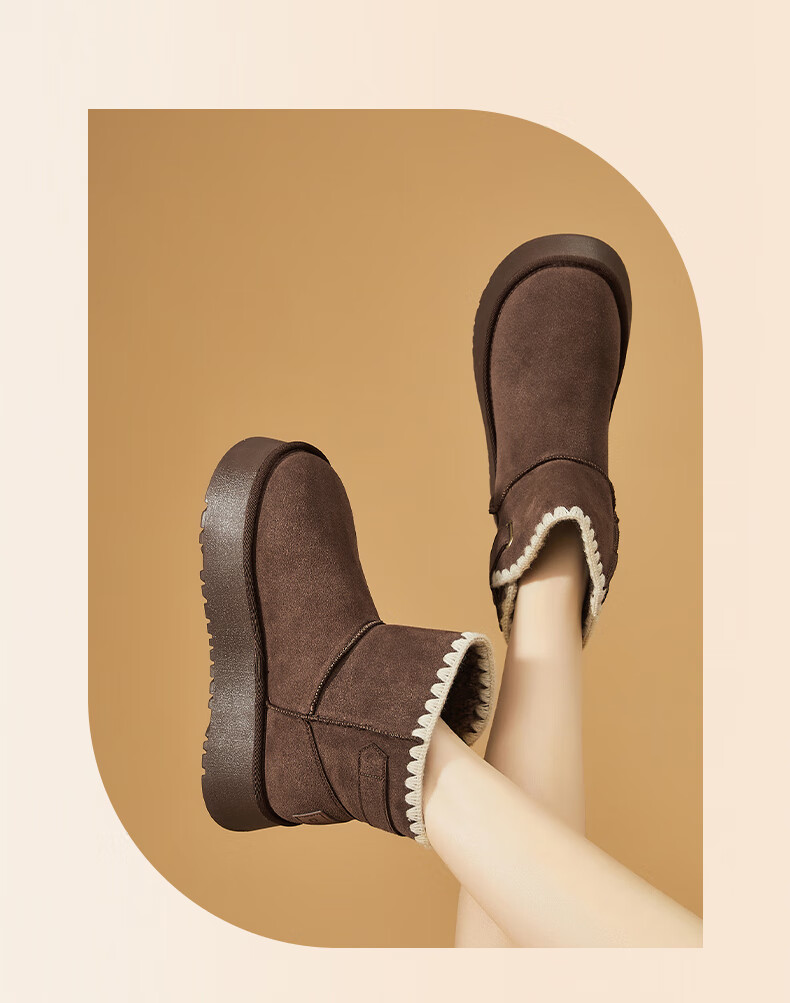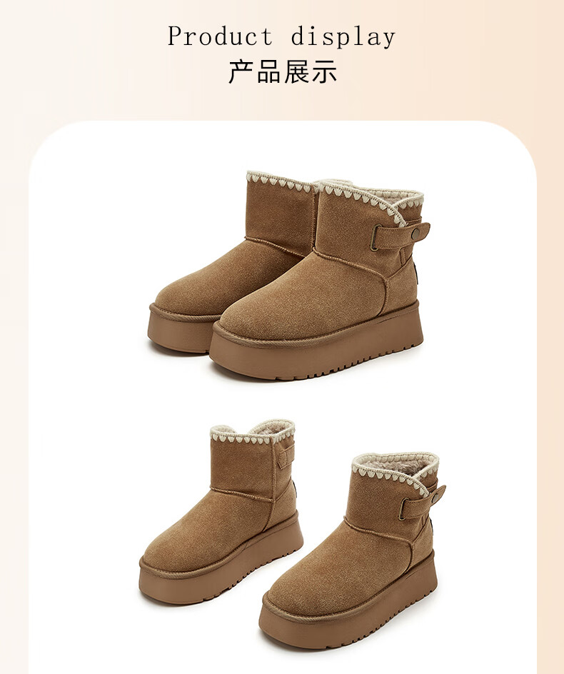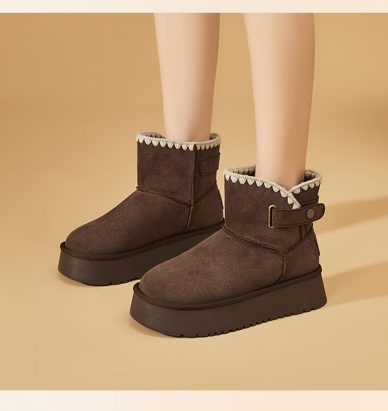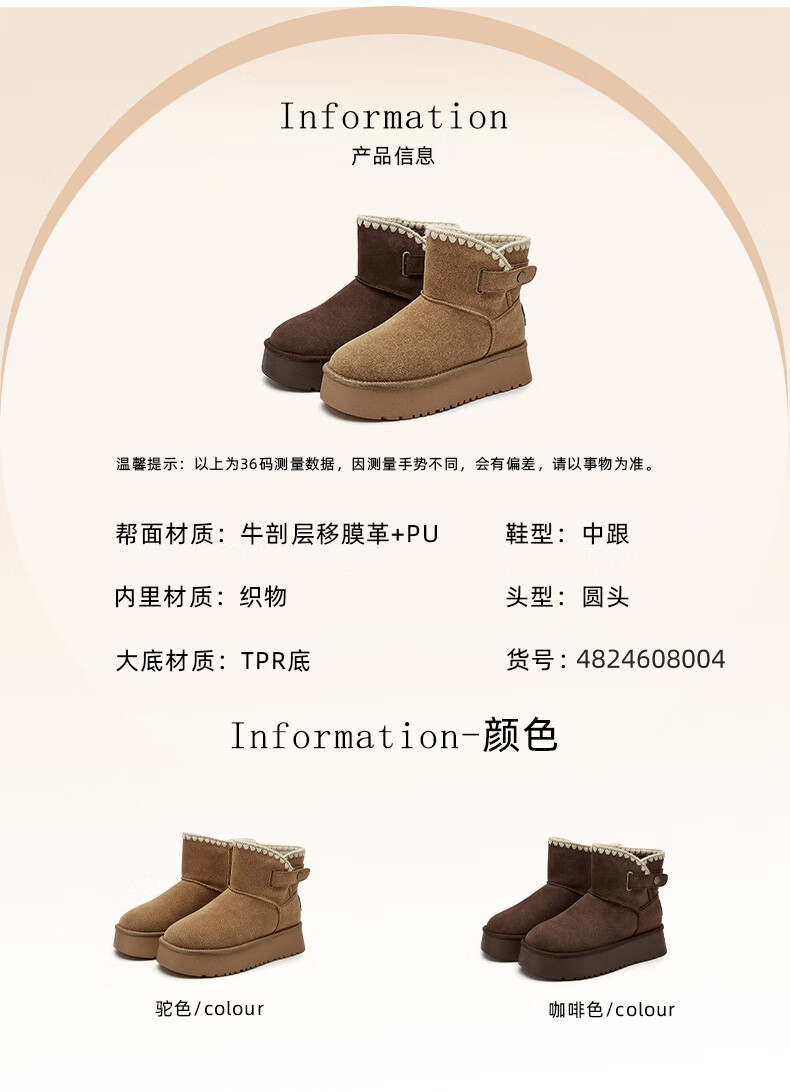 达芙妮雪地靴女冬季2025新款真皮羊毛一体厚底低帮编织防滑加厚短靴 棕色 36
