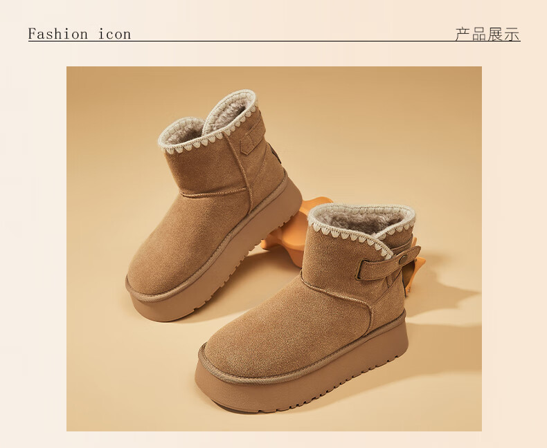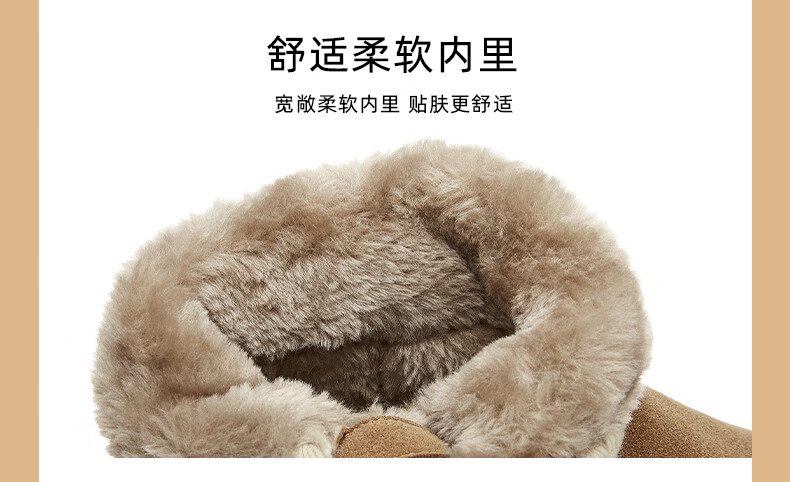 意尔康女靴雪地靴女士加绒加厚保暖棉鞋舒适百搭东北抗寒中筒靴子 土黄色 加绒 38
