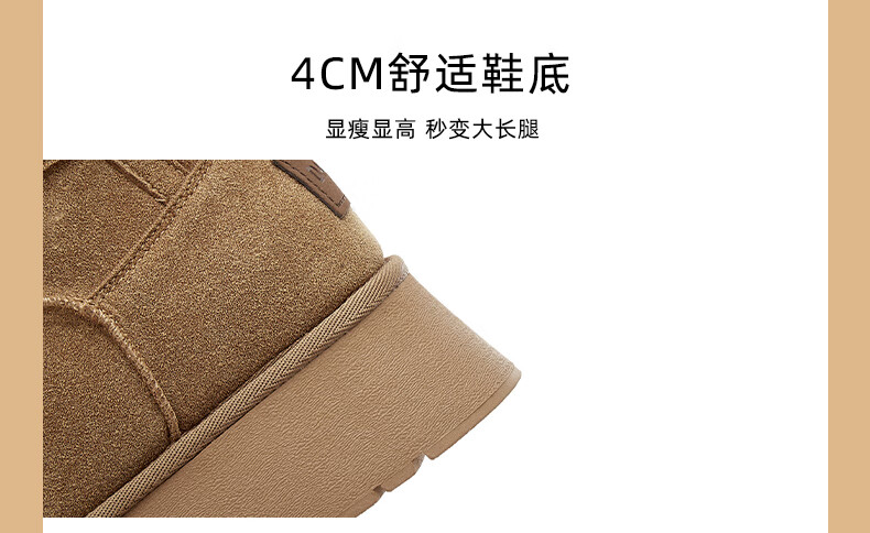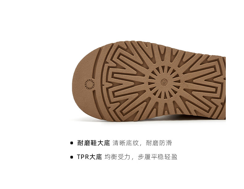 UGG秋季新款女士舒适时尚保暖平底拼接休闲束带短筒雪地靴1174575 CHE | 栗色 38