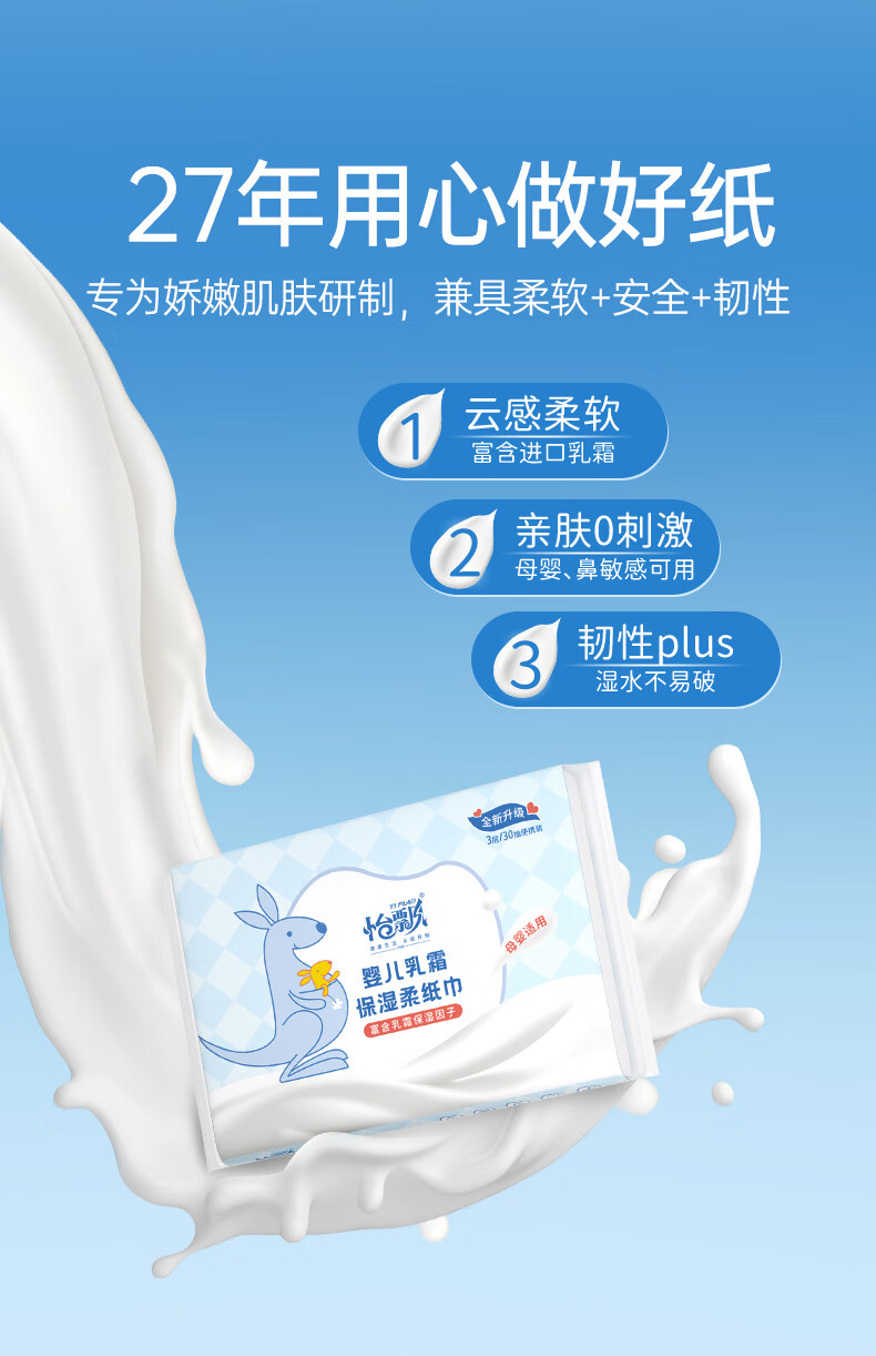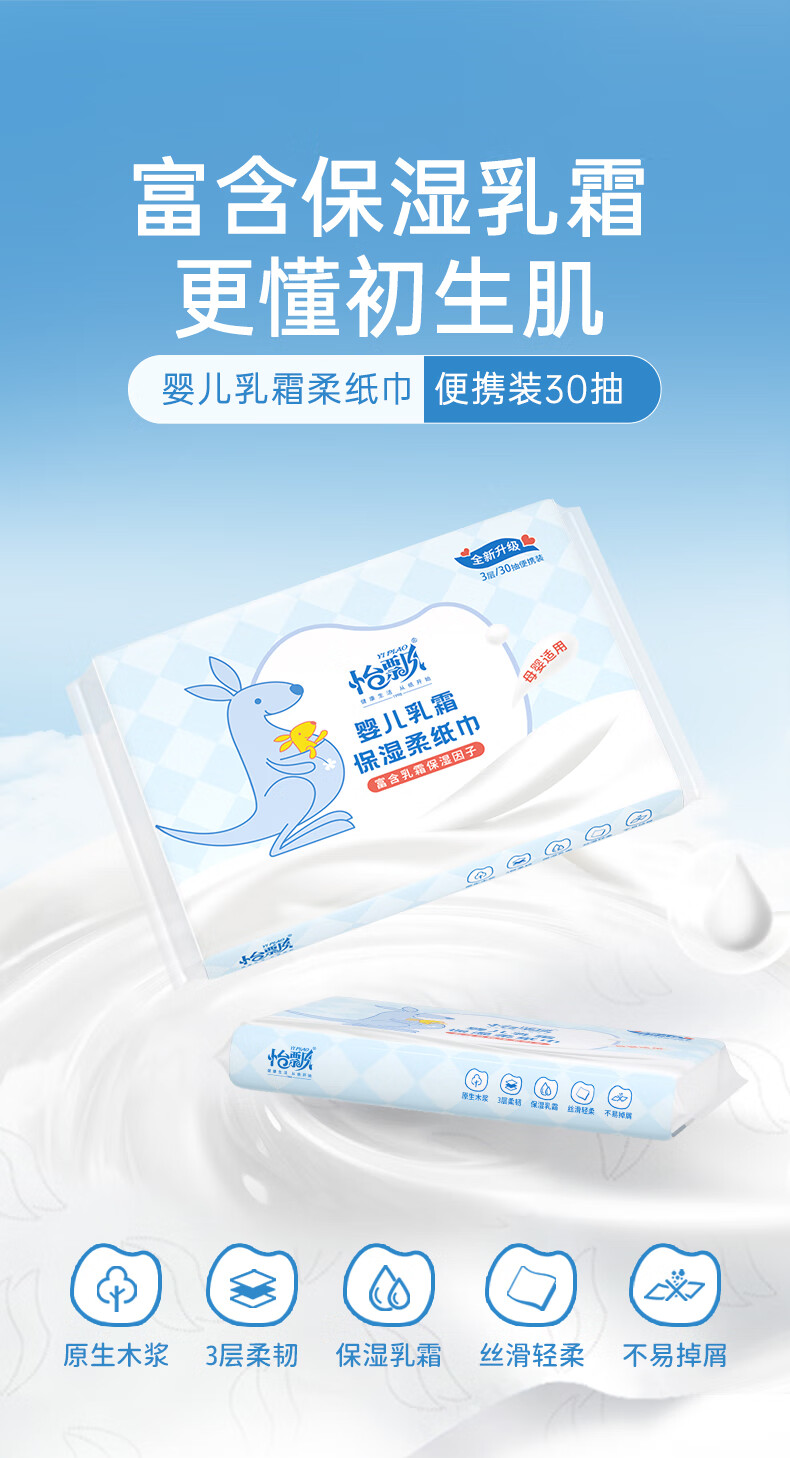 怡飘乳霜纸婴儿纸巾云柔巾柔纸巾婴儿抽纸保湿纸鼻炎擦鼻涕纸 【囤货装】3层 100抽*24包