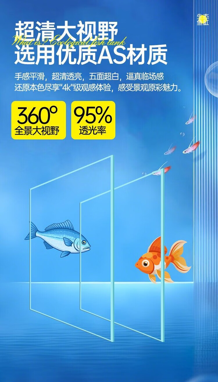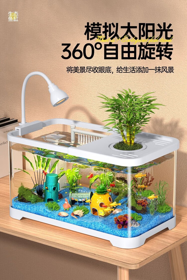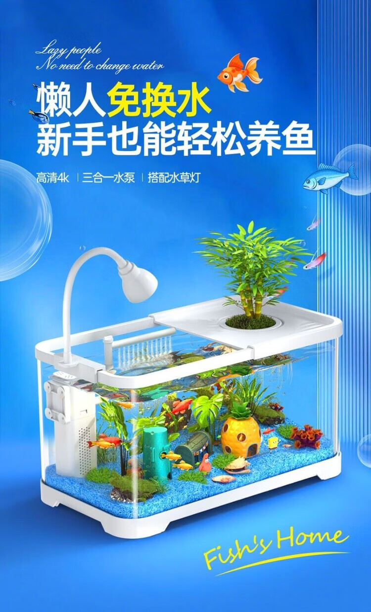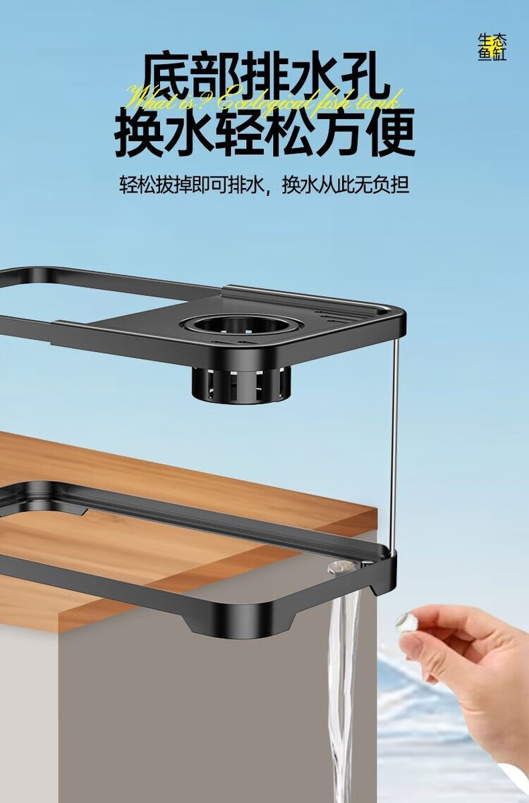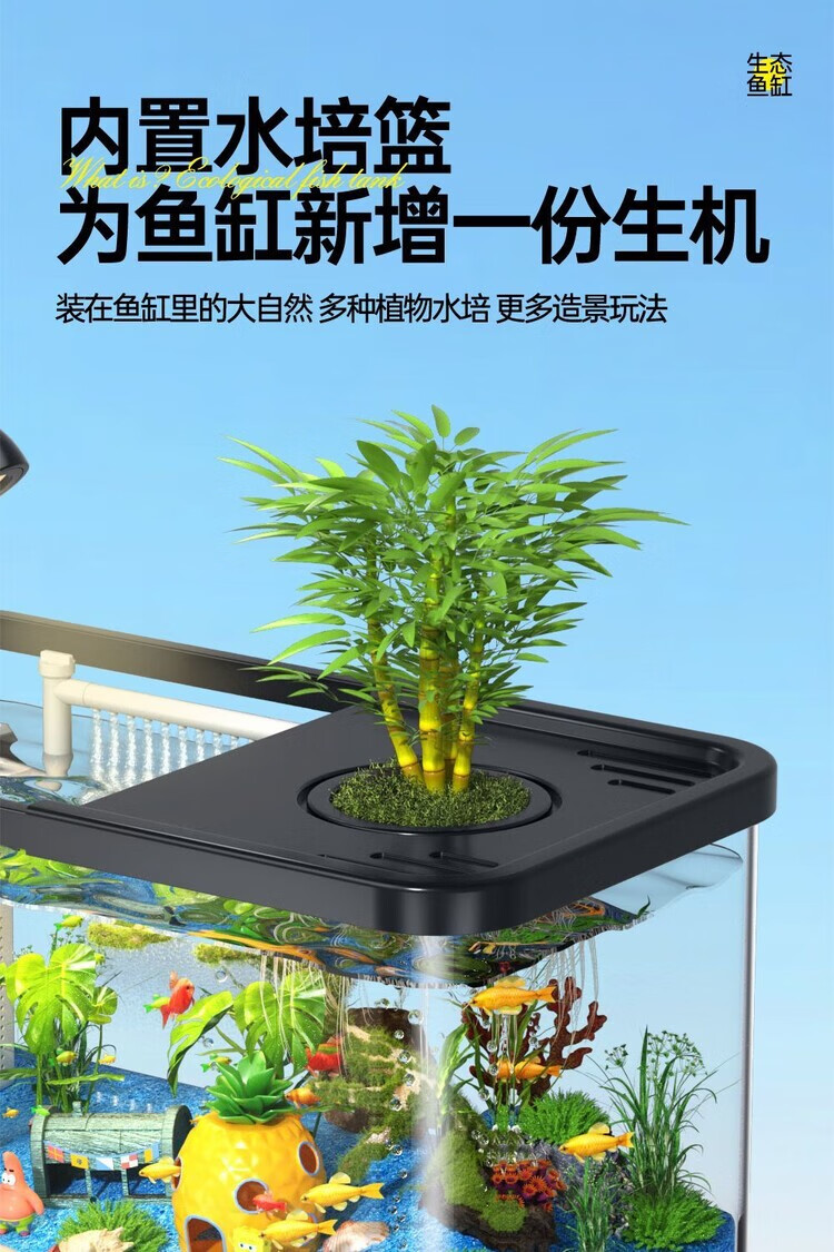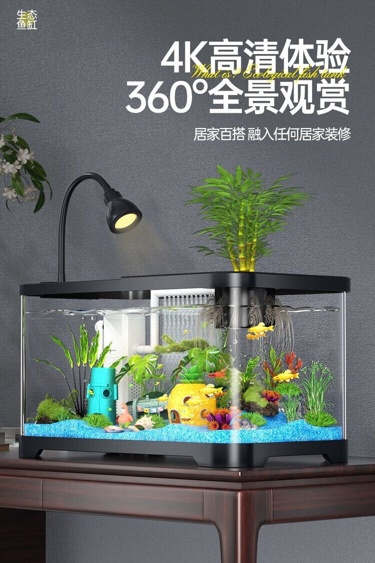 OYKTN鱼缸水族箱桌面金鱼缸生态懒人造景过滤制氧一体机客厅家用中小型 【磁曜黑】4K高清 懒人鱼缸 【基础套餐】35缸+盖板+水培篮