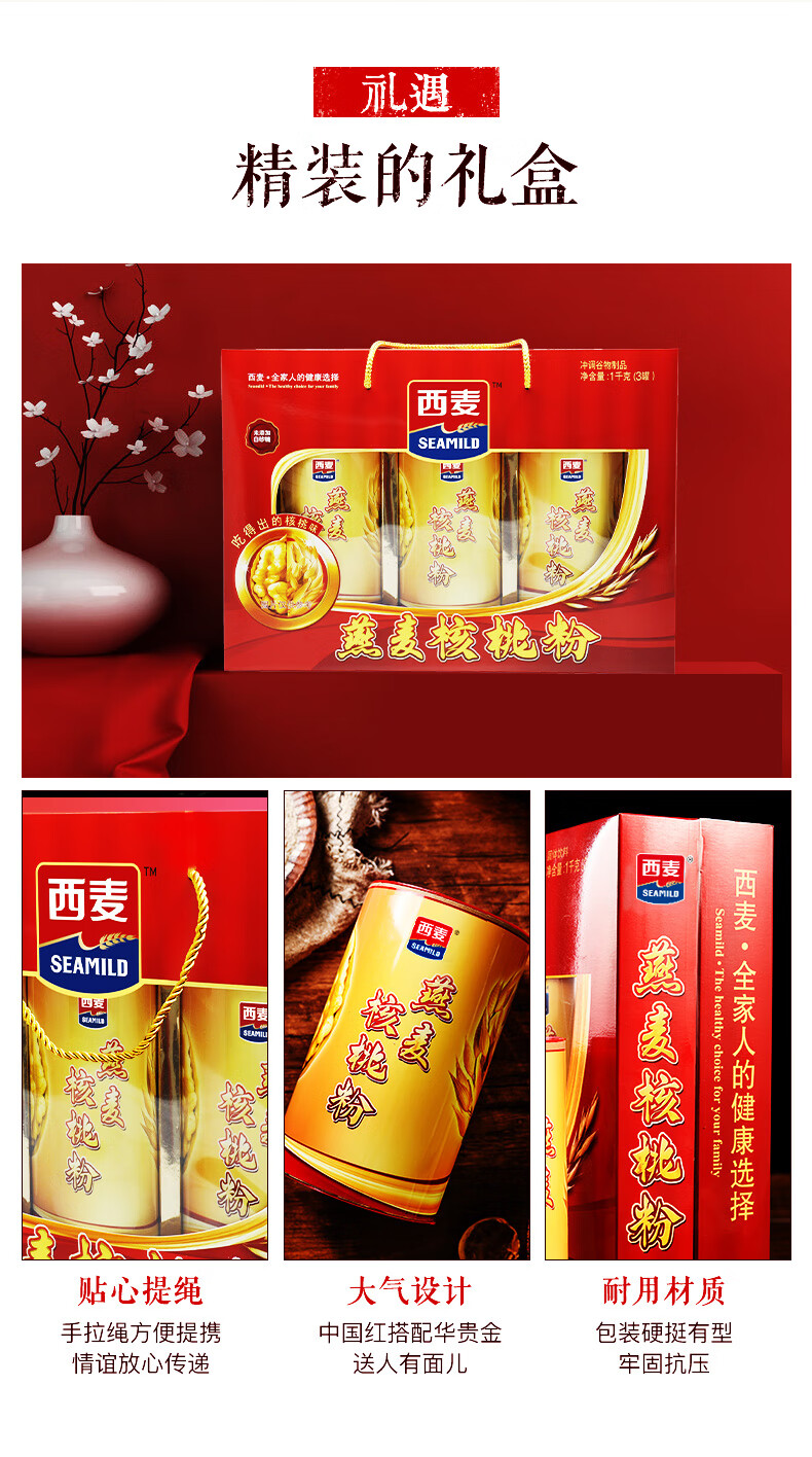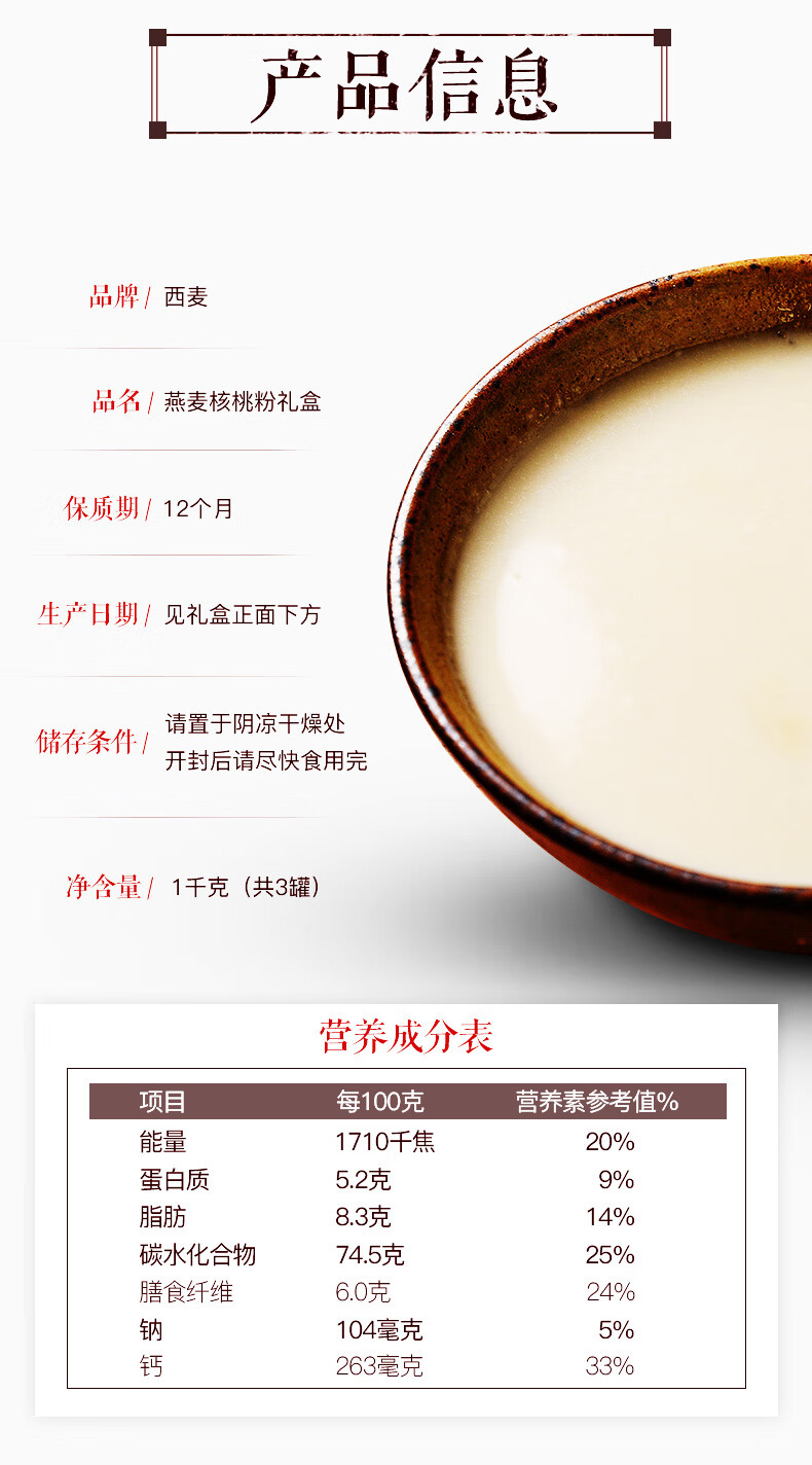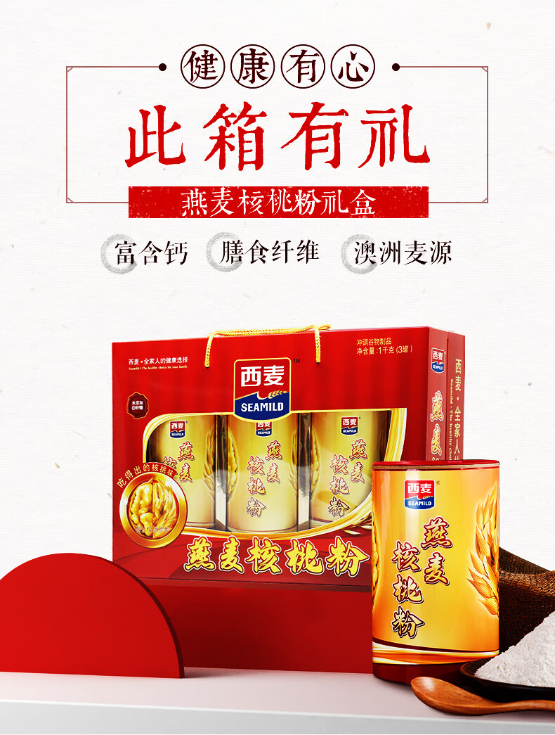 西麦燕麦核桃粉礼盒装1000g 即食冲饮谷物营养早餐代餐送礼佳品 燕麦核桃粉1000g