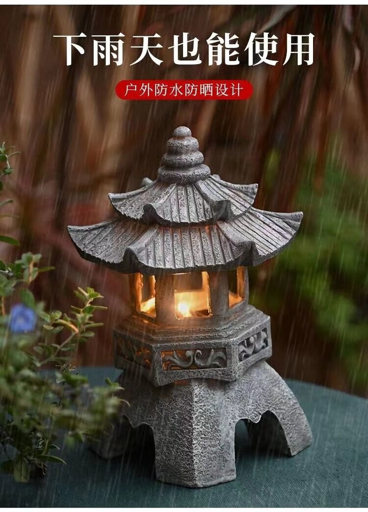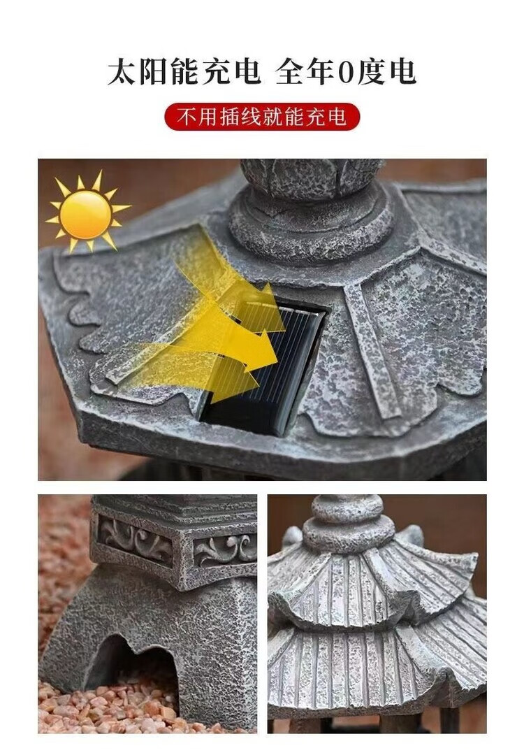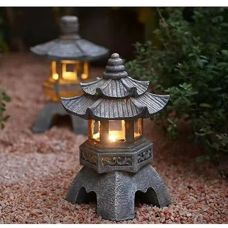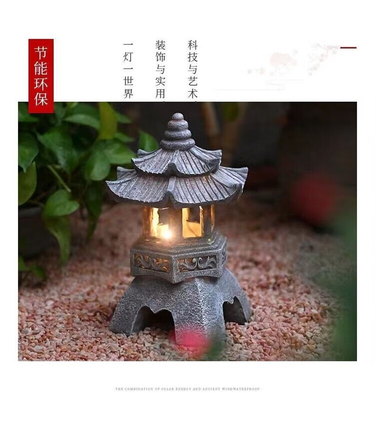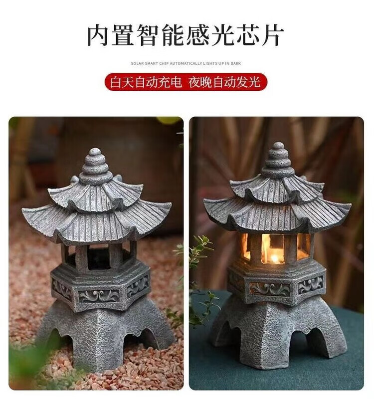 OYKTN中式太阳能庭院灯仿古庭院灯亭子树脂装饰摆件花园庭院灯雕塑户外 尖顶宫灯