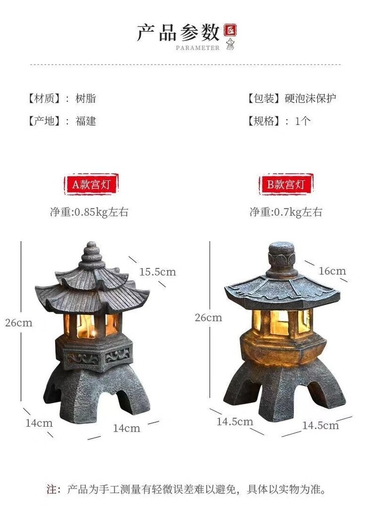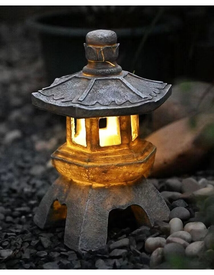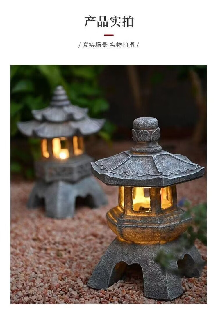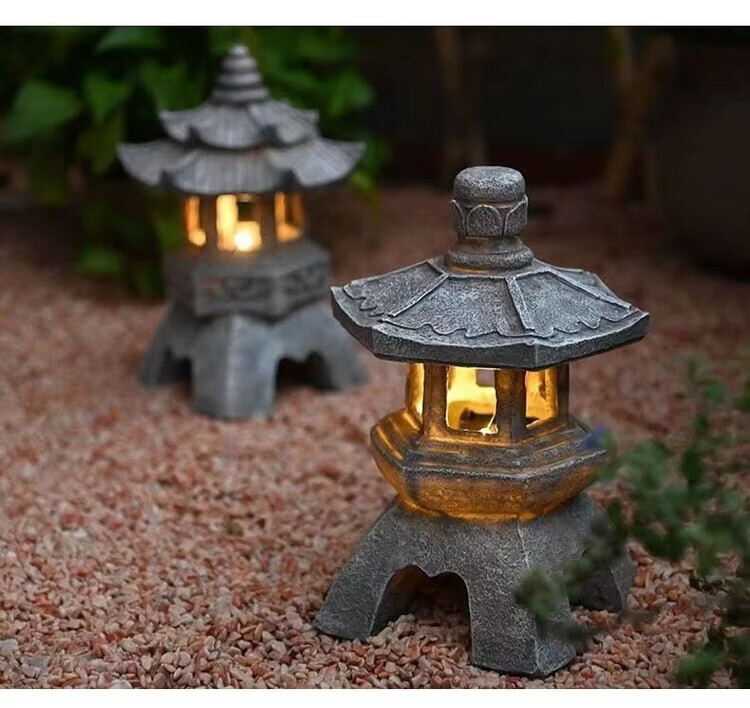 OYKTN中式太阳能庭院灯仿古庭院灯亭子树脂装饰摆件花园庭院灯雕塑户外 尖顶宫灯