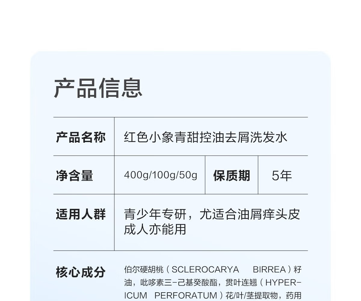 红色小象青少年去屑洗发水深层洁净控油学生女孩男大童洗发乳蓬松清爽止痒 【买1享4】青甜洗发水400g*2