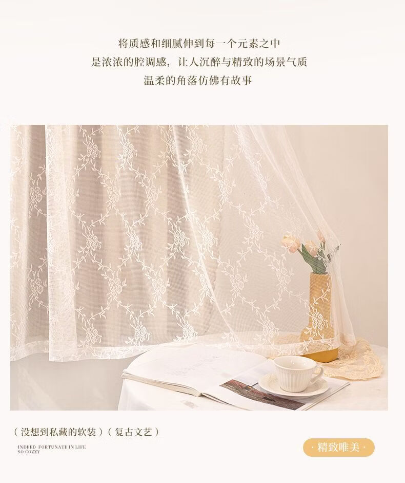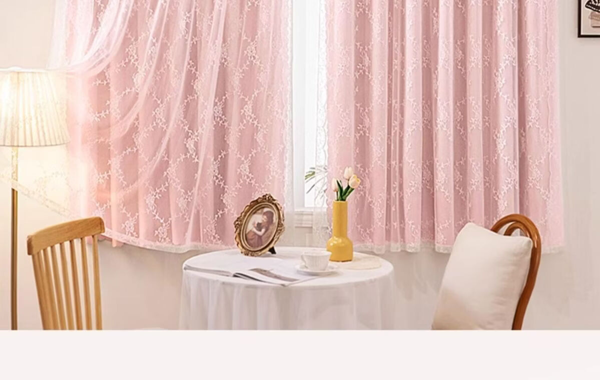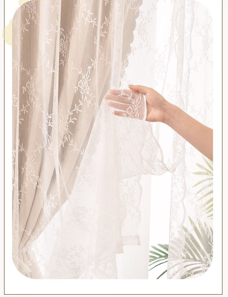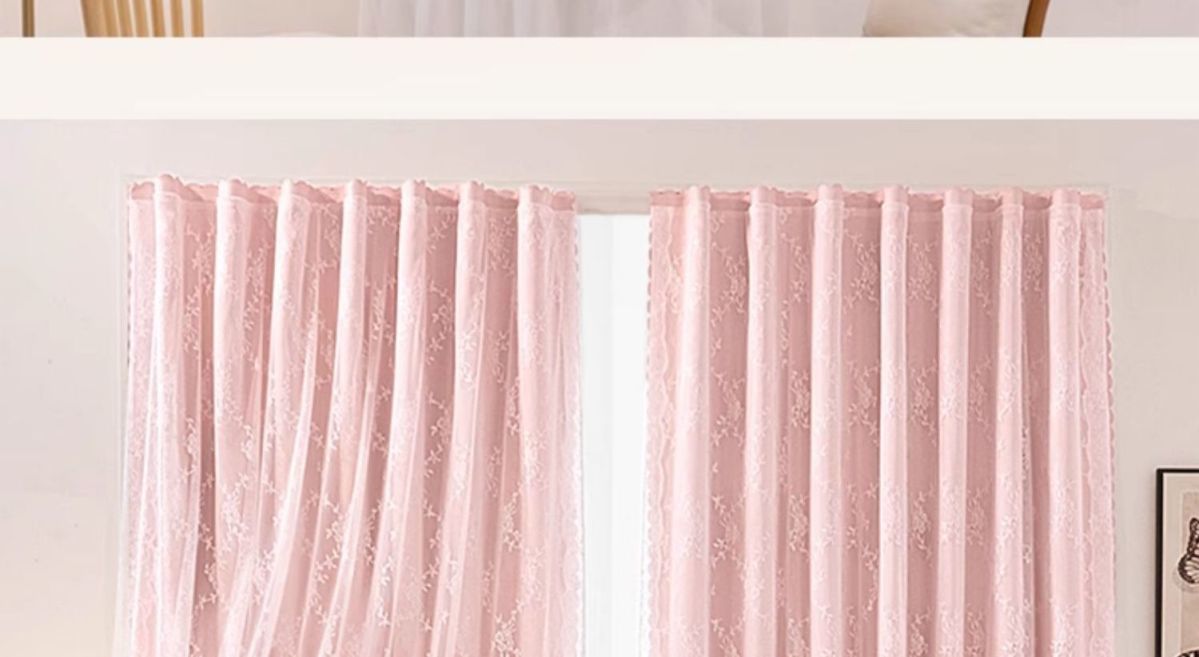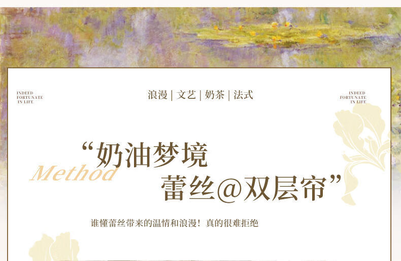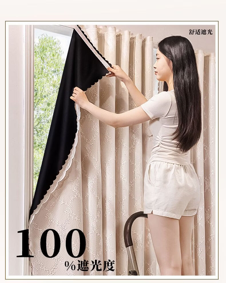 高睿2026新款法式蕾丝双层魔术贴窗帘全遮光飘窗阳台女生窗帘免打孔 芝士奶油【帘纱一体】100%全遮光 宽0.9m*高1.5m【1片】