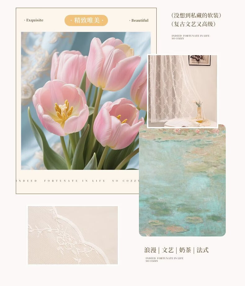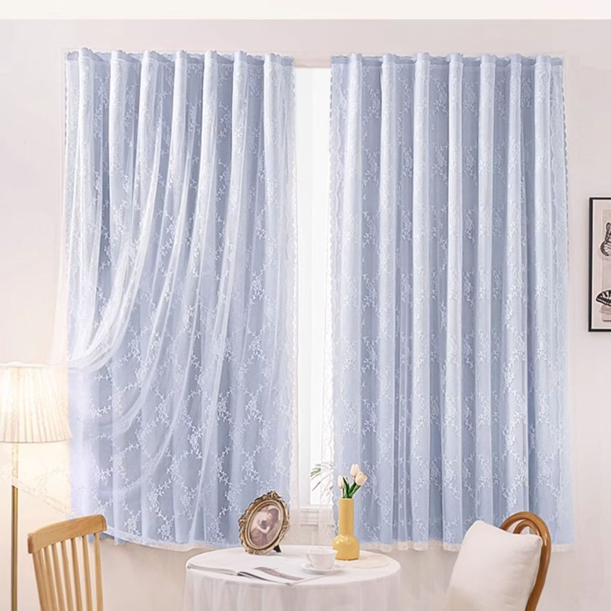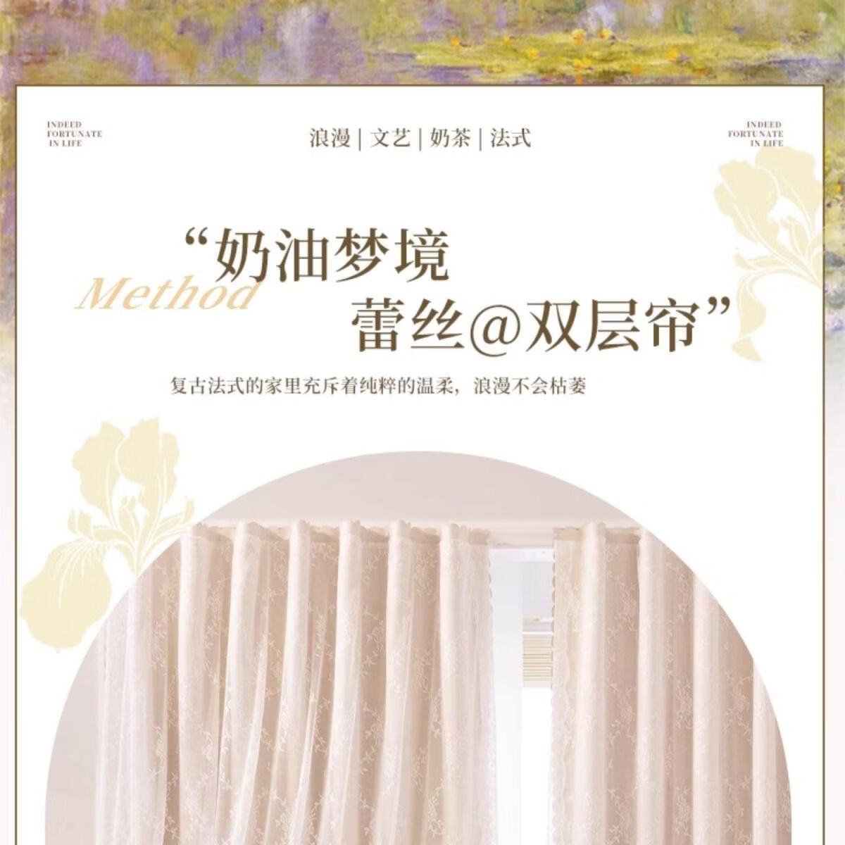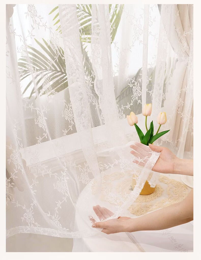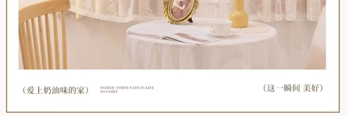 高睿2026新款法式蕾丝双层魔术贴窗帘全遮光飘窗阳台女生窗帘免打孔 芝士奶油【帘纱一体】100%全遮光 宽0.9m*高1.5m【1片】