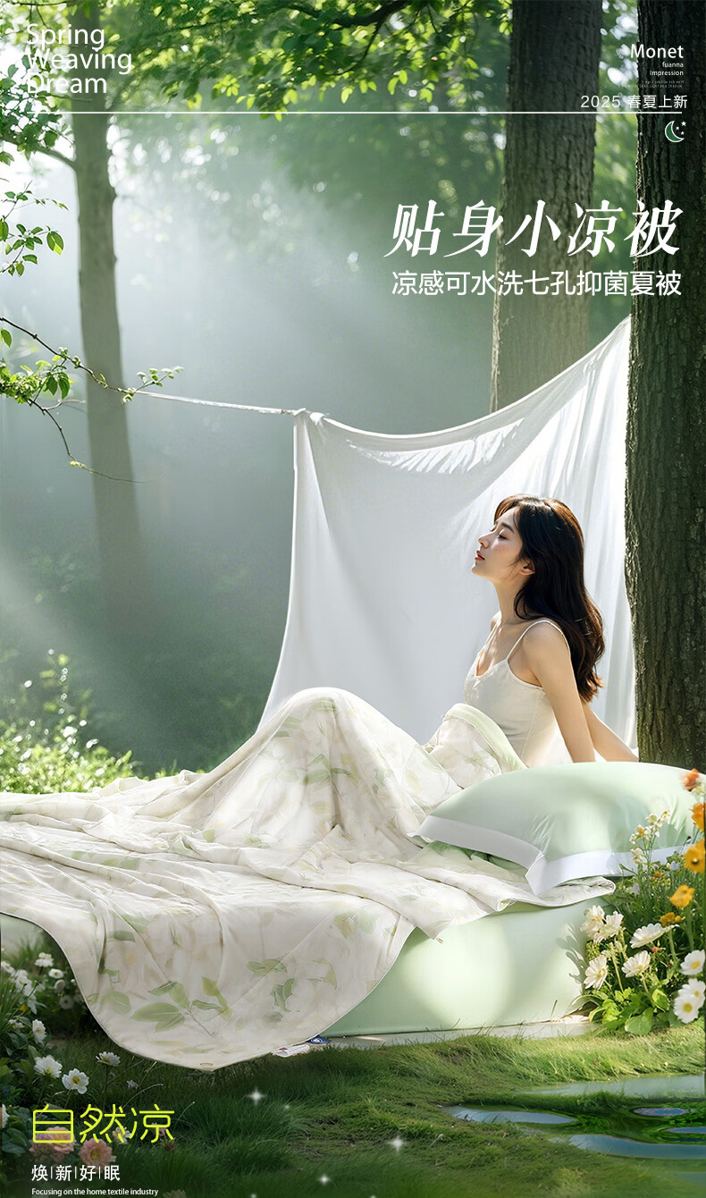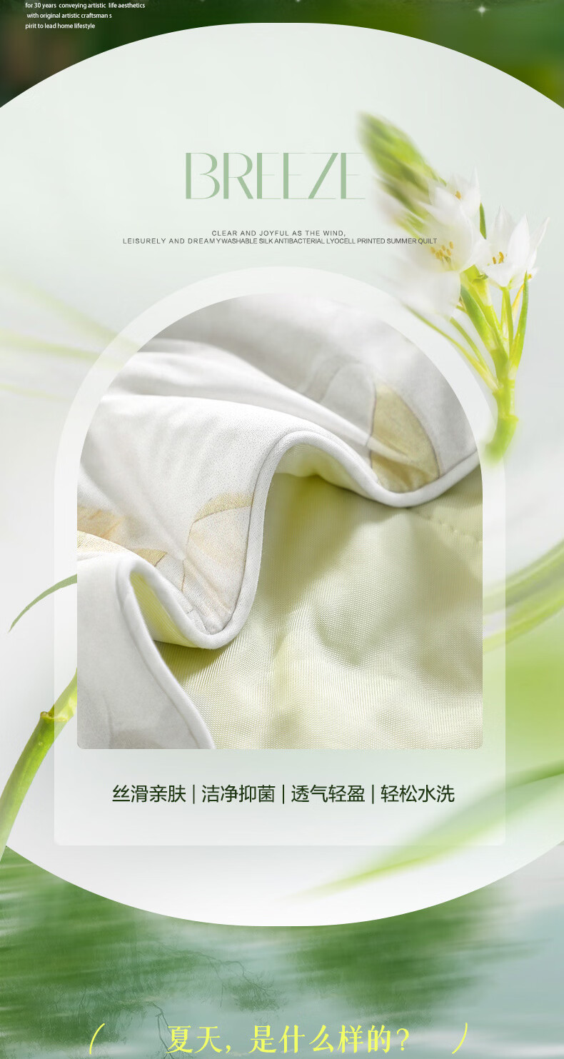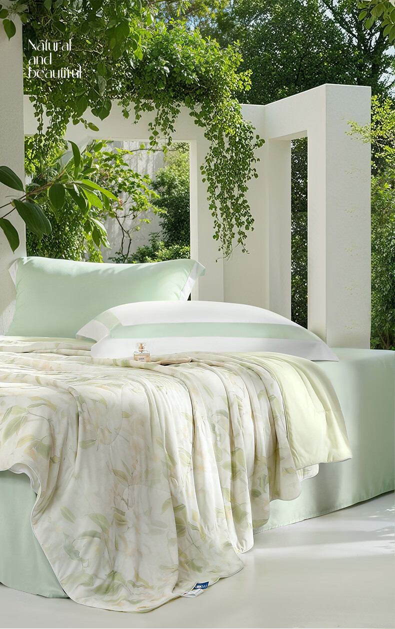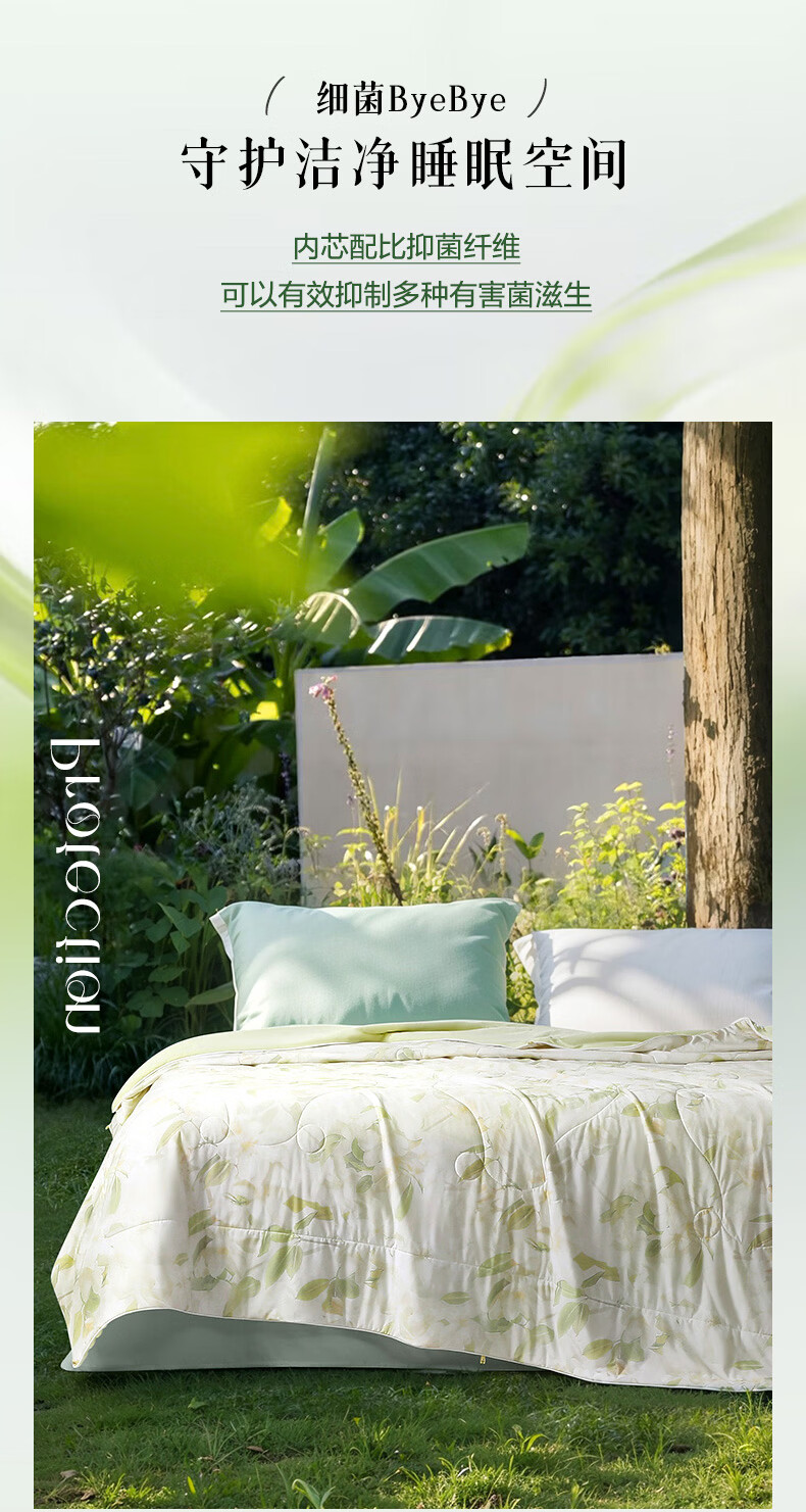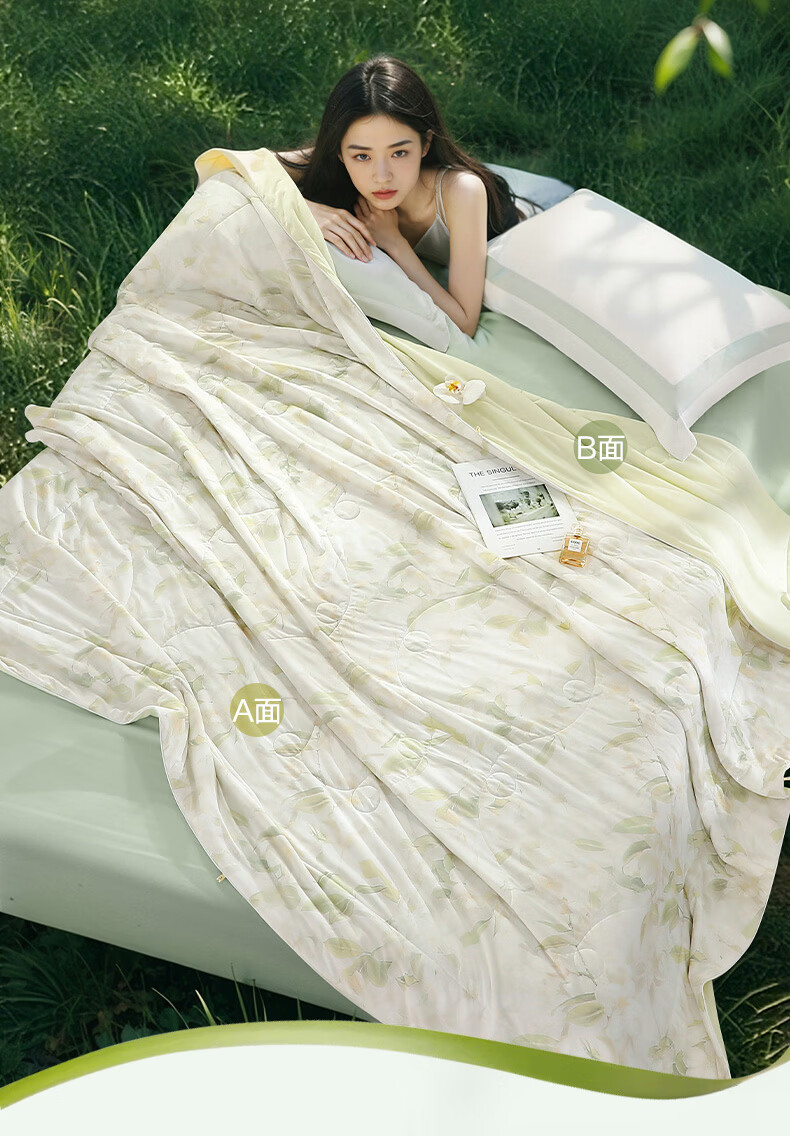 水星家纺被子夏凉被 空调被可机洗凉感天丝棉夏被 A类夏被 植愈舒爽【60S莱赛尔纤维/A类抑菌】绿 200cm*230cm