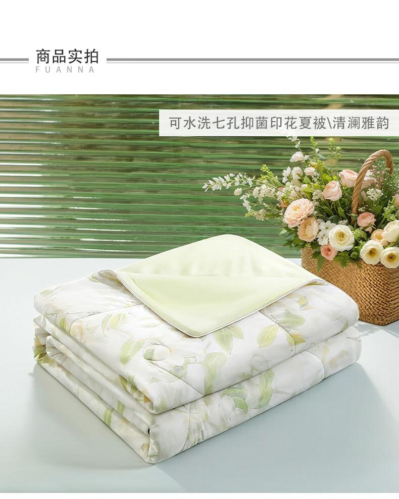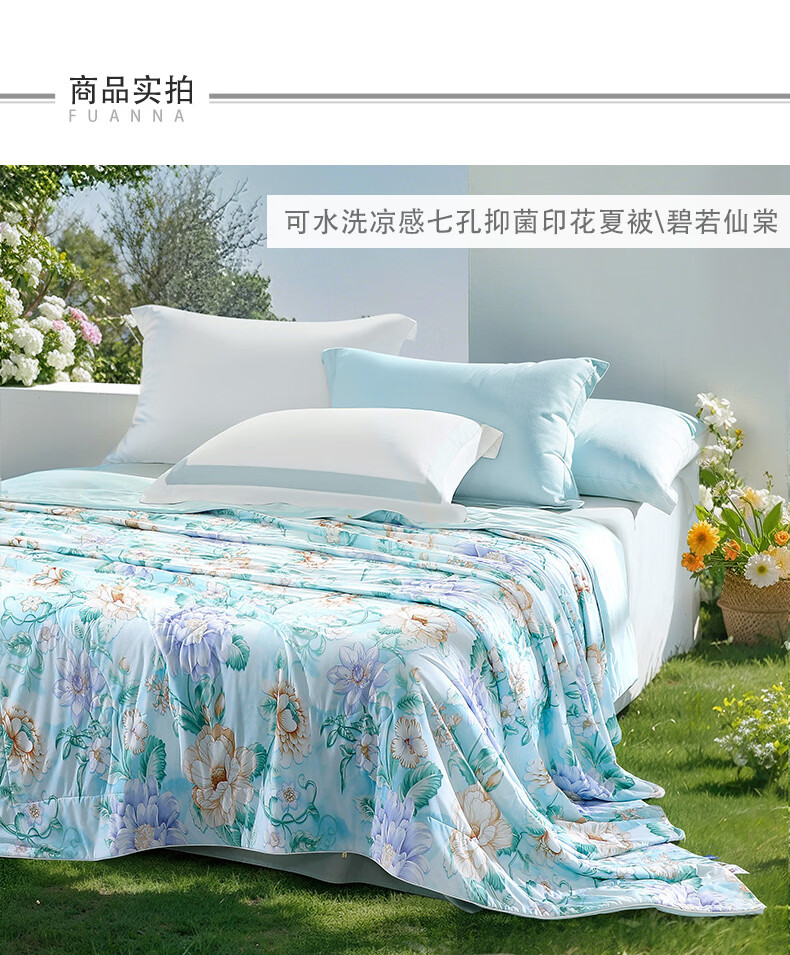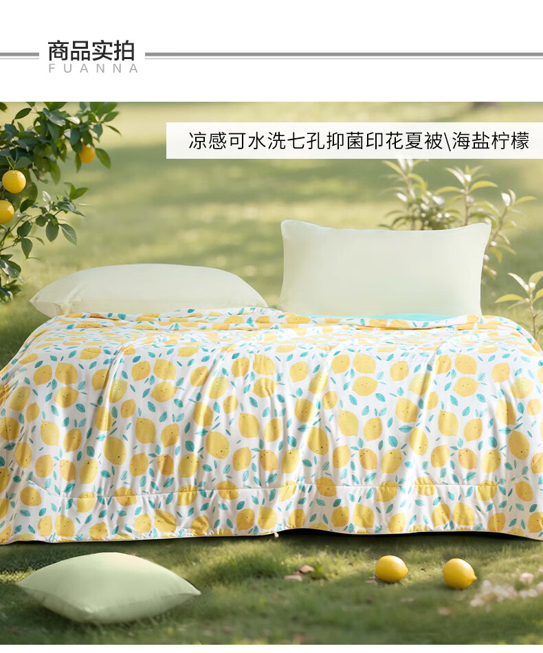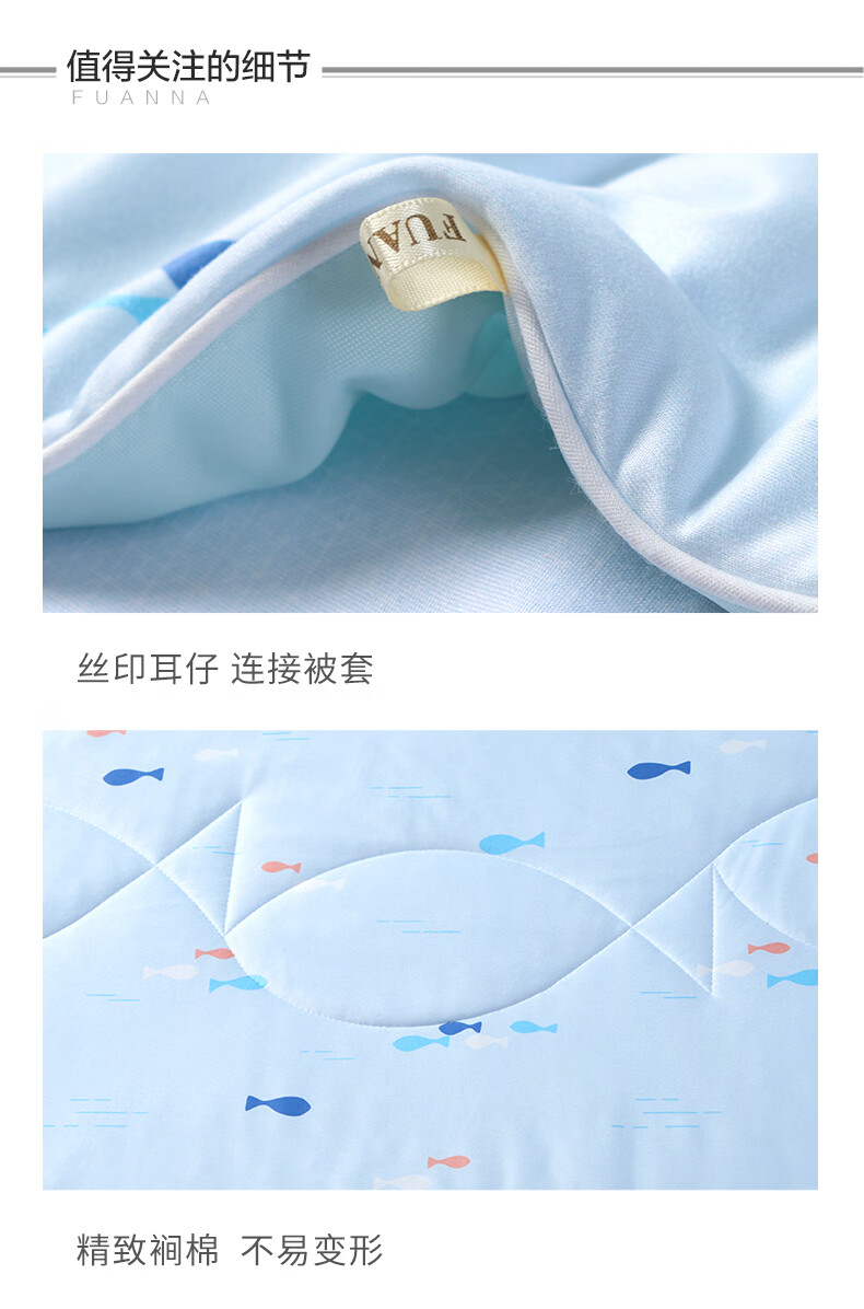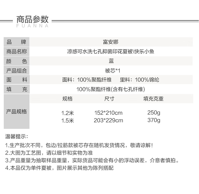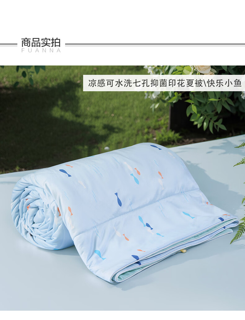 富安娜 凉感被七孔抑菌空调被子 可水洗凉感被夏季家用夏凉被薄被 A类可水洗凉感七孔抑菌-小鱼 1.5米/1.8米床适用 203cm*229cm 夏被