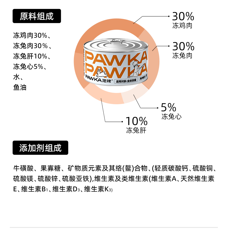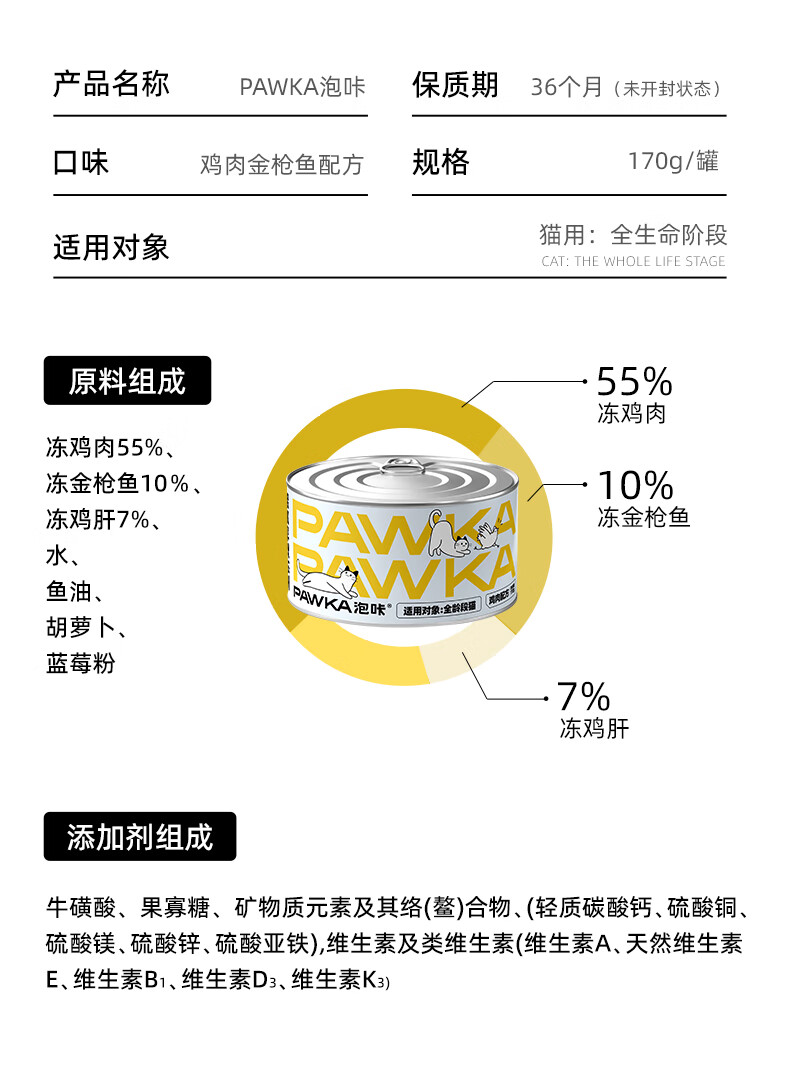 PAWKA泡咔猫罐头主食罐幼成猫湿粮猫咪无谷高蛋白营养罐头170g/罐 鸡鸭牛肉口味 680g /4罐【热卖推荐】