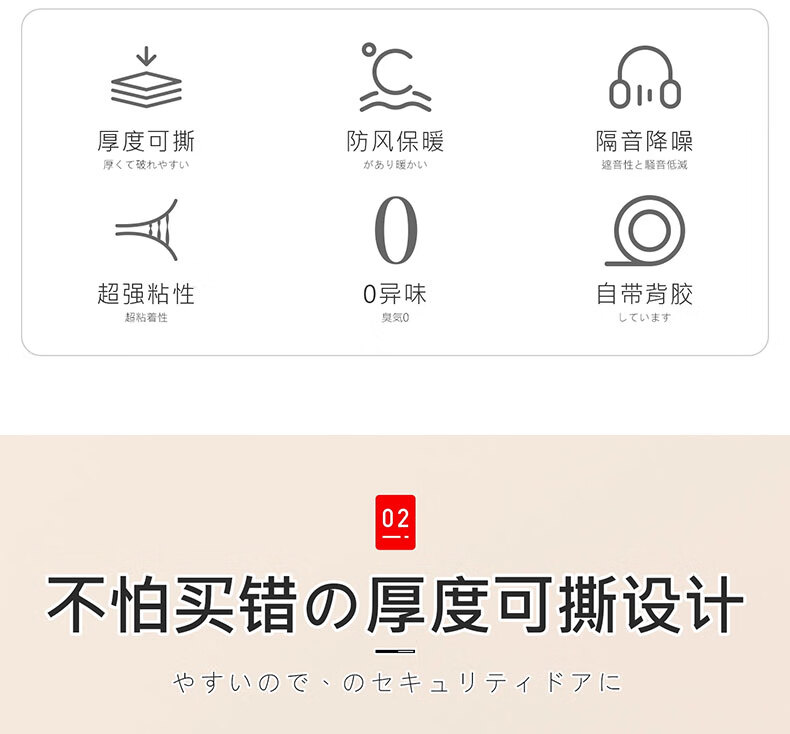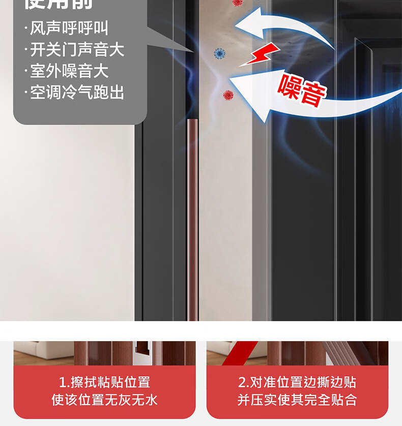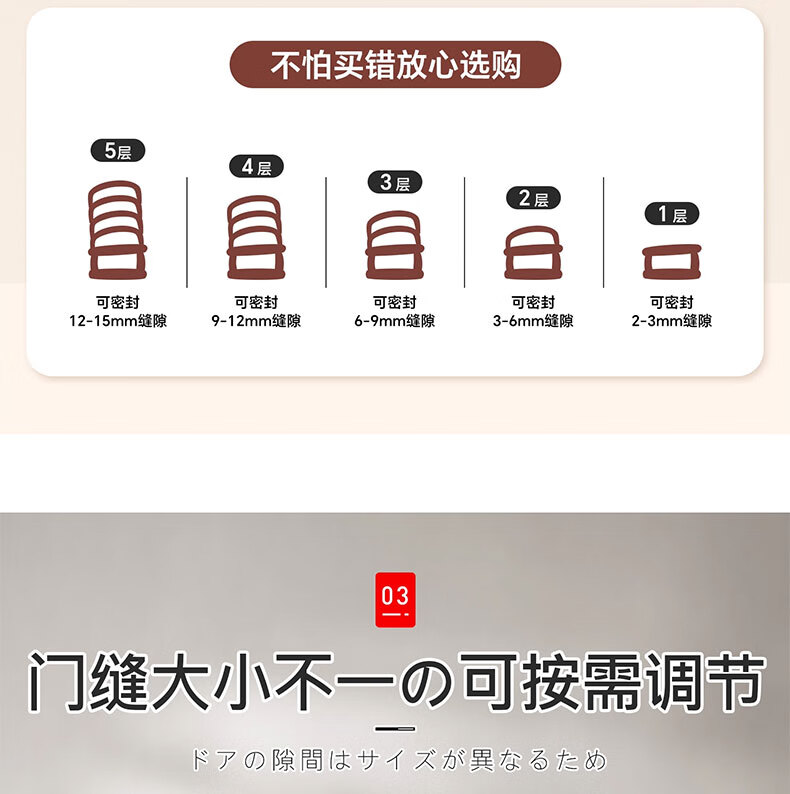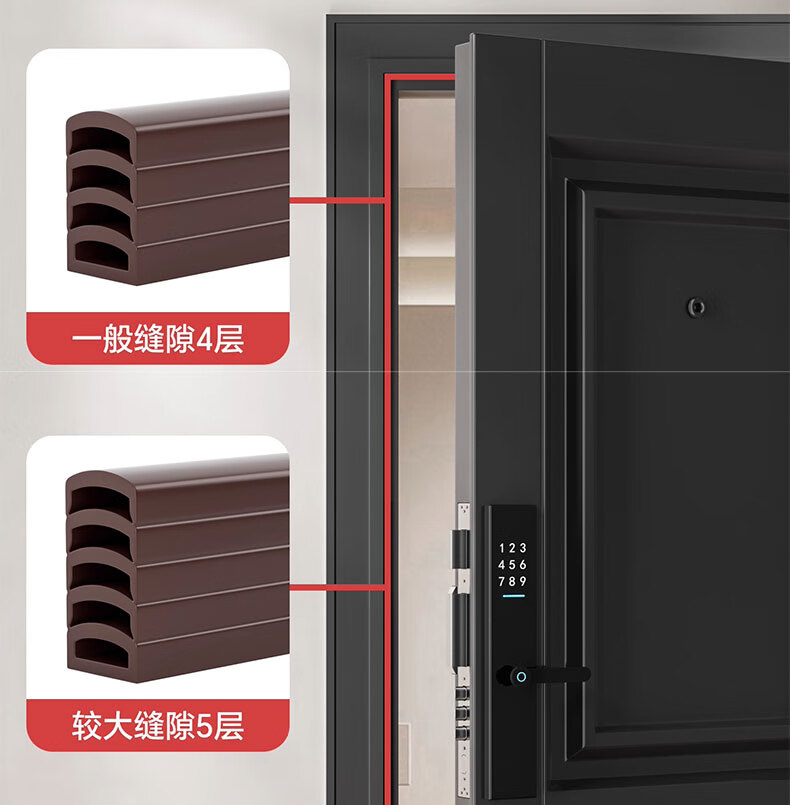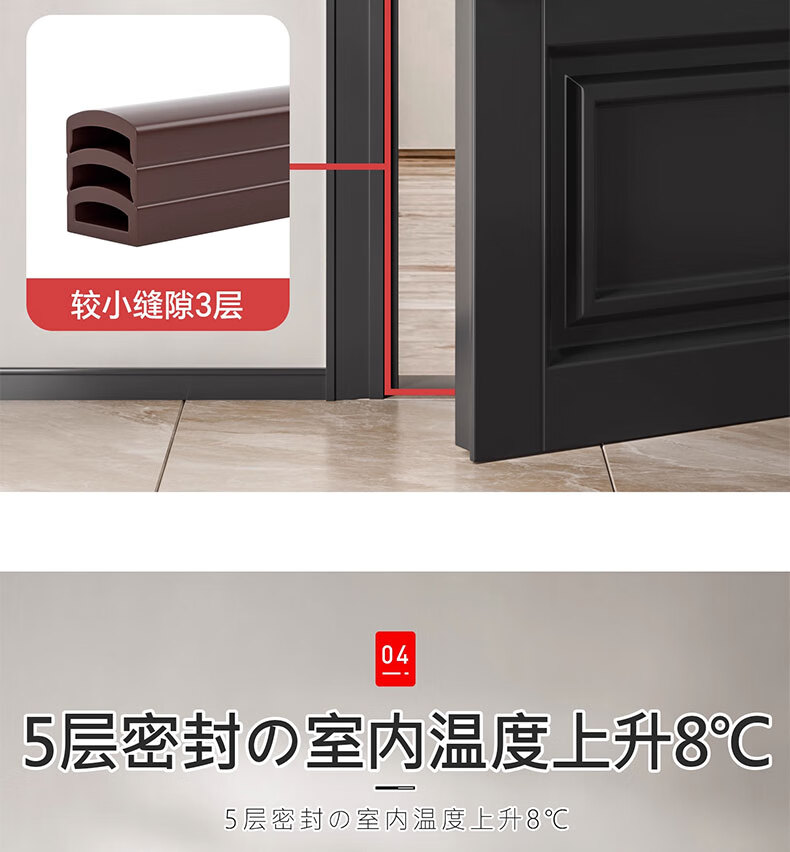 吱凡日本防盗门密封条进户门入户门防风隔音密封胶条老式门缝挡风神器 棕色6米【1-15mm缝隙通用】升级5层可撕12mm