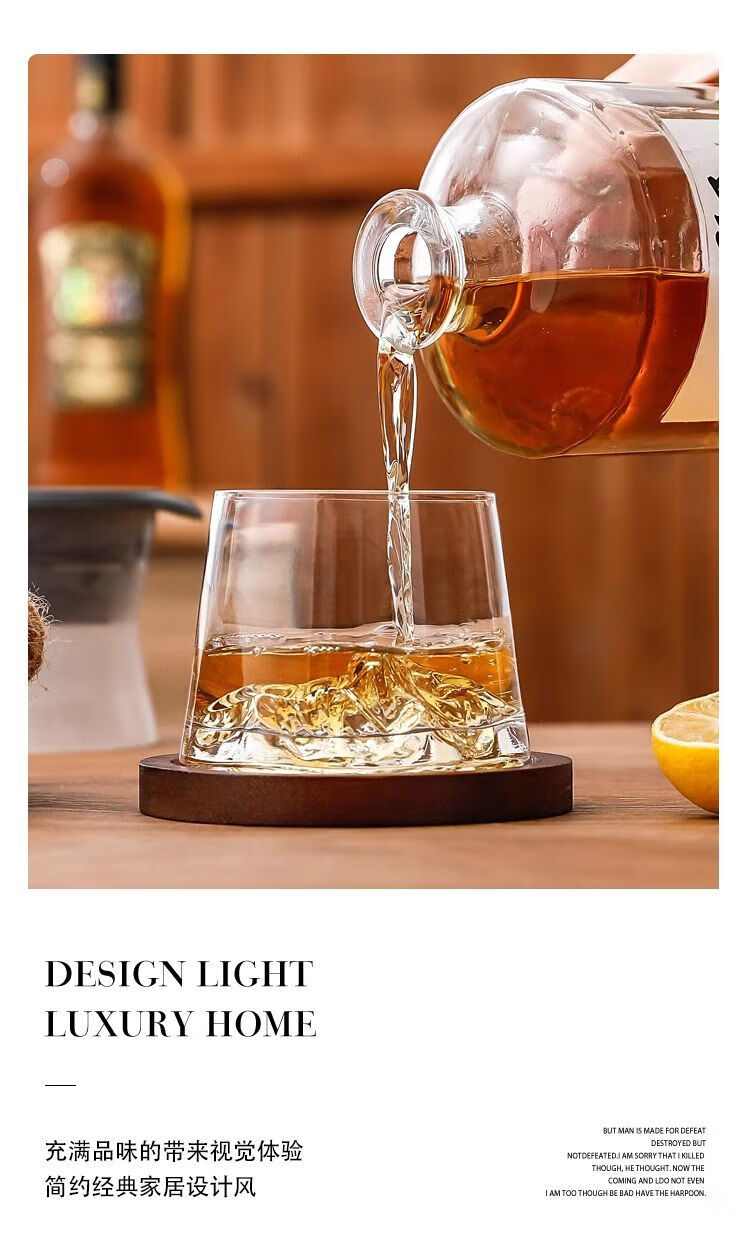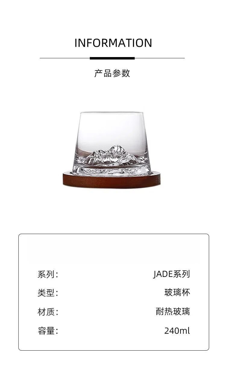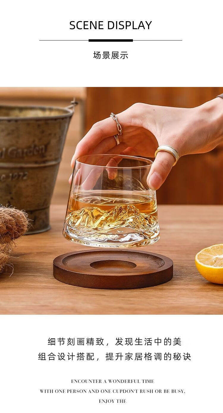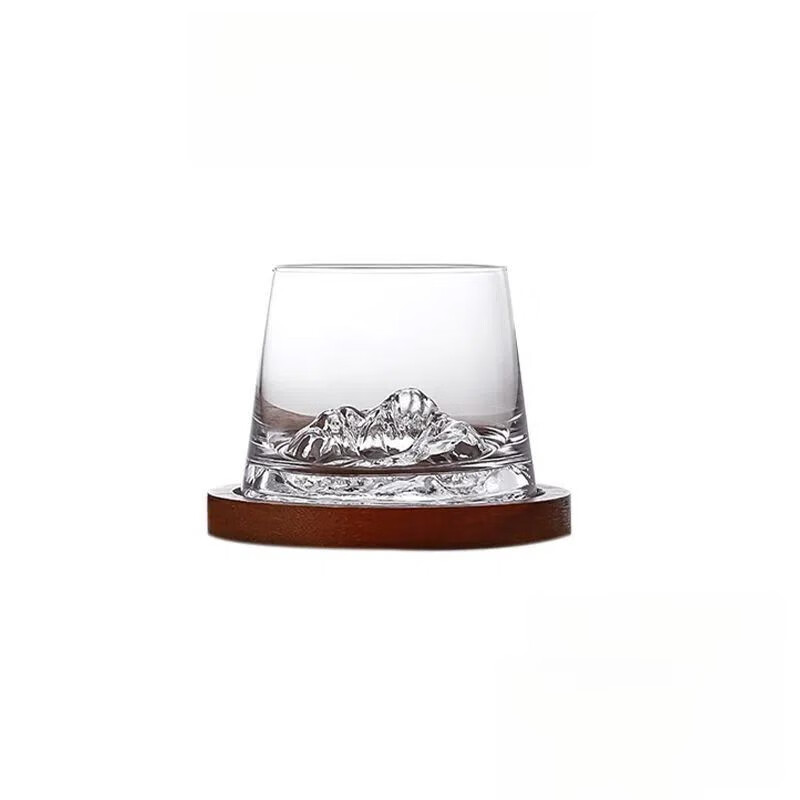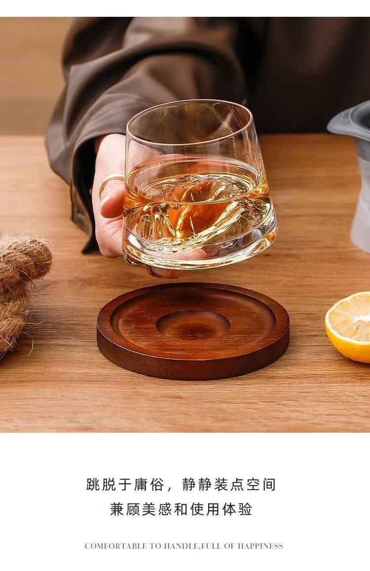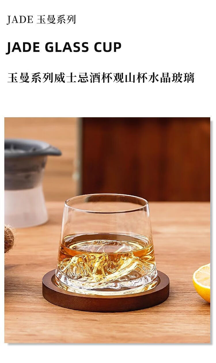 简漾酒杯复古日式家用高颜值威士忌观山杯轻奢水晶玻璃冰雪山红酒杯子 1个装】悠享生活 玉曼丨富士山【杯+杯垫】