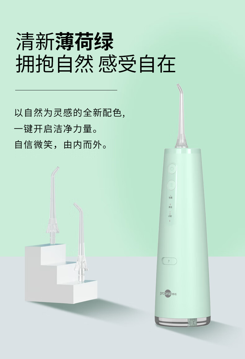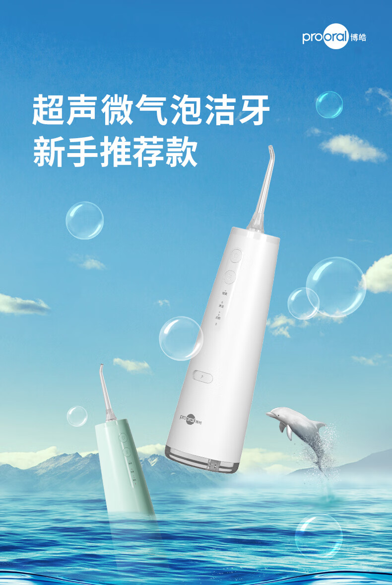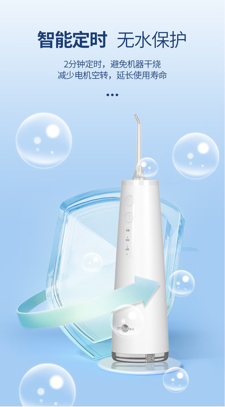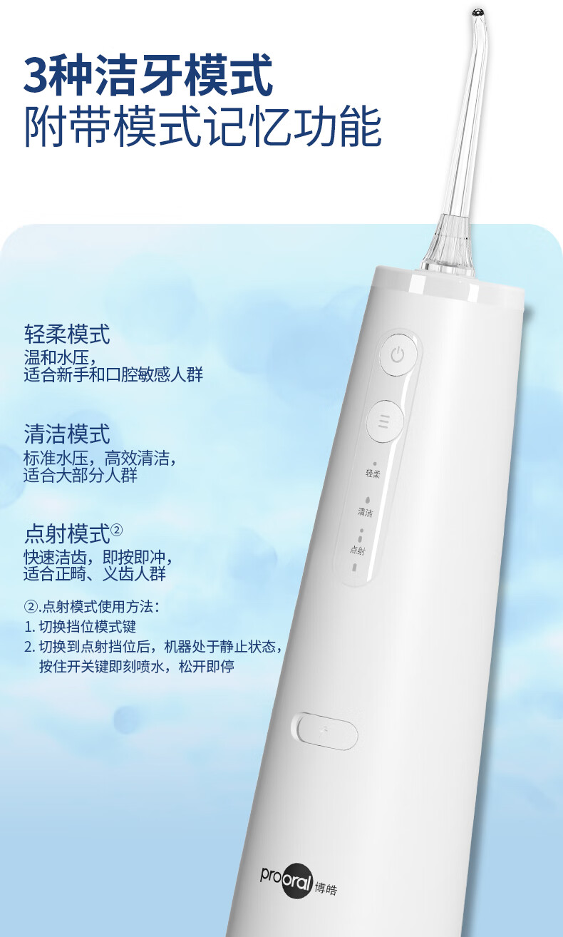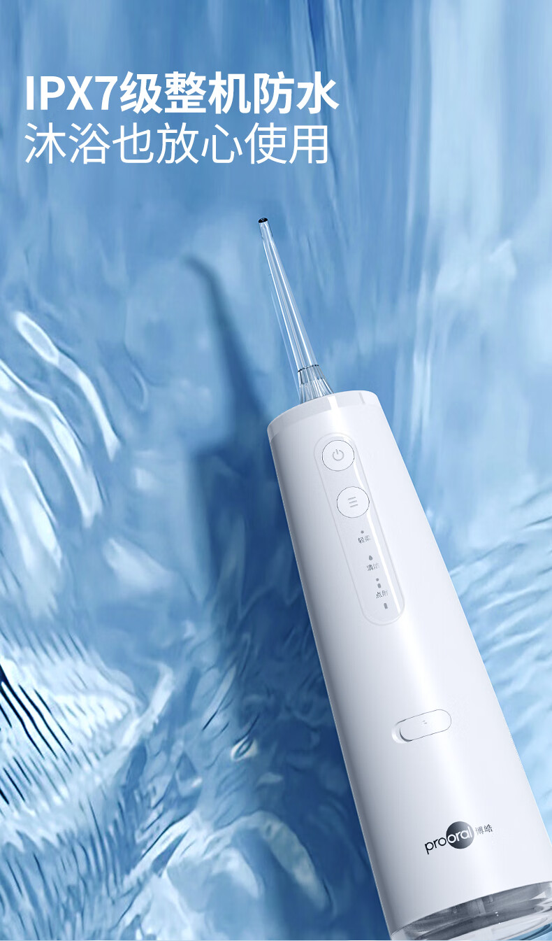 博皓(prooral)电动冲牙器便携式洗牙器家用牙齿冲洗器水牙线正畸专用洁牙器除牙垢清洁器 送父母情侣礼物 F38 白色-标配2支喷嘴