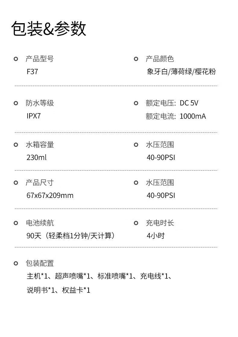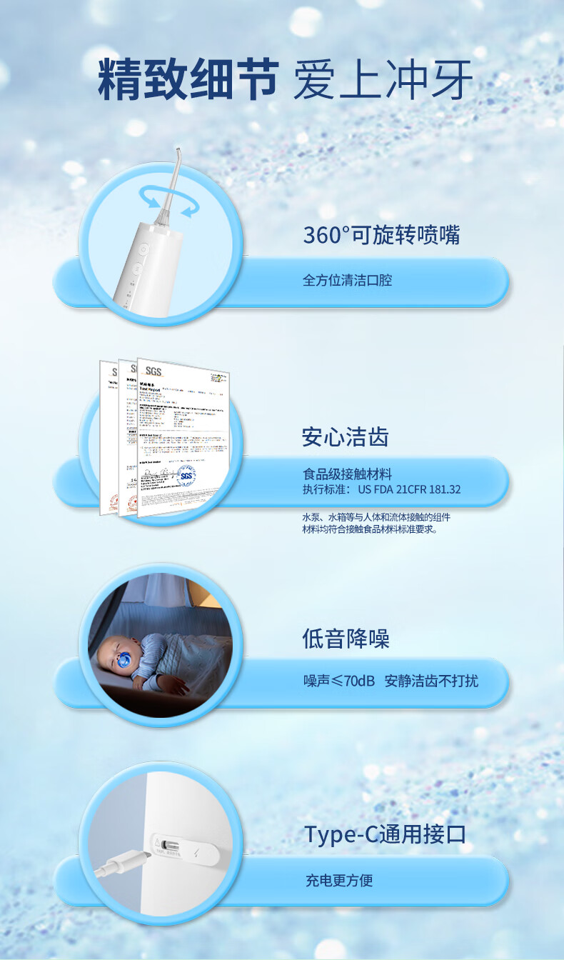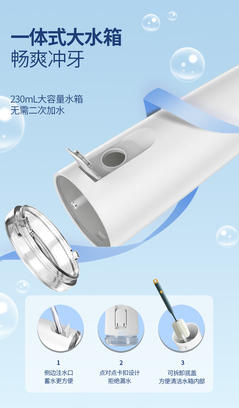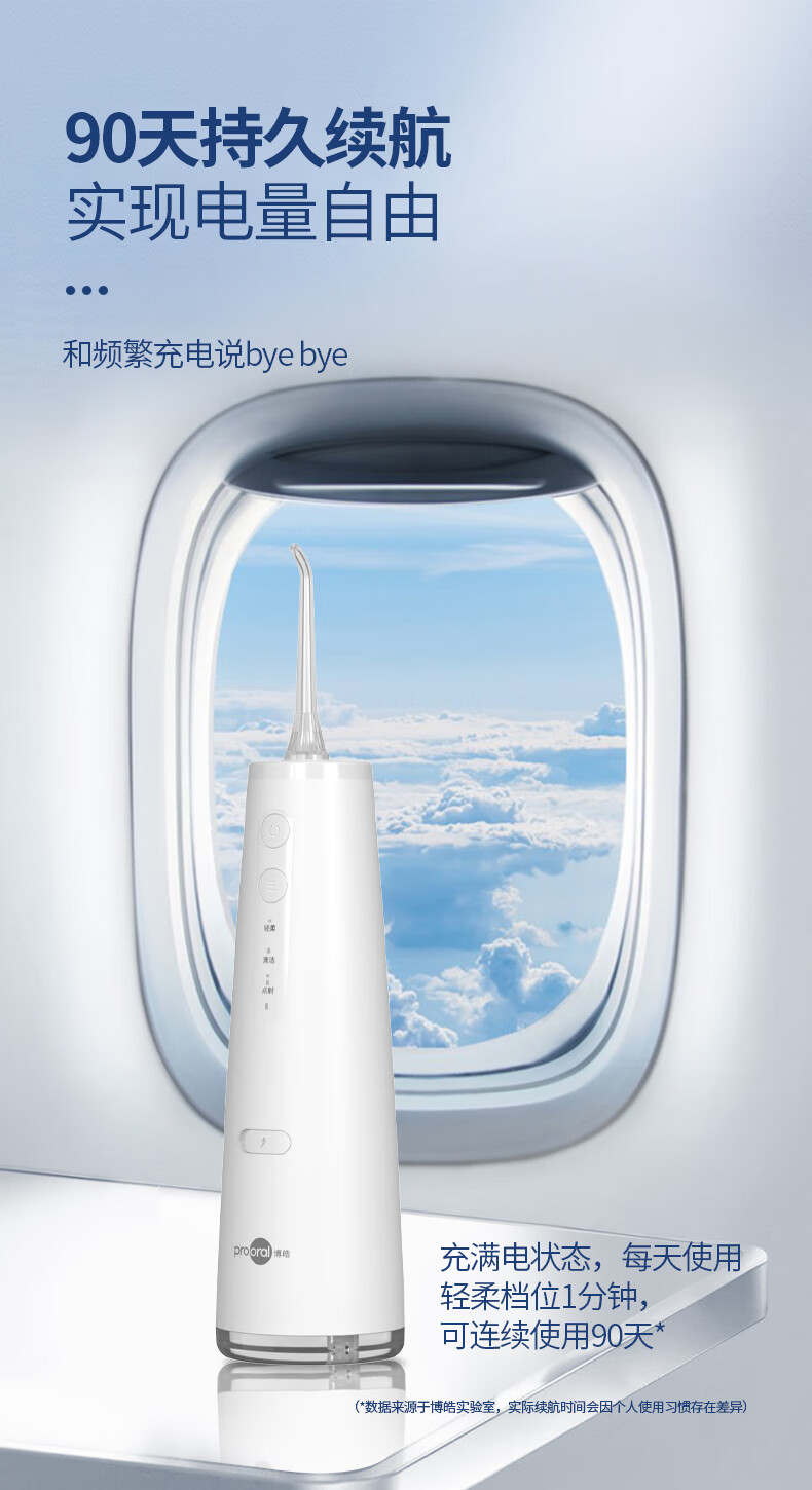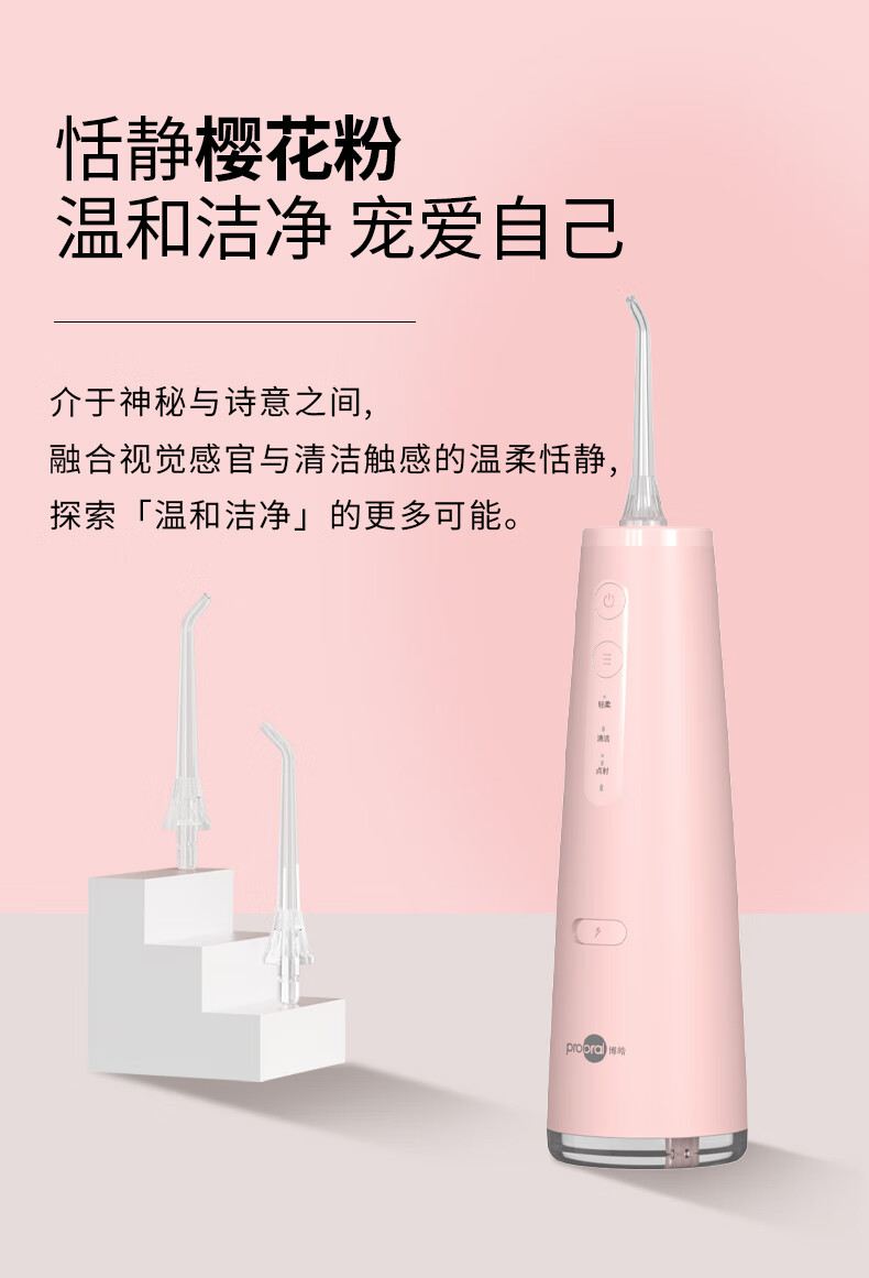 博皓(prooral)电动冲牙器便携式洗牙器家用牙齿冲洗器水牙线正畸专用洁牙器除牙垢清洁器 送父母情侣礼物 F38 白色-标配2支喷嘴