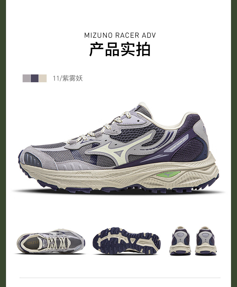 美津浓(MIZUNO)25年新款山系户外登山鞋轻便防滑透气跑步鞋轻野鞋RACER ADV 11/紫雾妖【秋冬版】 41 (265mm)