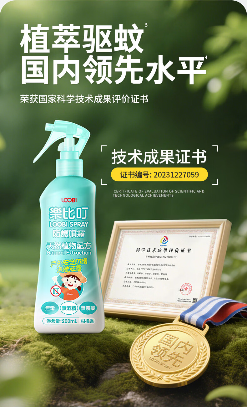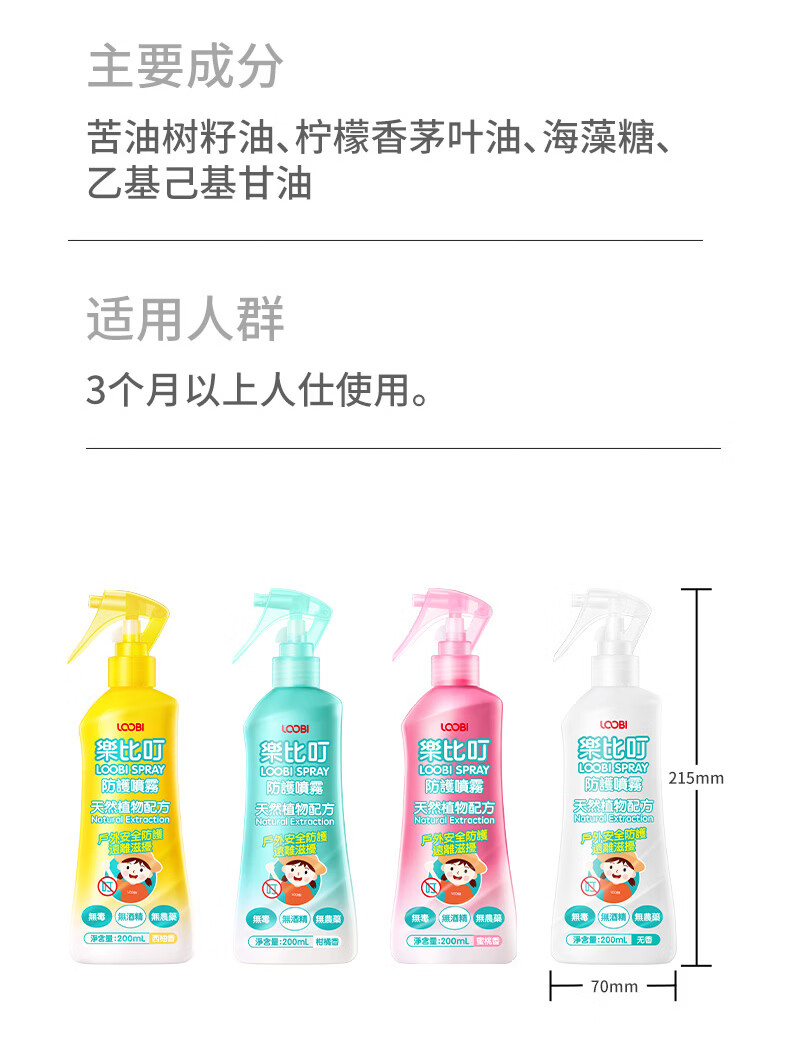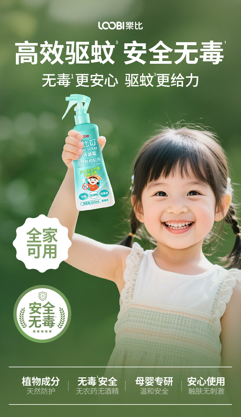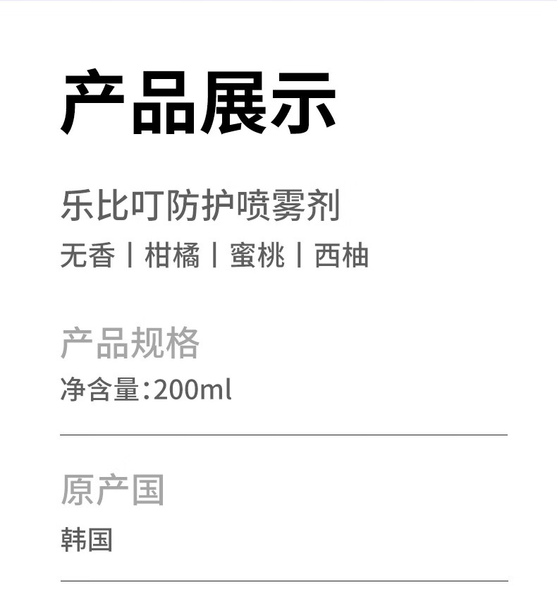 乐比(LOOBI)韩国进口乐比叮防护驱蚊喷雾防蚊花露水户外防叮咬神器便携儿童 防护喷雾剂柑橘香200ML*1瓶