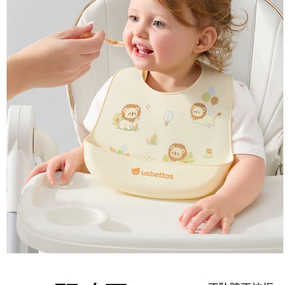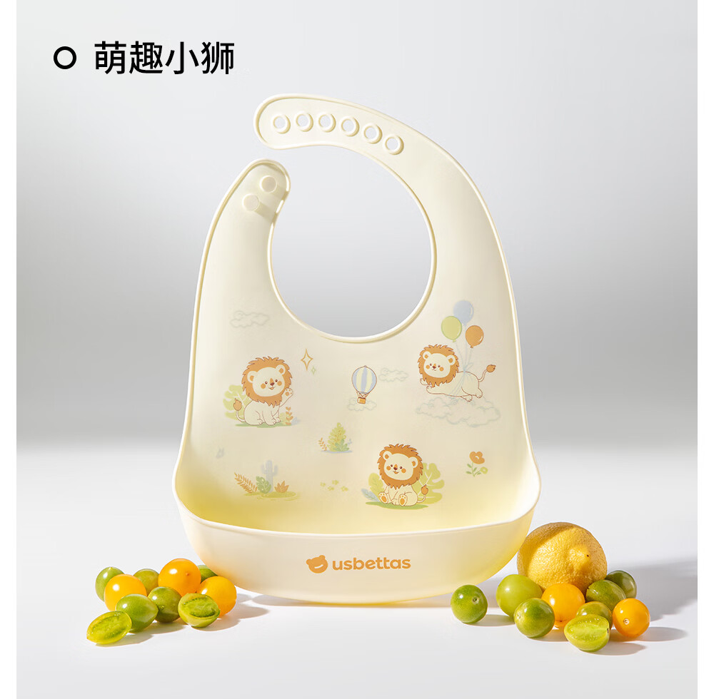 贝肽斯宝宝硅胶围兜婴儿防水防油吃饭罩衣儿童辅食围嘴餐兜喂饭防脏神器 萌趣小狮