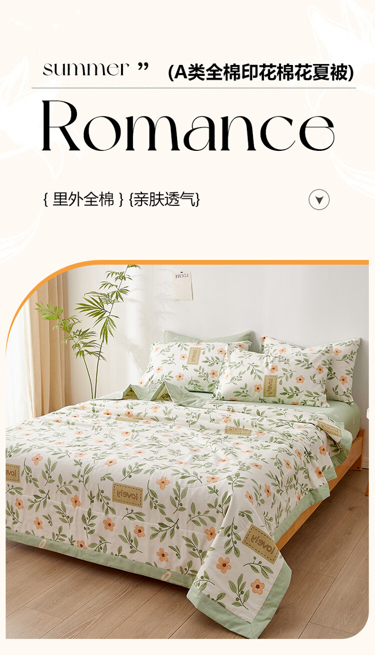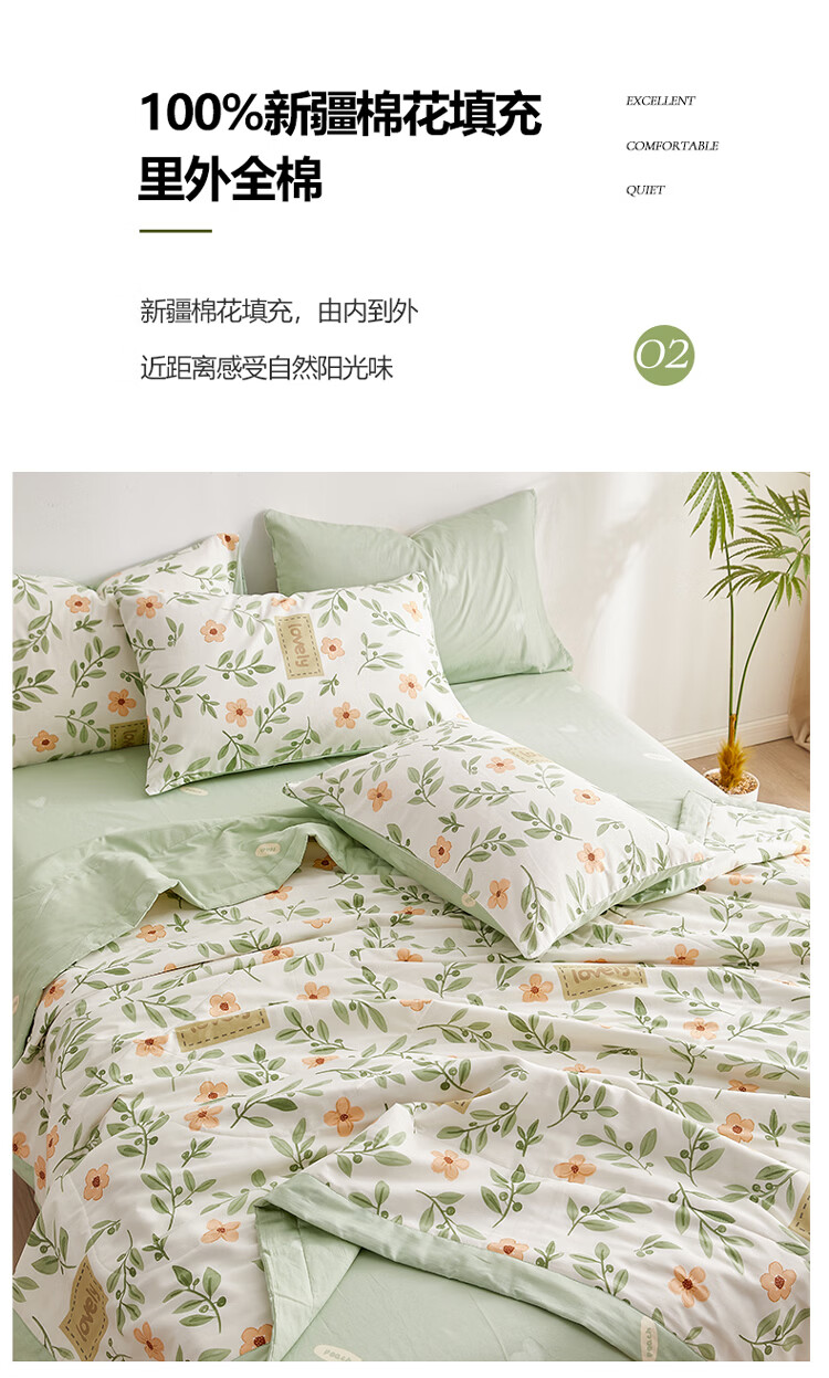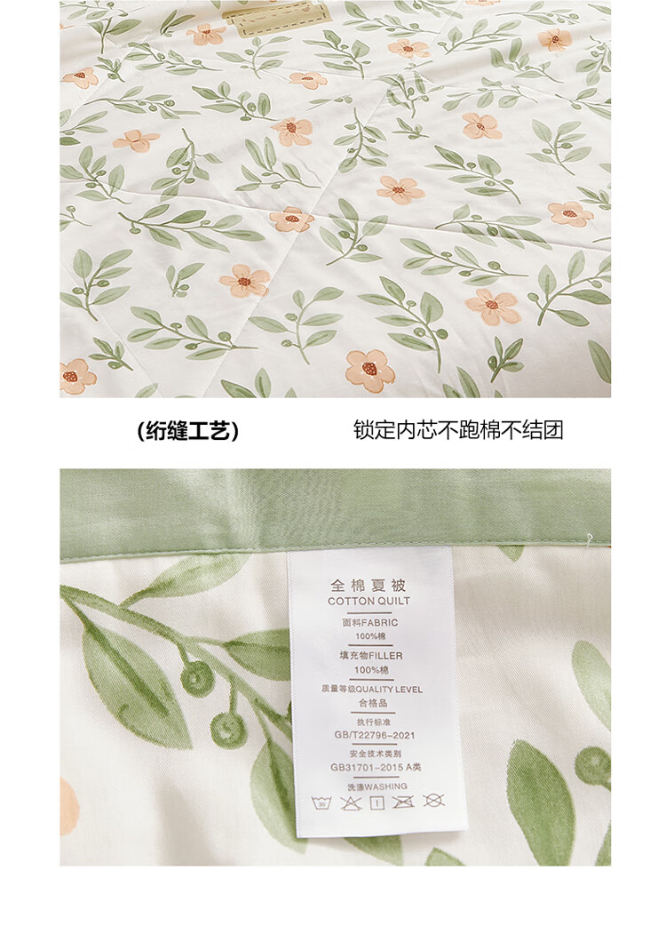无印良品新疆棉花夏凉被纯棉全棉空调被可机洗裸睡夏被四件套夏季被子薄款 青柠薄荷 【新疆棉花填充 里外全棉 可机洗】 150cmx200cm单夏被