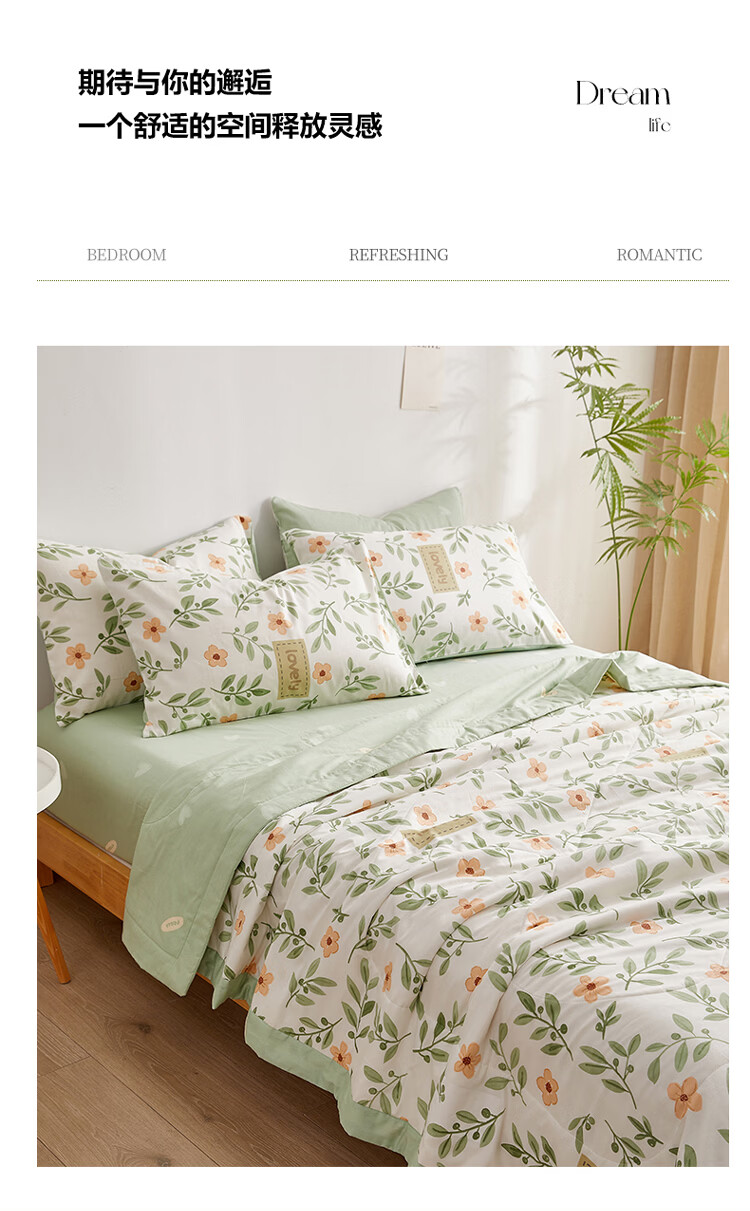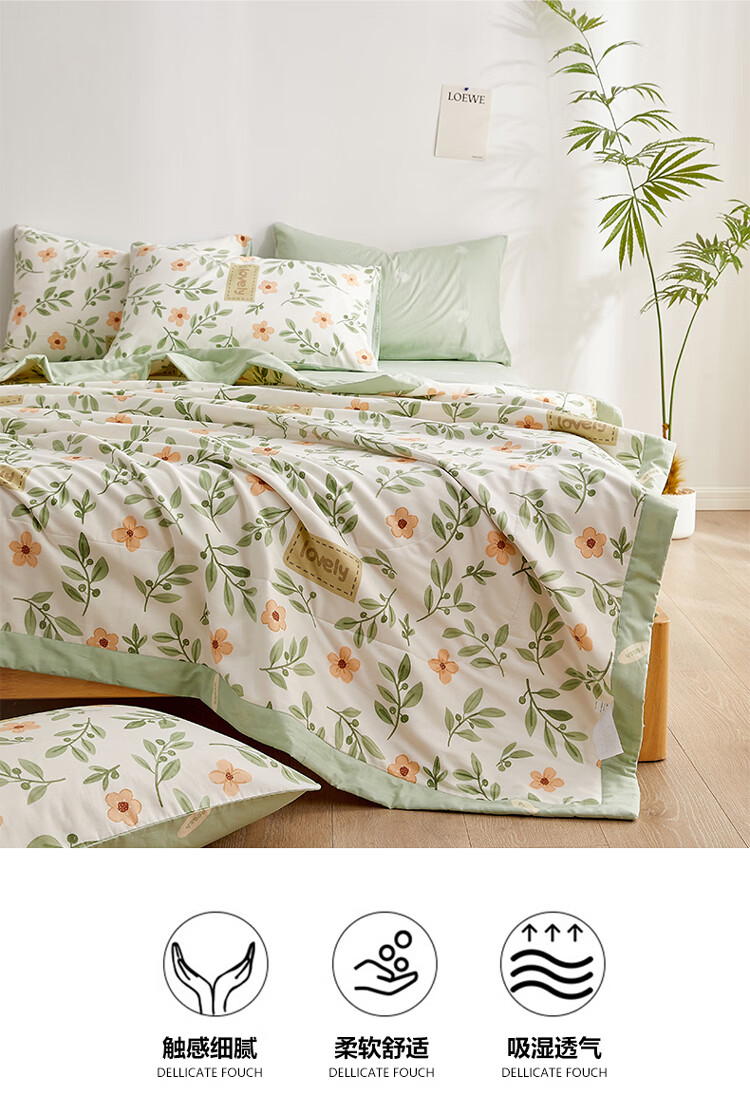 水星家纺被子夏凉被 空调被可机洗凉感天丝棉夏被 A类夏被 植愈舒爽【60S莱赛尔纤维/A类抑菌】绿 200cm*230cm
